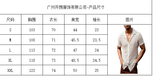 2024 Camisa de manga corta de encaje de moda para hombres transfronterizos europeos y estadounidenses Camisa transparente hueca con botones casuales