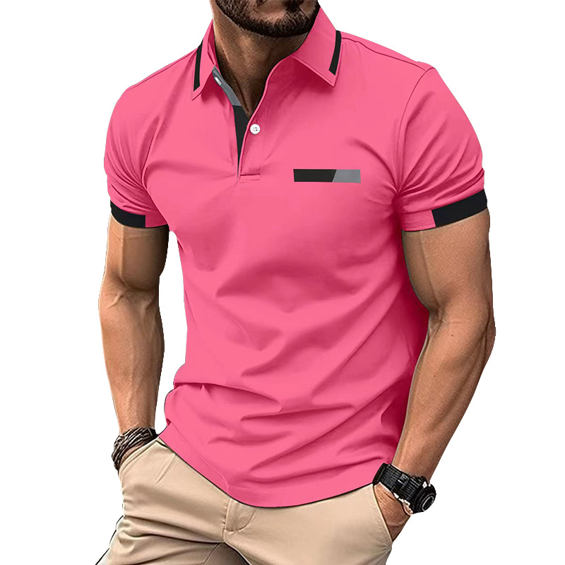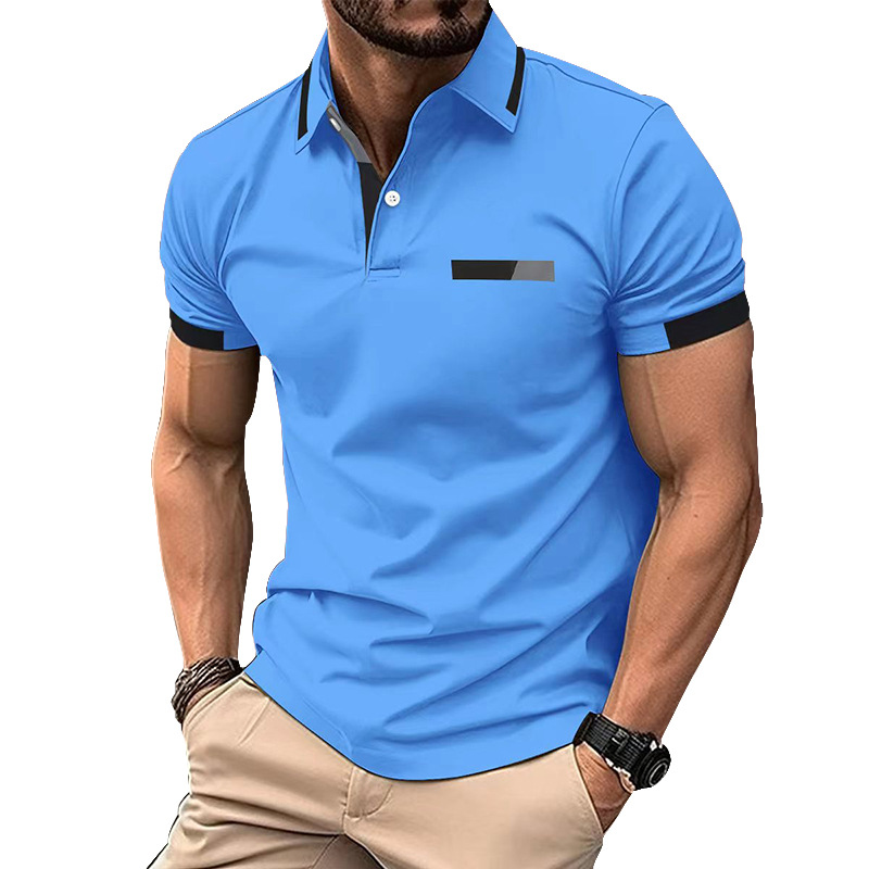 Amazon nuevo transfronterizo de los hombres de la camisa de polo ocasional pecho falso bolsillo solapa botón de negocios camiseta superior de los hombres