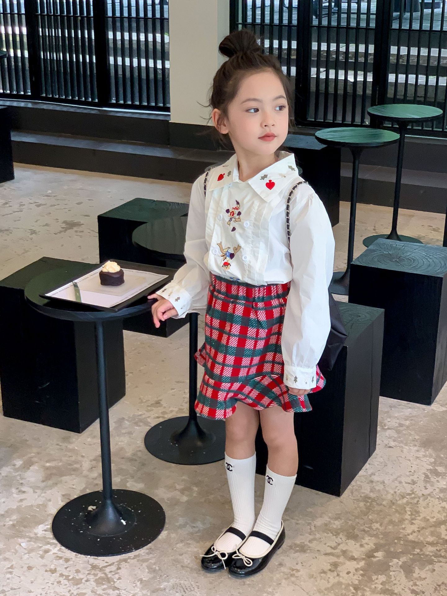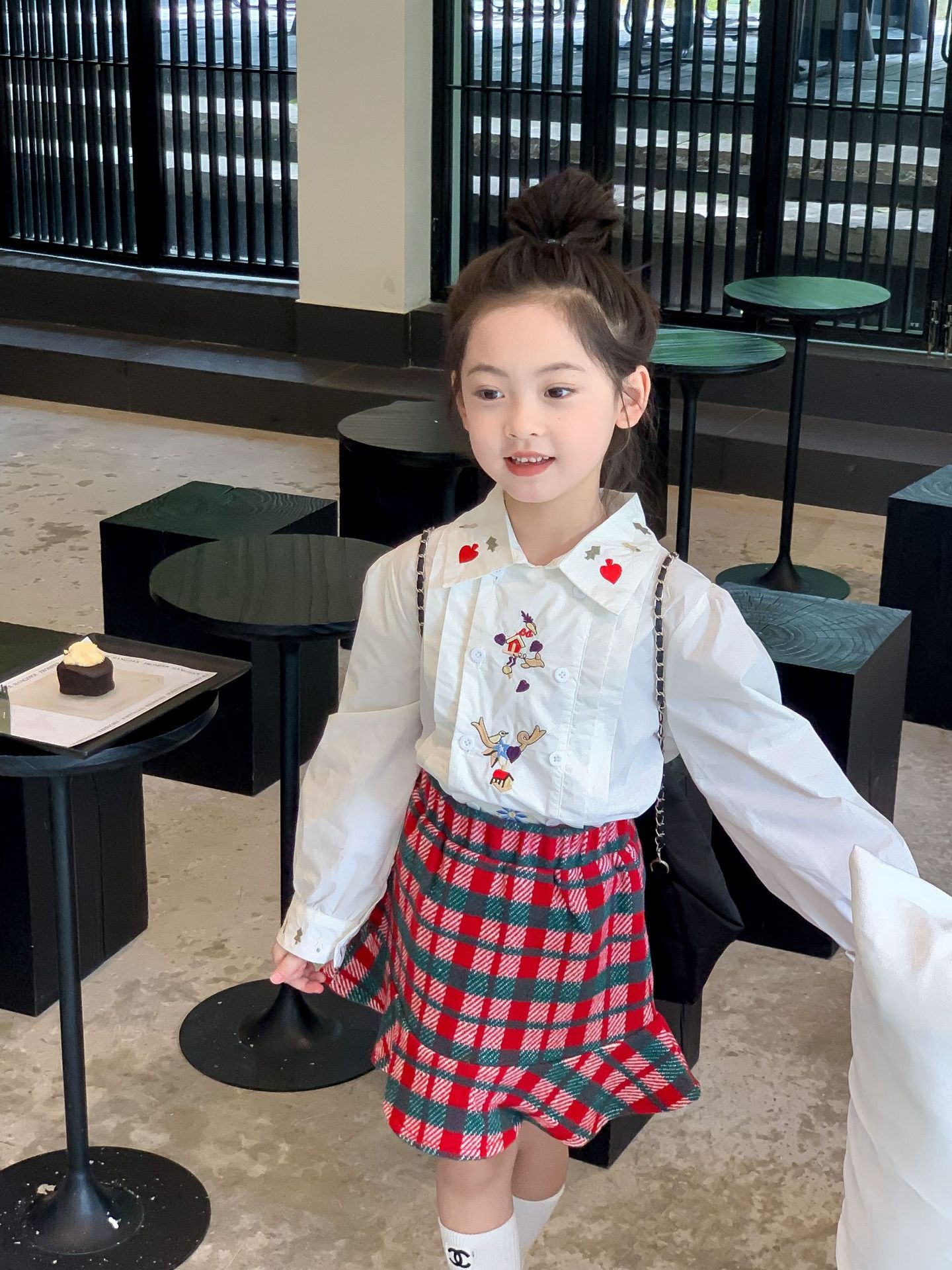 Camisa para niños Ropa para niños de estilo coreano 2024 primavera nueva camisa bordada para niñas camisa de muñeca estilo universitario para niñas de bebés medianos y grandes para niños
