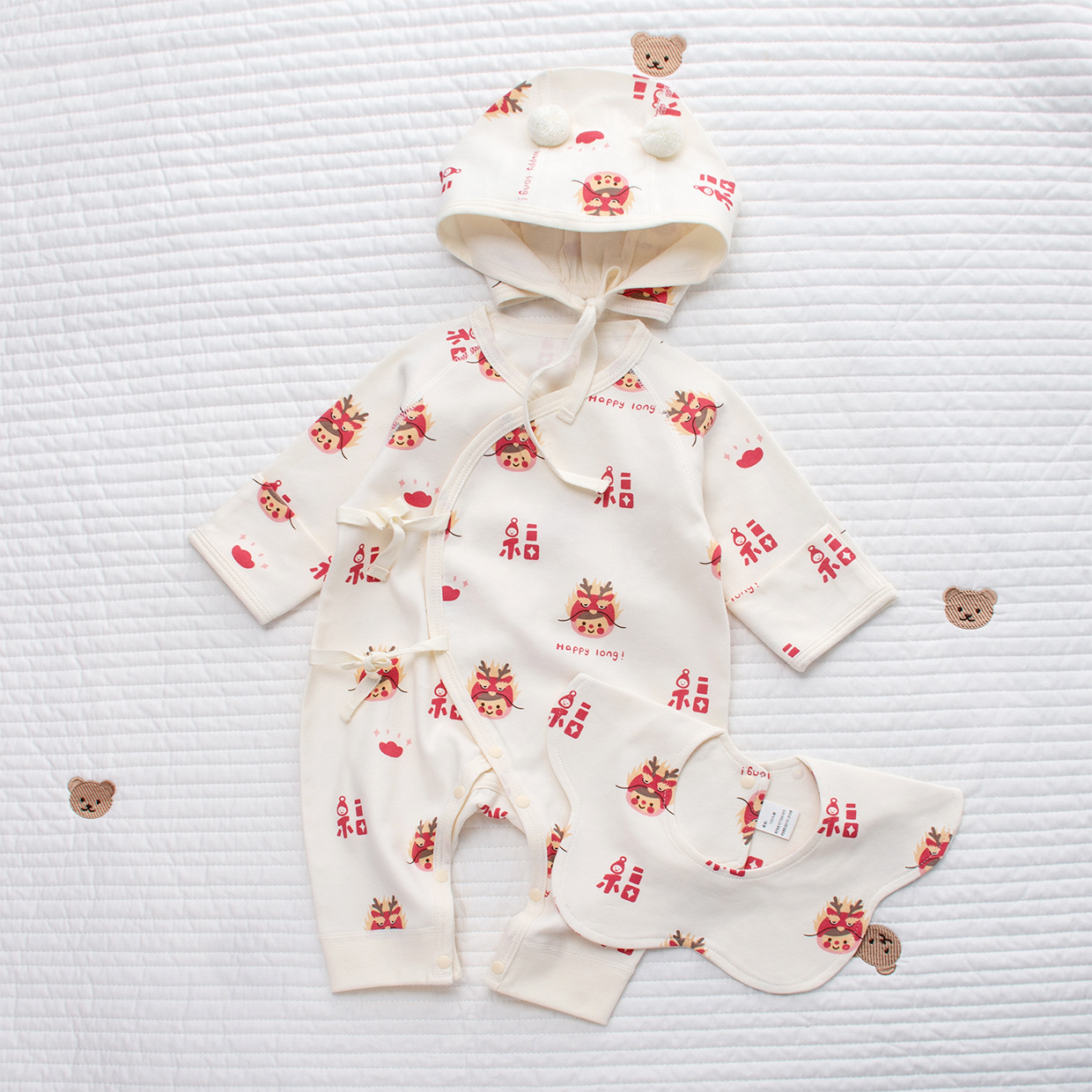 Bebé primavera y otoño mono traje de monje dragón bebé cien días festivo traje de luna llena 2024 nuevo traje de algodón puro deshuesado