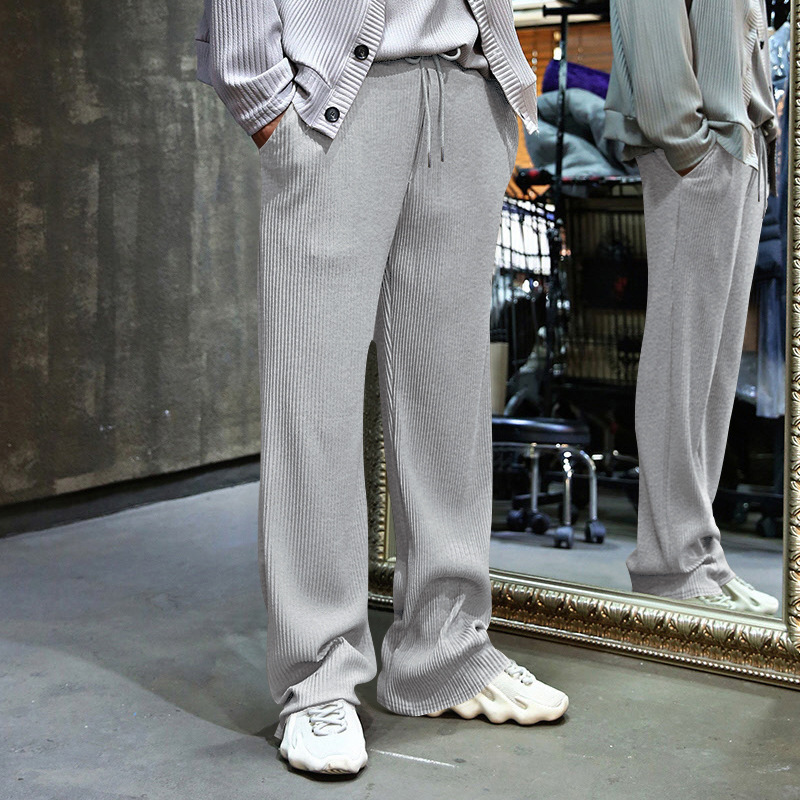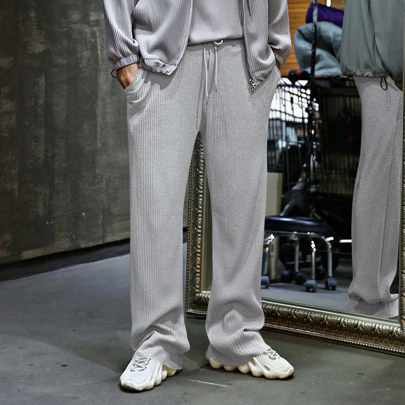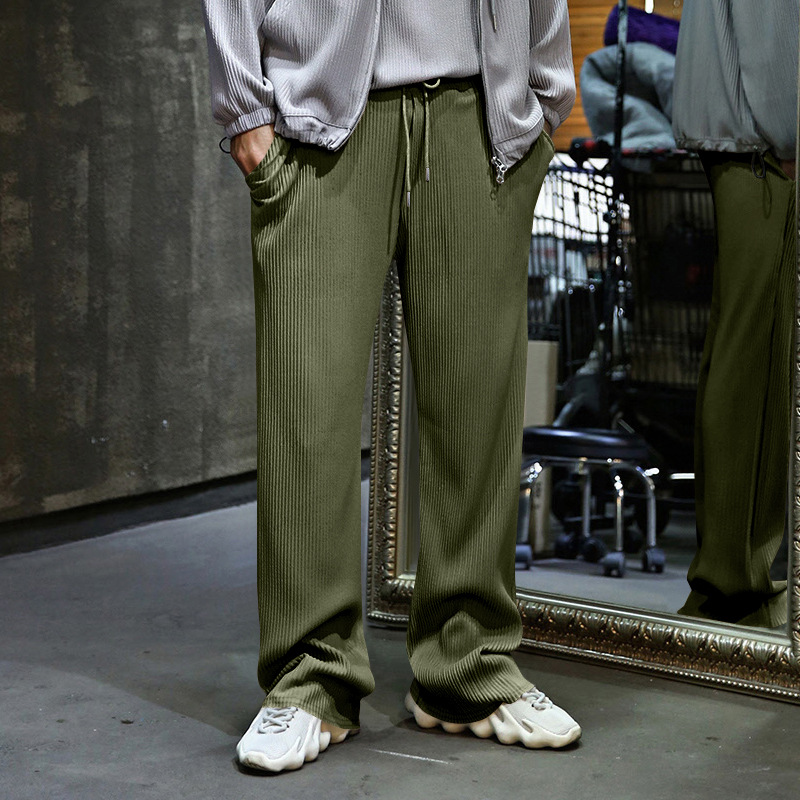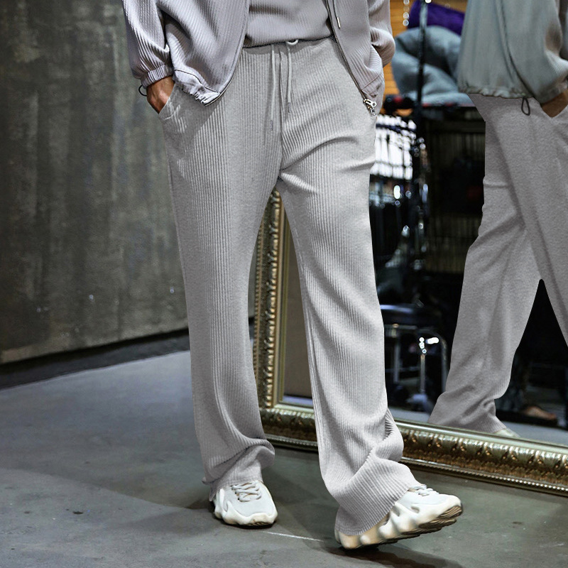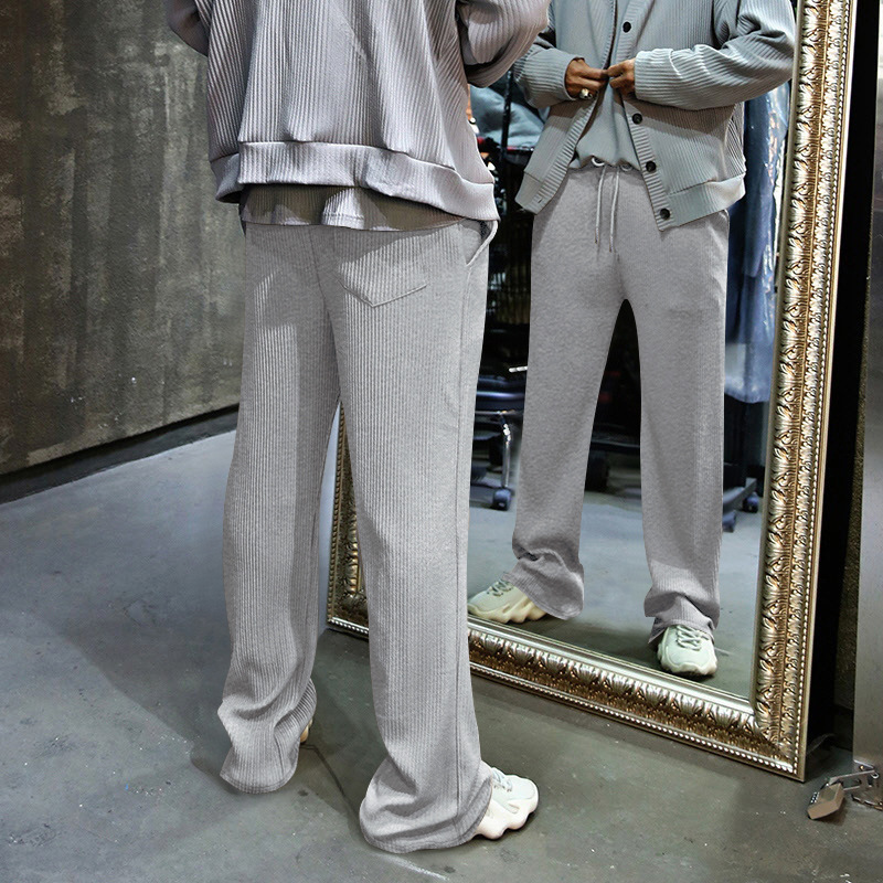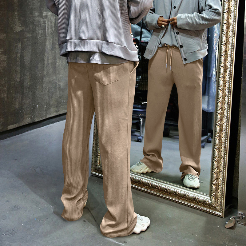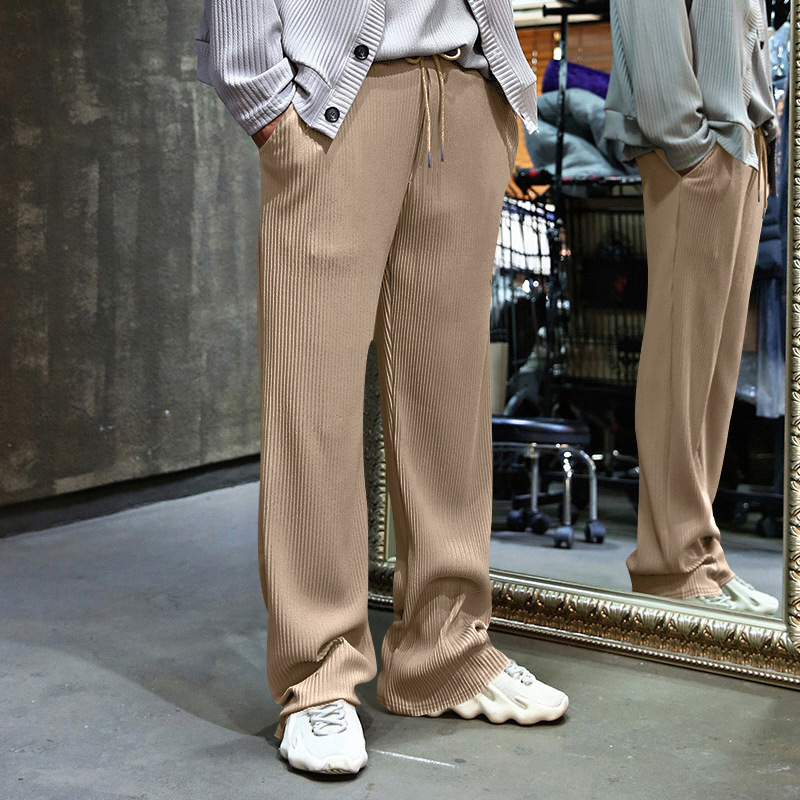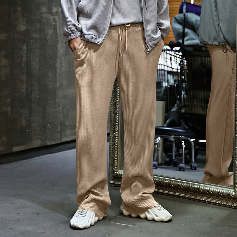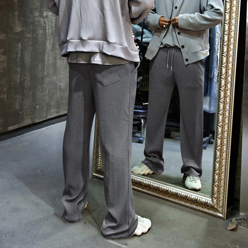 Transfronterizo de tamaño europeo hombres primavera y otoño Jacquard rayas pantalones casuales hombres Amazon marca de moda suelta cordón Pantalones rectos hombres