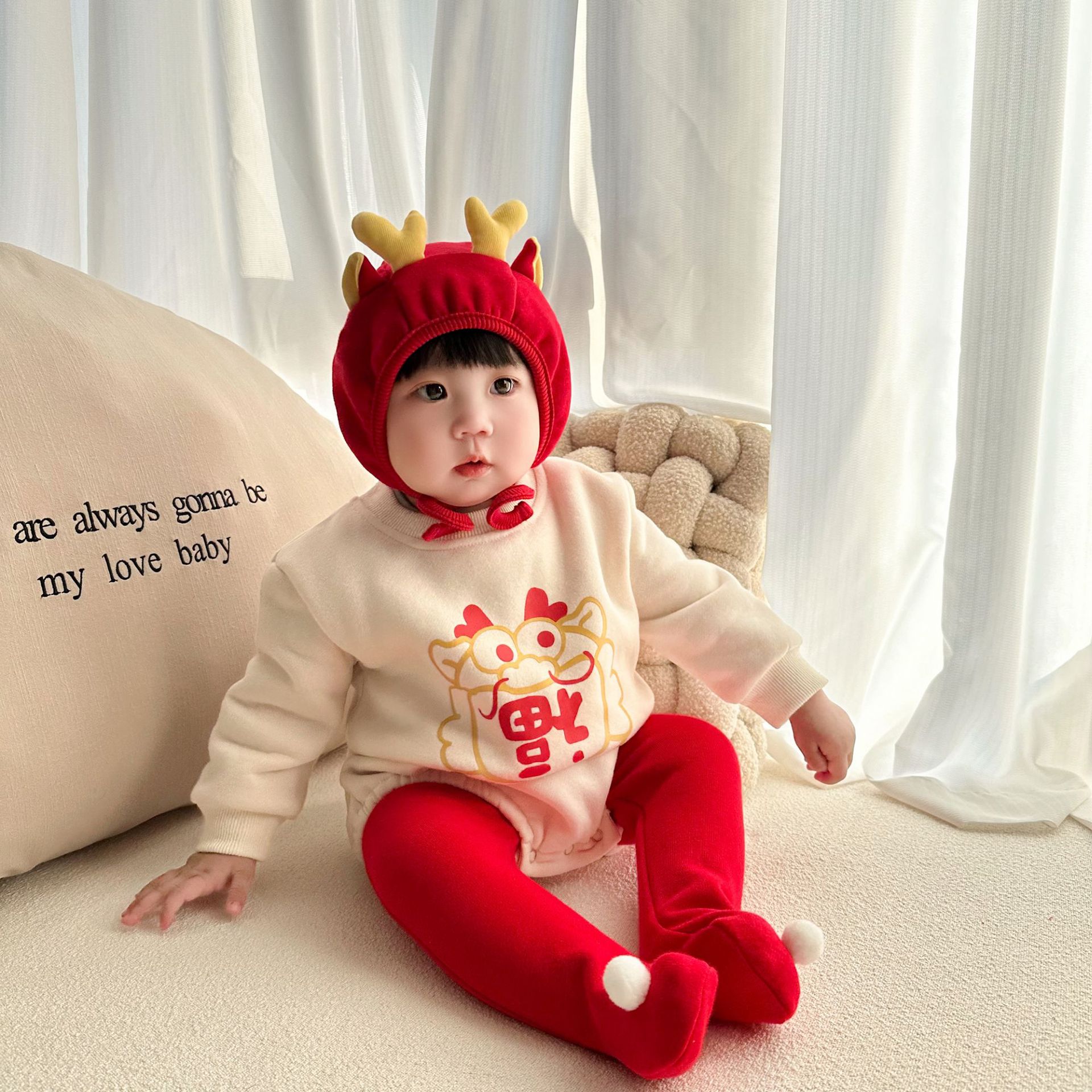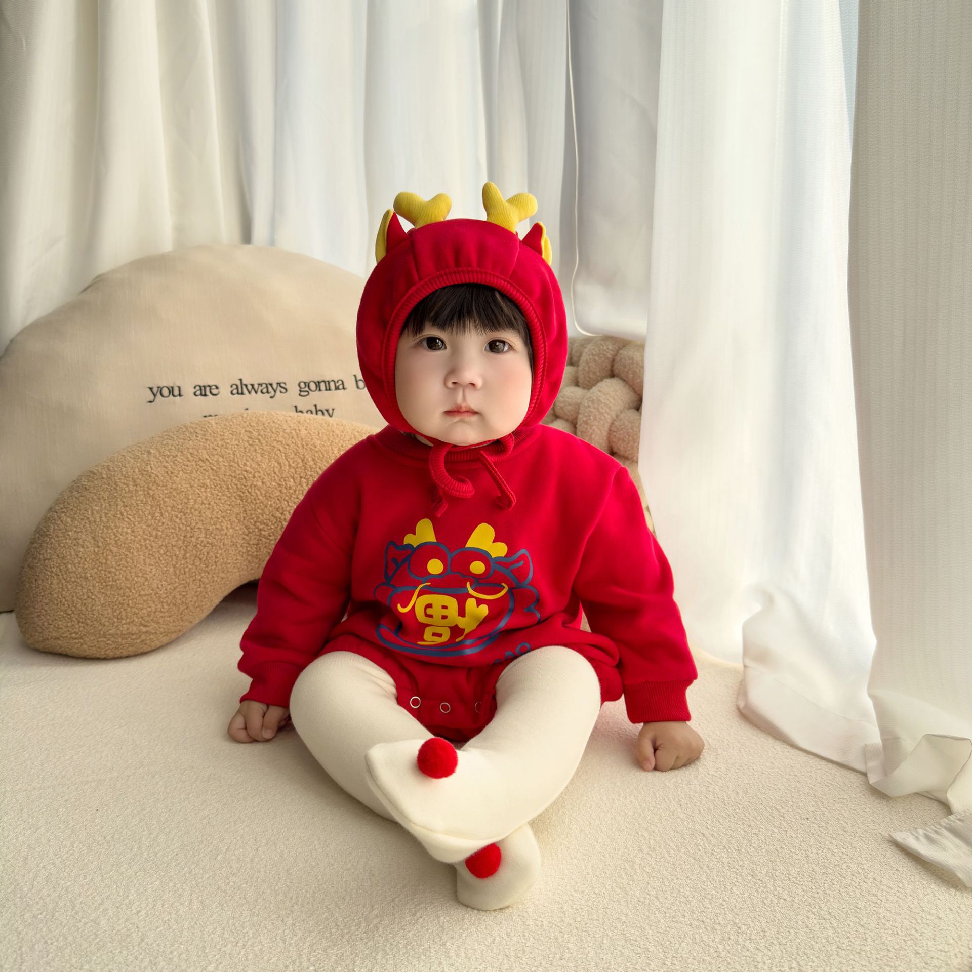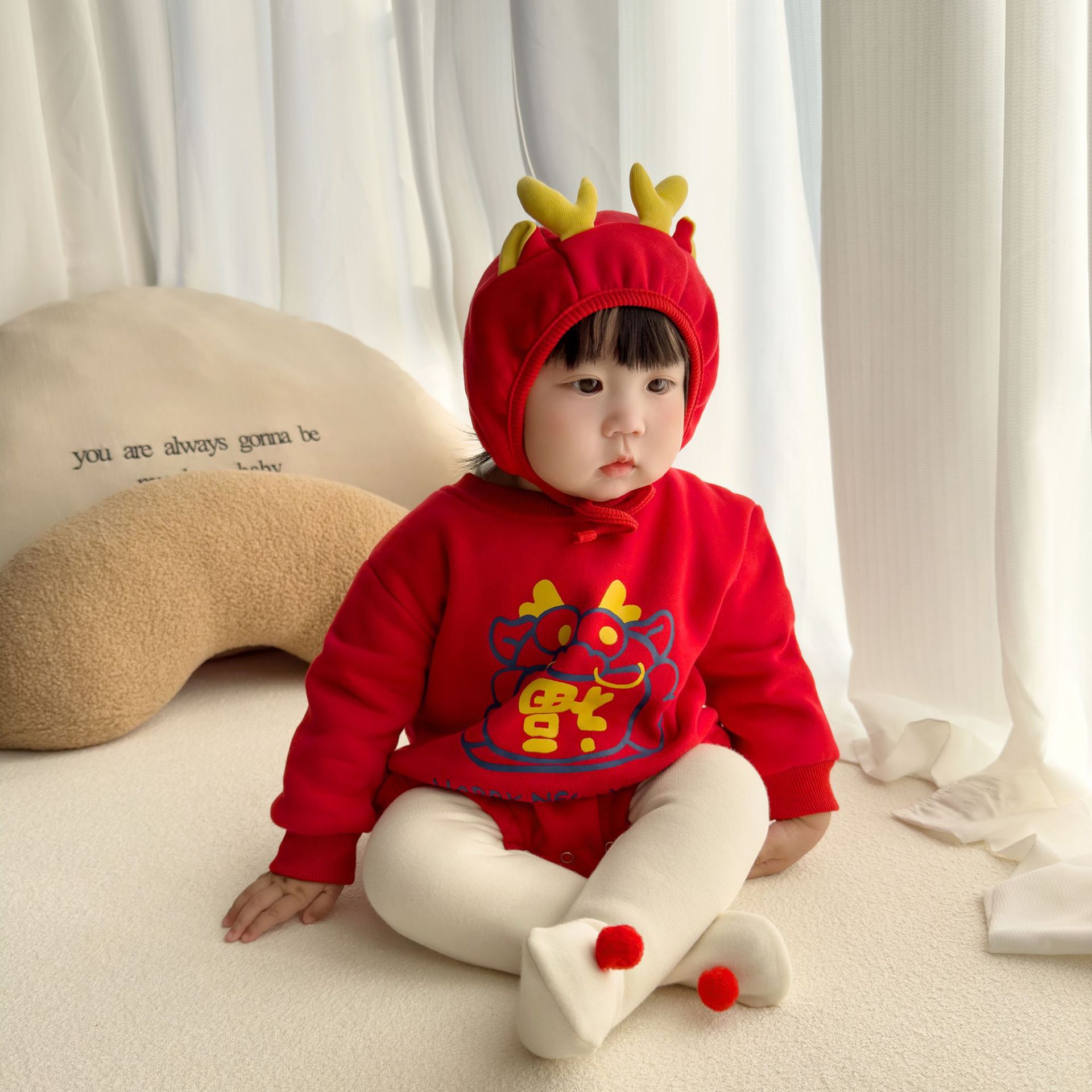 24 Otoño e Invierno Bebé Año Nuevo saludo ropa ins estilo nacional moda Año Nuevo mameluco de los niños bebé primavera Festival vestido traje