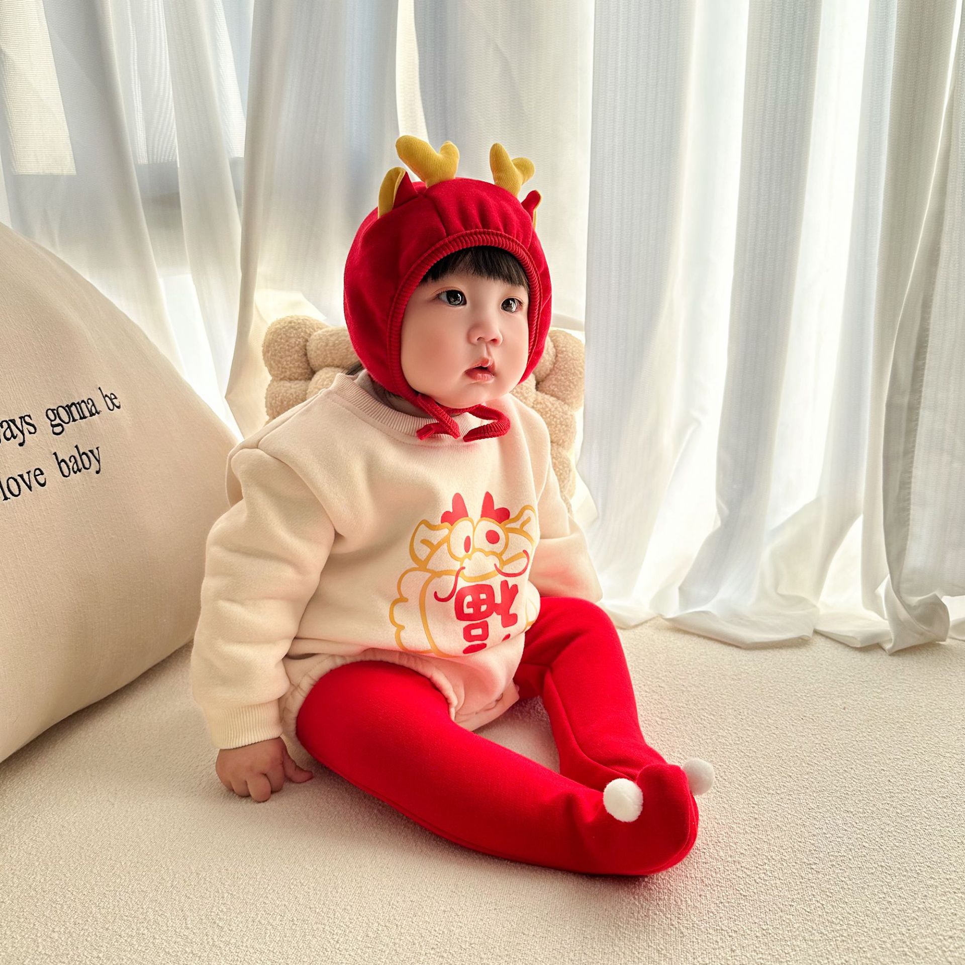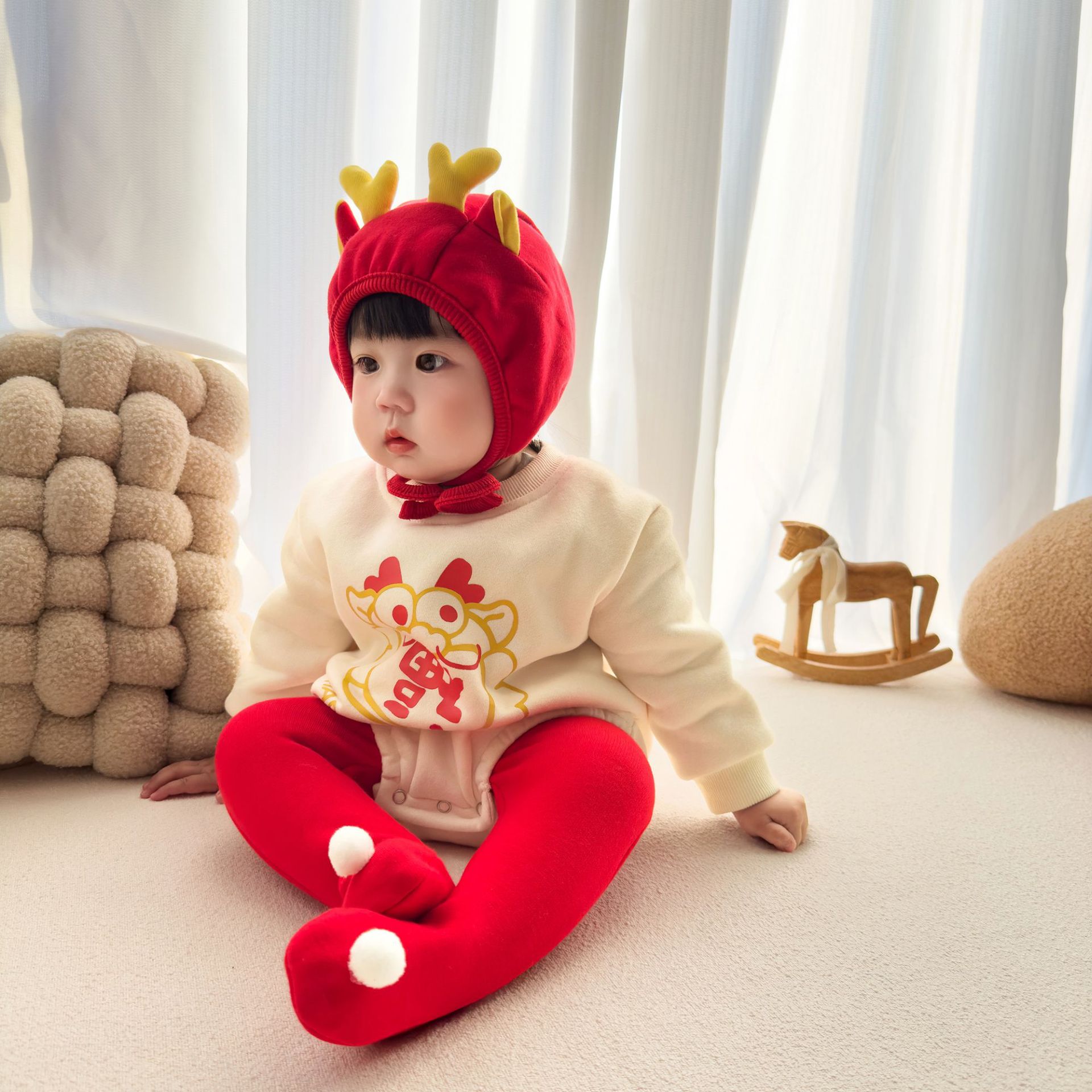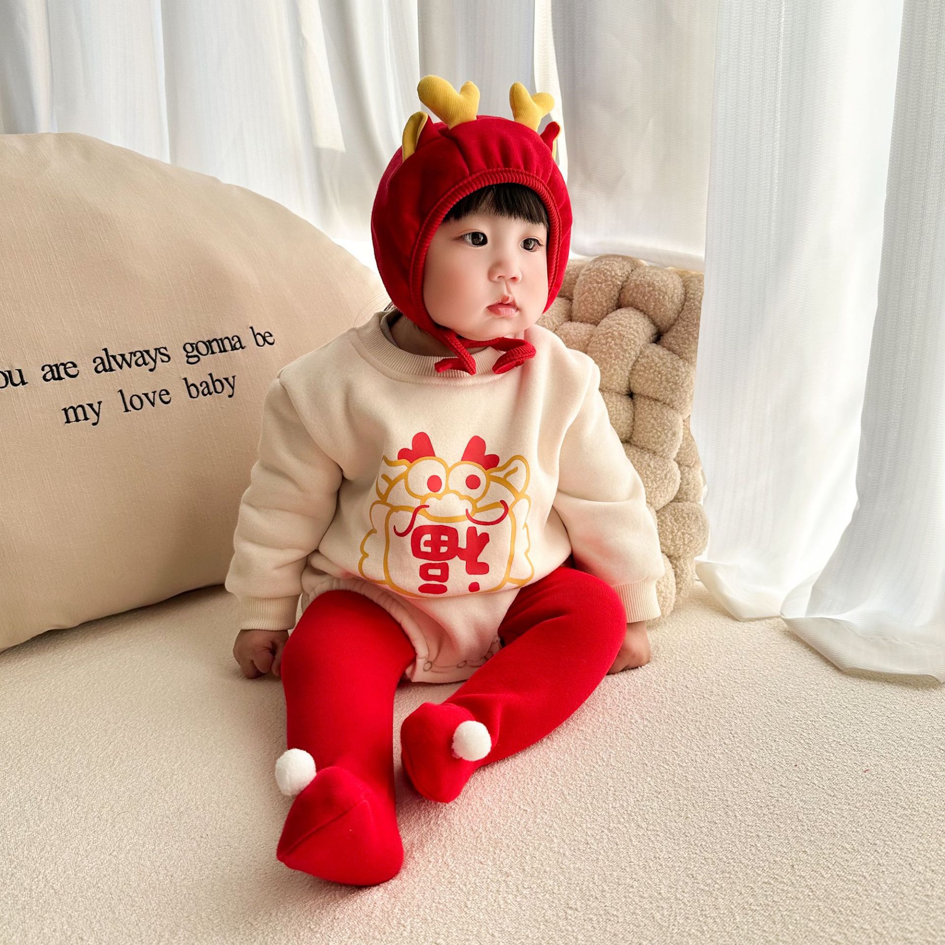 24 Otoño e Invierno Bebé Año Nuevo saludo ropa ins estilo nacional moda Año Nuevo mameluco de los niños bebé primavera Festival vestido traje