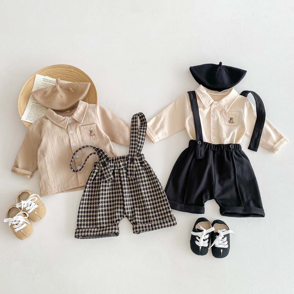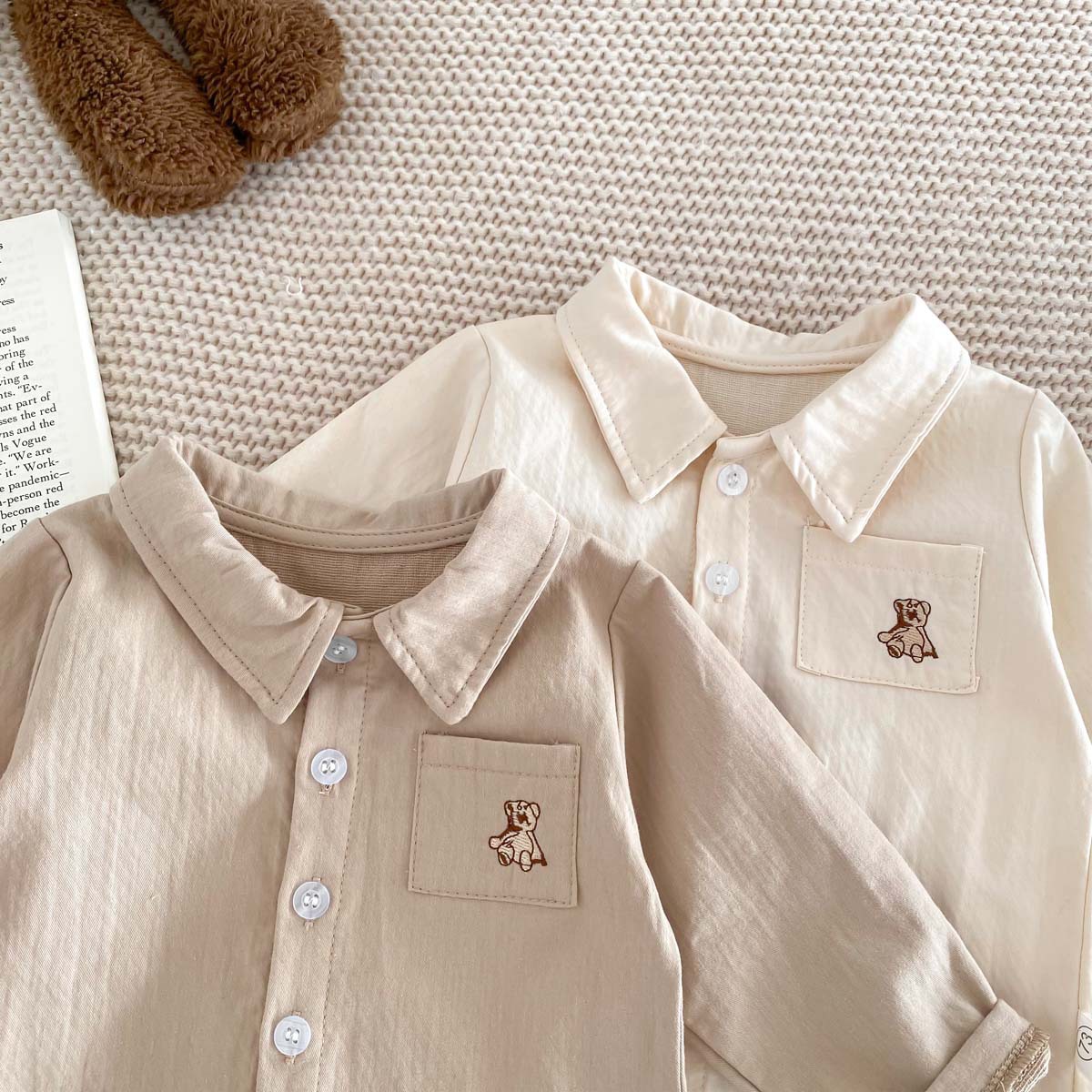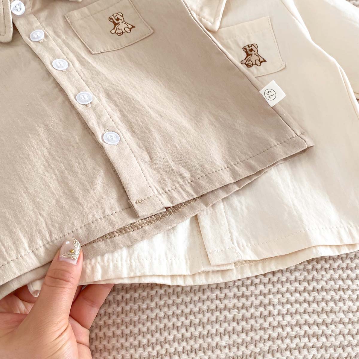 2024 primavera nuevo oso bordado de los muchachos camisa de manga larga del bebé de estilo coreano de color sólido simple cardigan top