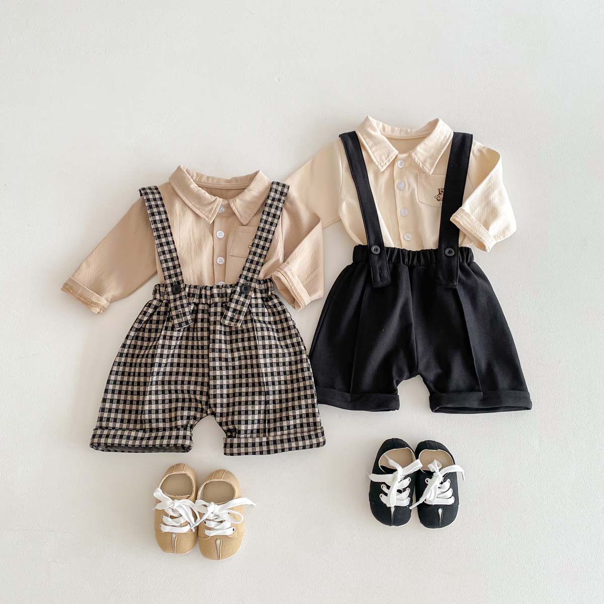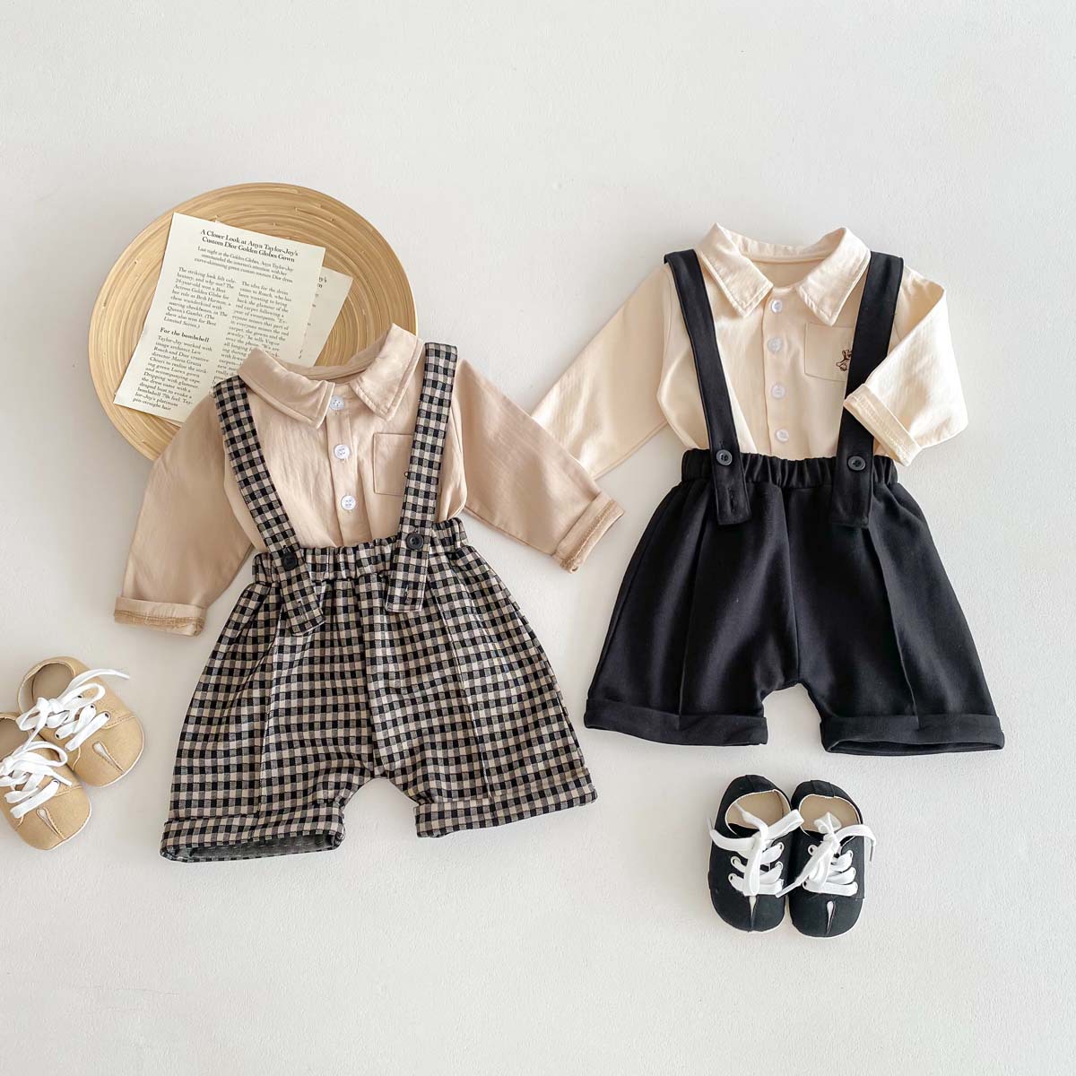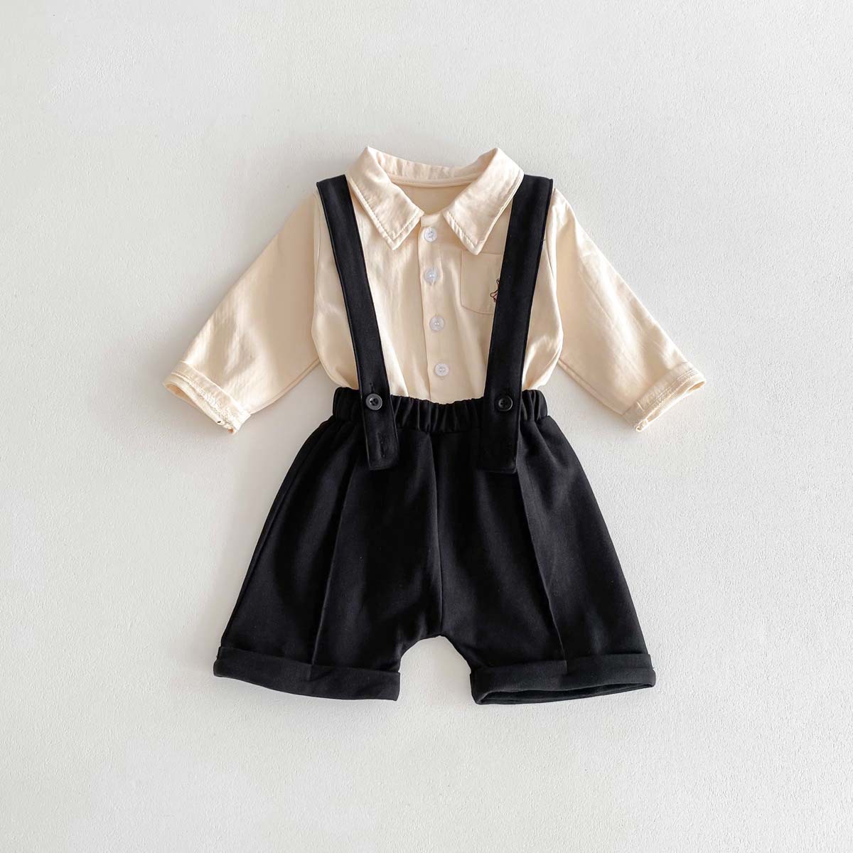 2024 primavera nuevo oso bordado de los muchachos camisa de manga larga del bebé de estilo coreano de color sólido simple cardigan top