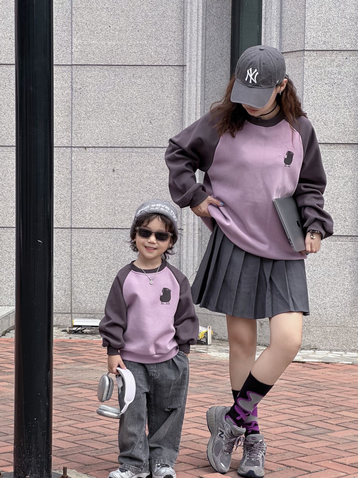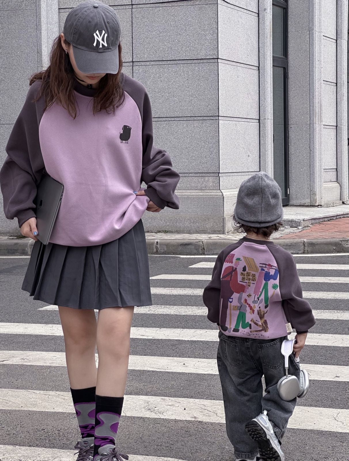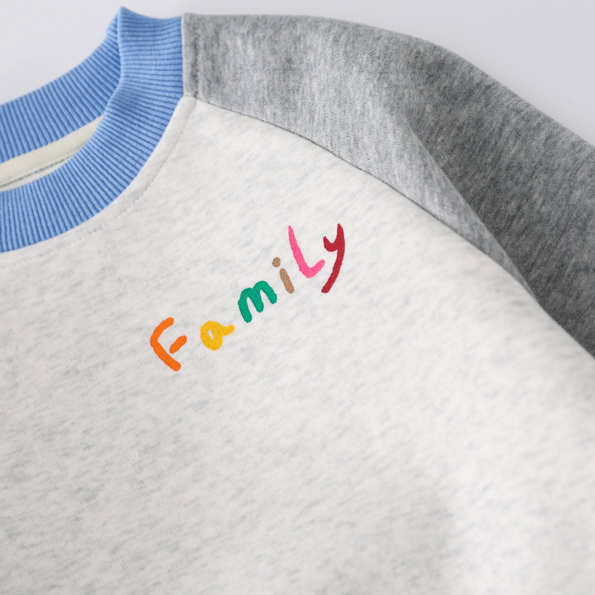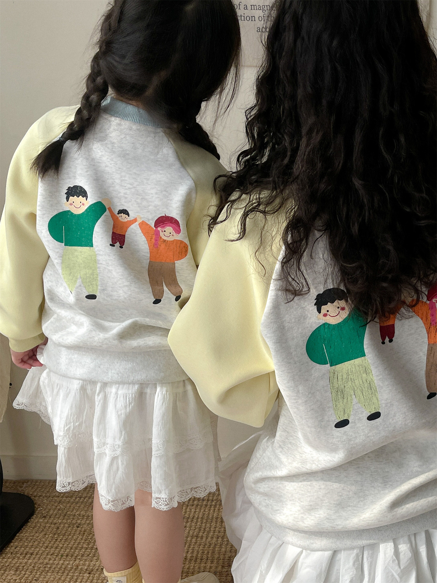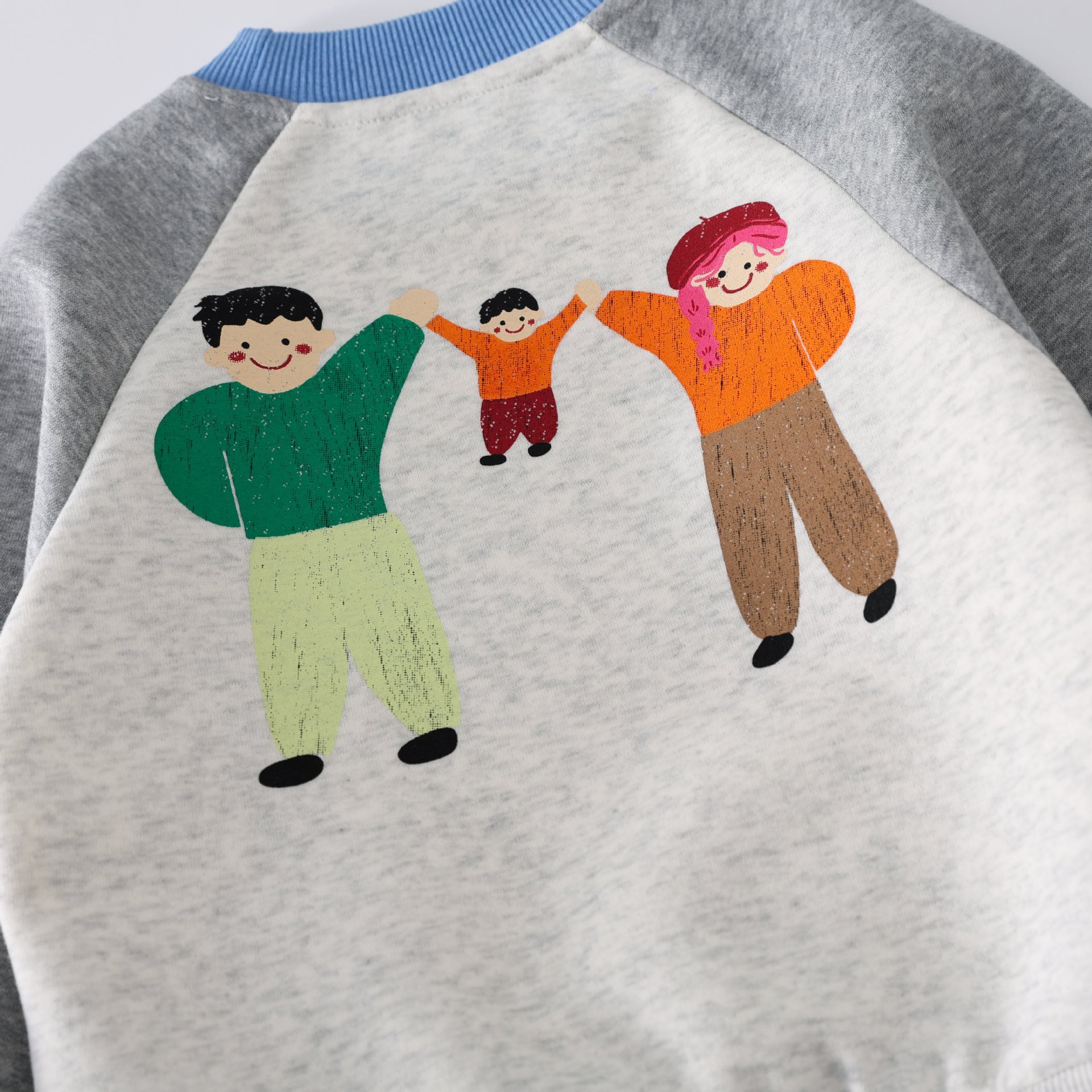 Otoño estilo universitario japonés y coreano detrás de dibujos animados estampado de graffiti cuello redondo ropa para padres e hijos para niños QZ303 lindo