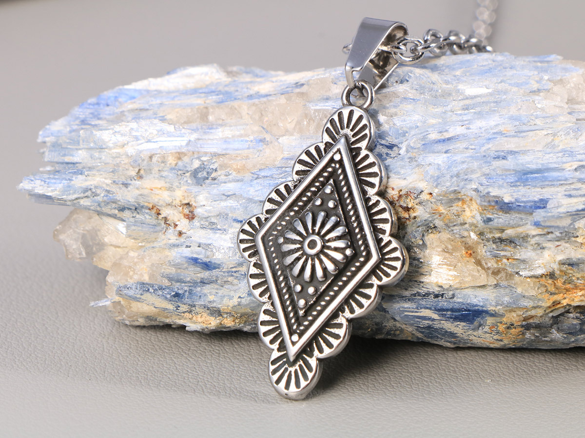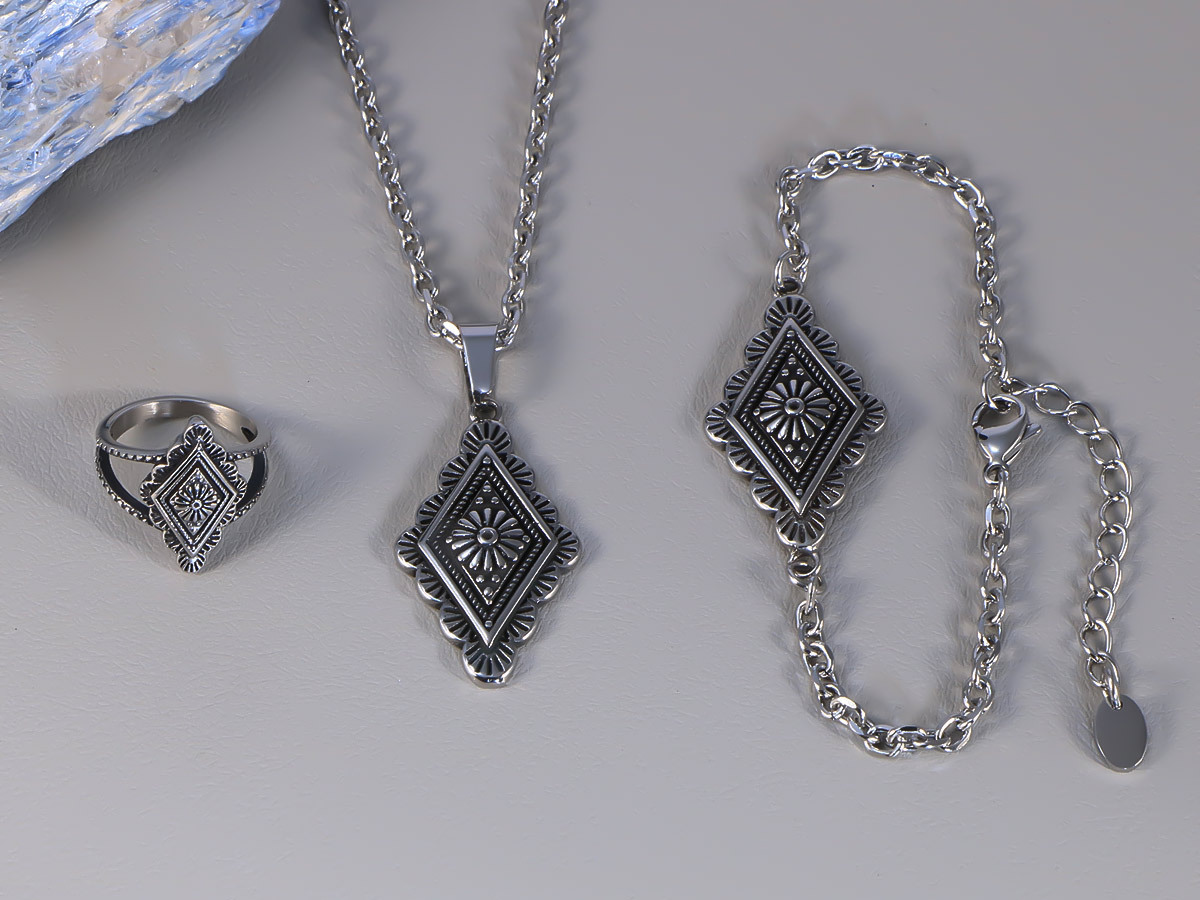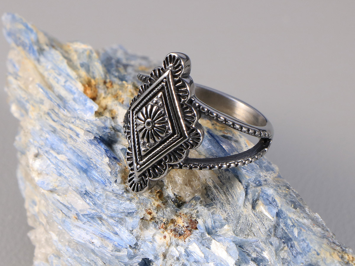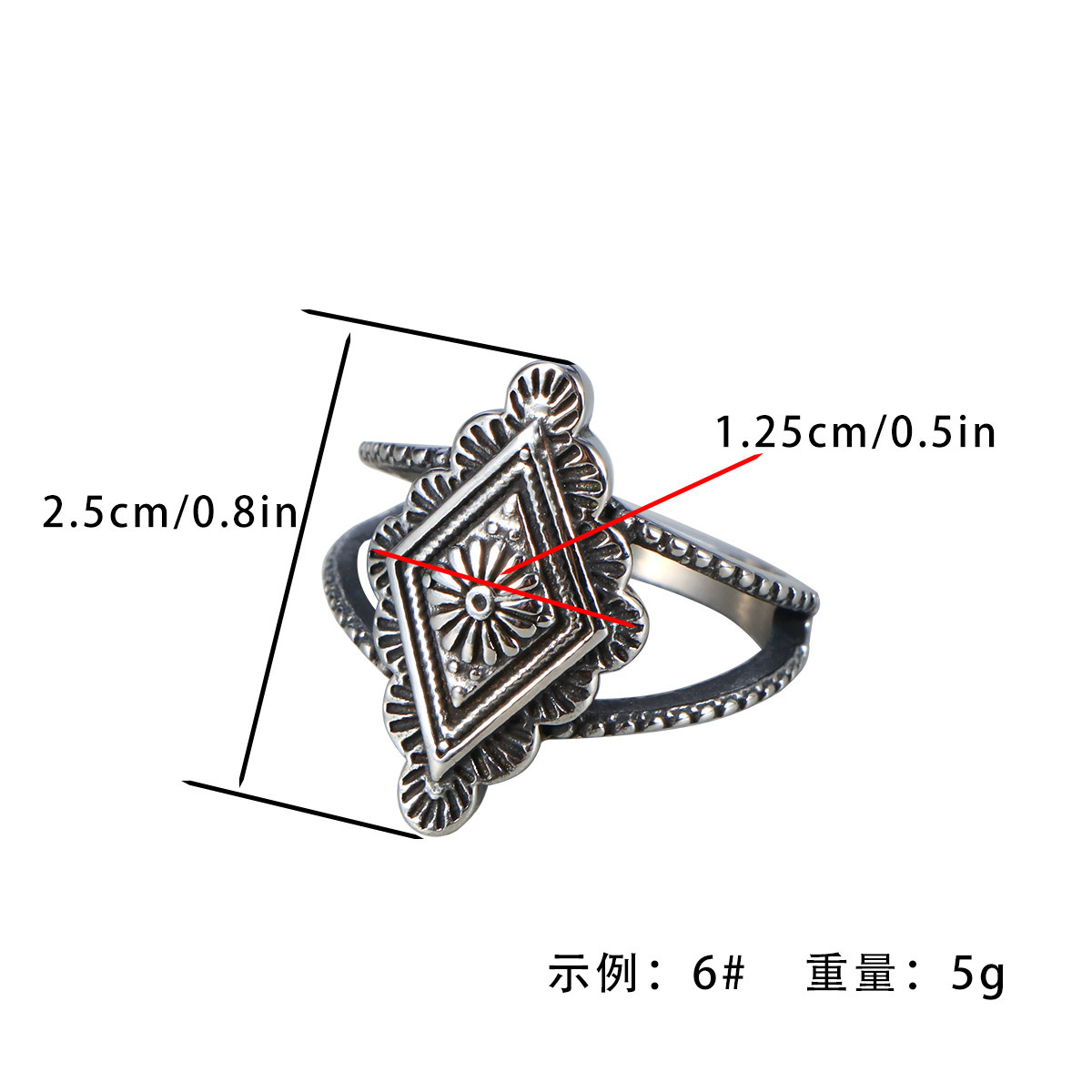 Europeo y americano transfronterizo nuevo vintage bohemio titanio acero anillo rombo geométrico tallado anillo de las mujeres