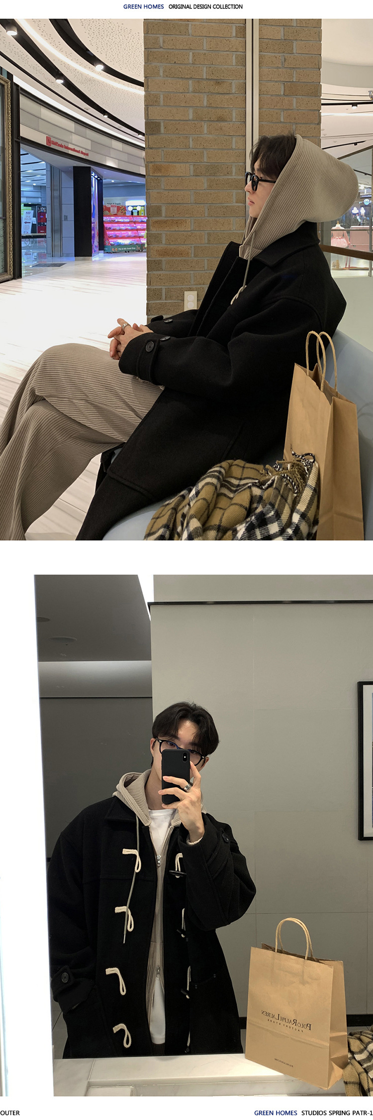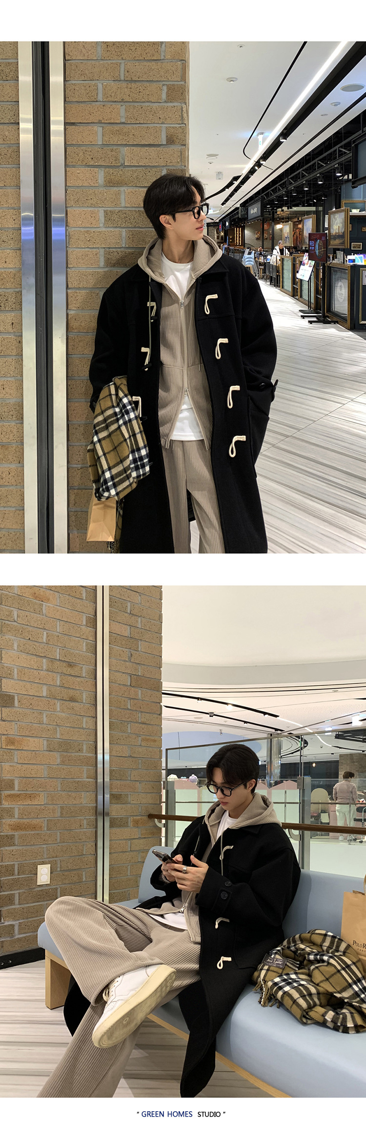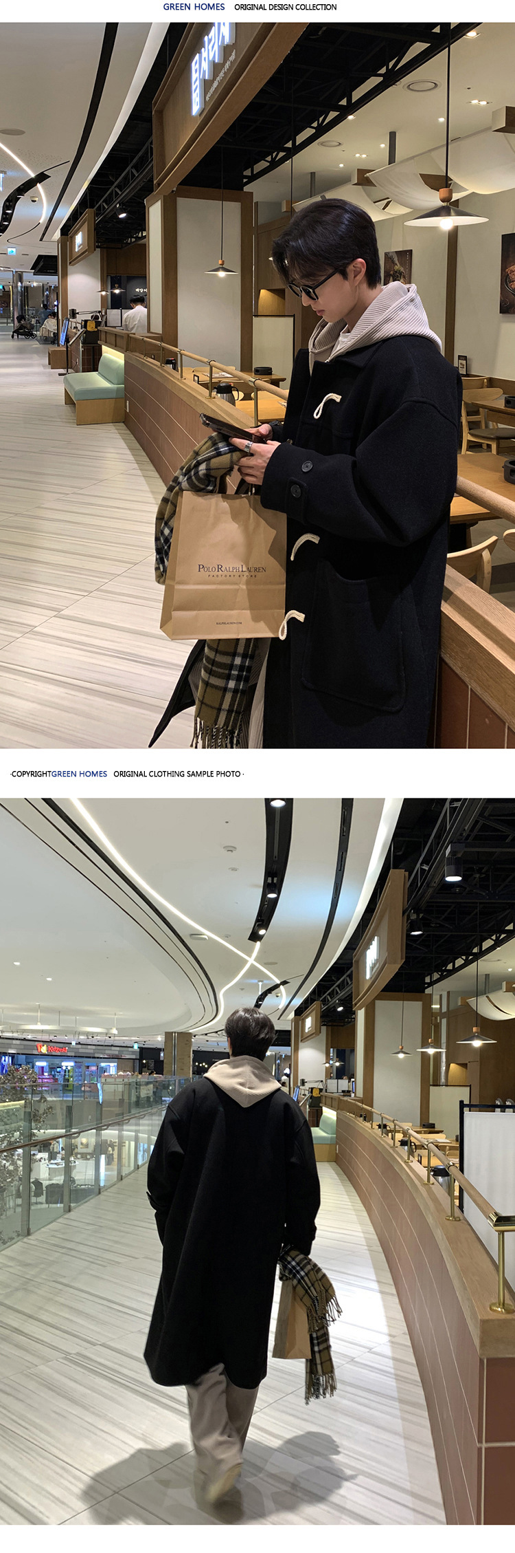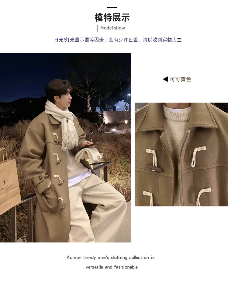 ASCLO invierno nuevo estilo coreano atmósfera abrigo de los hombres de alta calidad suelta MEDIADOS DE-longitud cuerno hebilla abrigo de lana