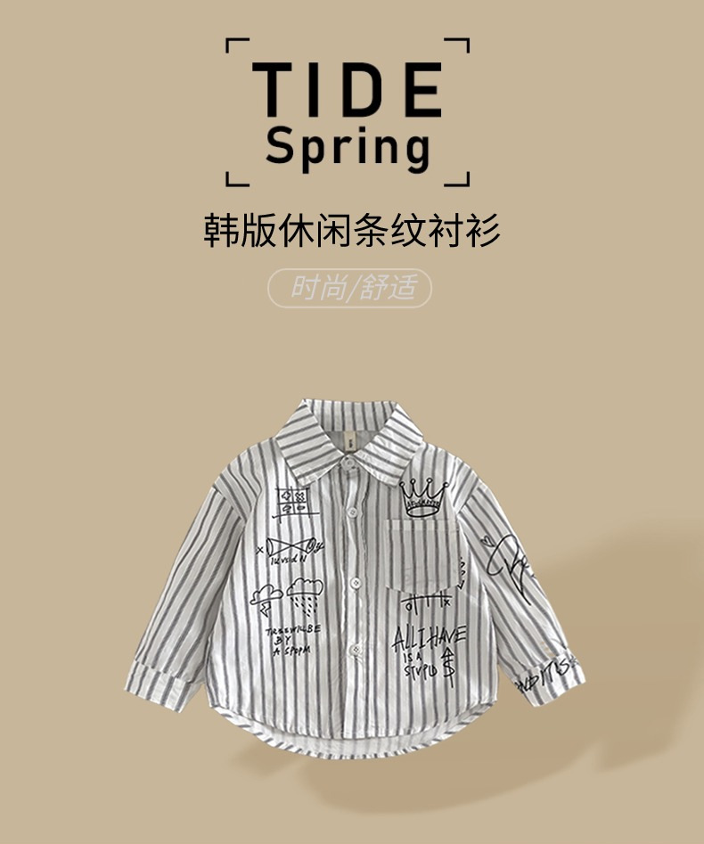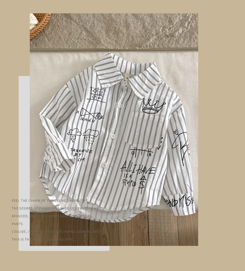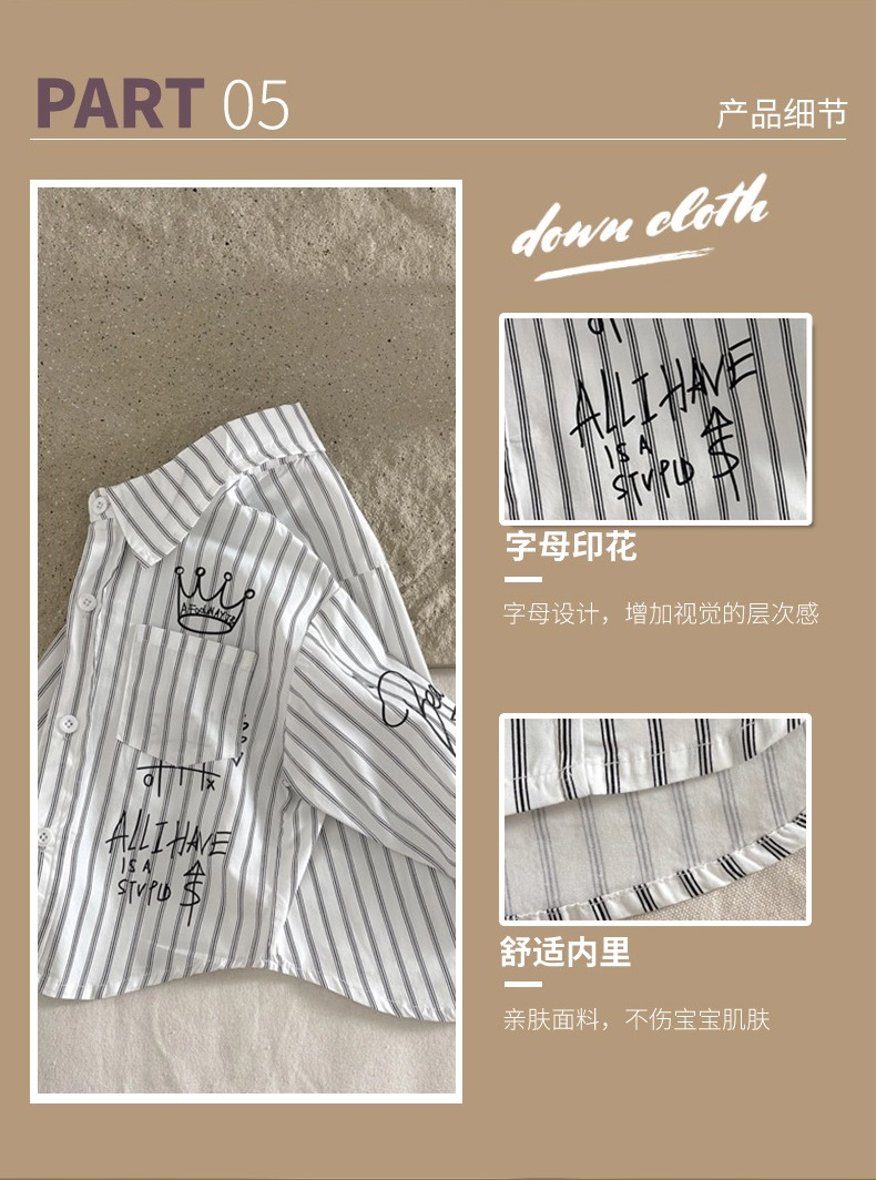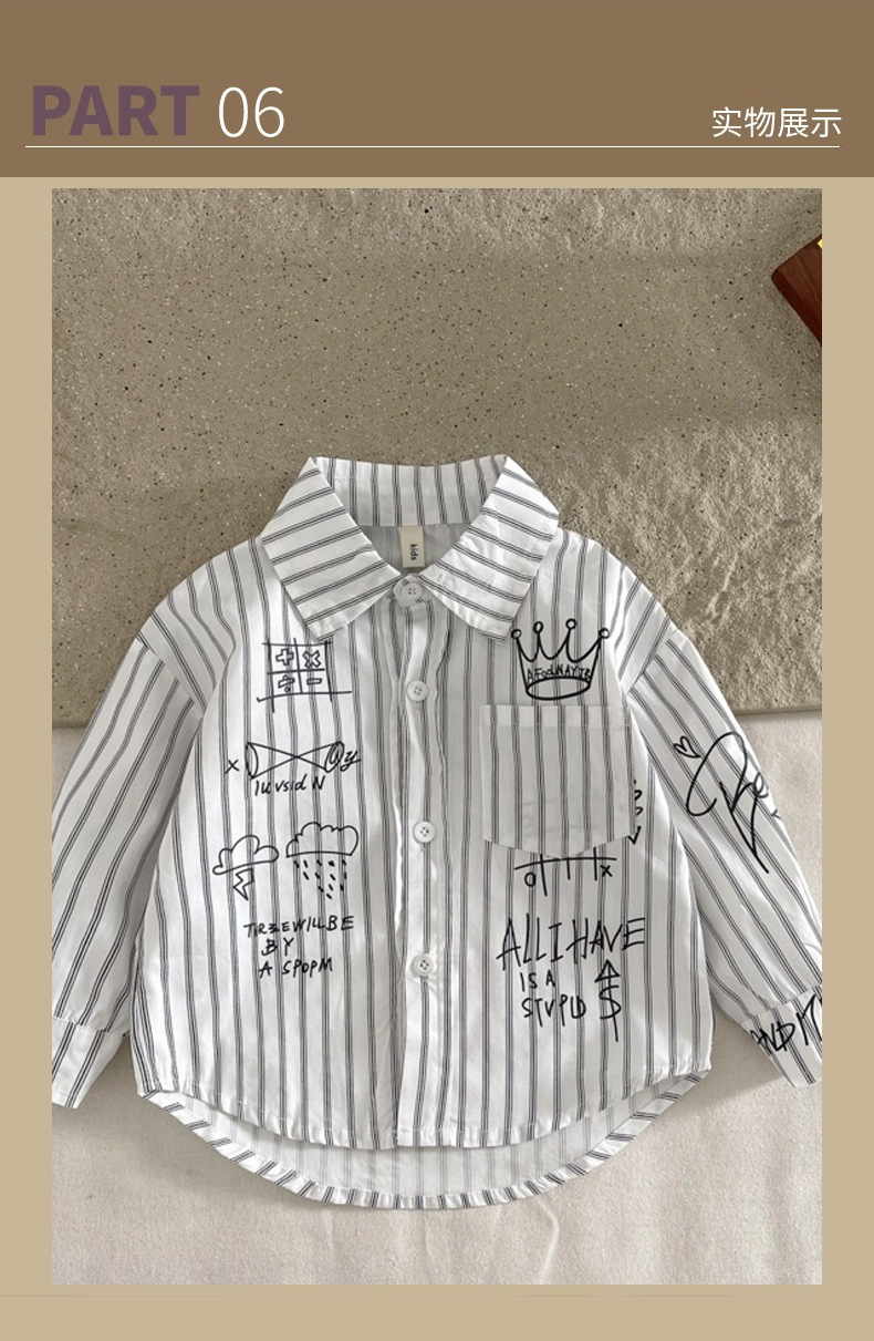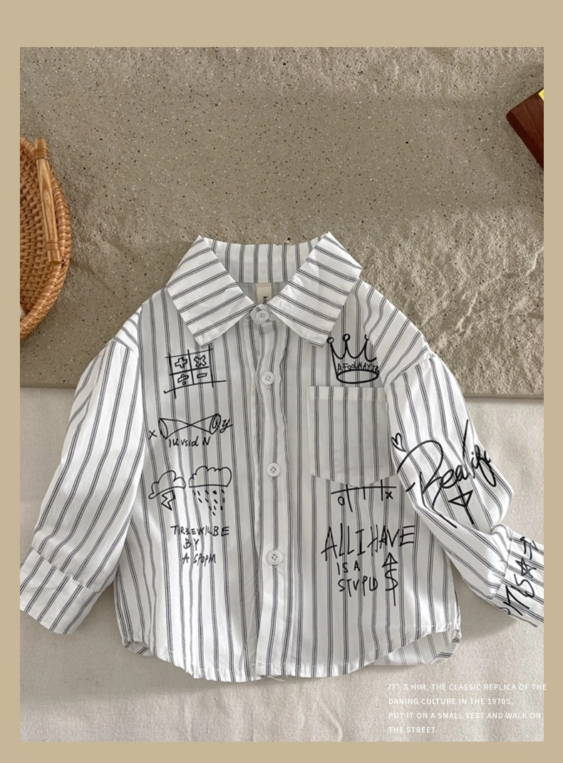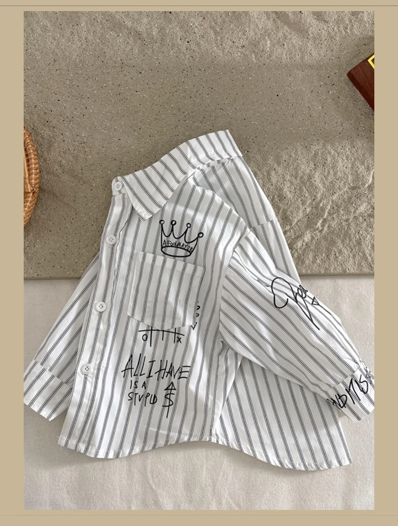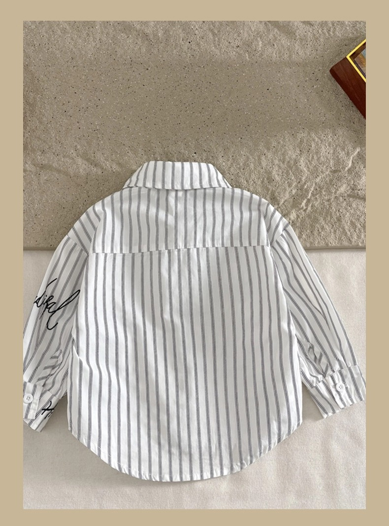 Camisa para niños ropa de primavera para niños 2024 Nueva solapa camisa de Letras a rayas ropa para niños pequeños y medianos estilo coreano abrigo de estilo occidental