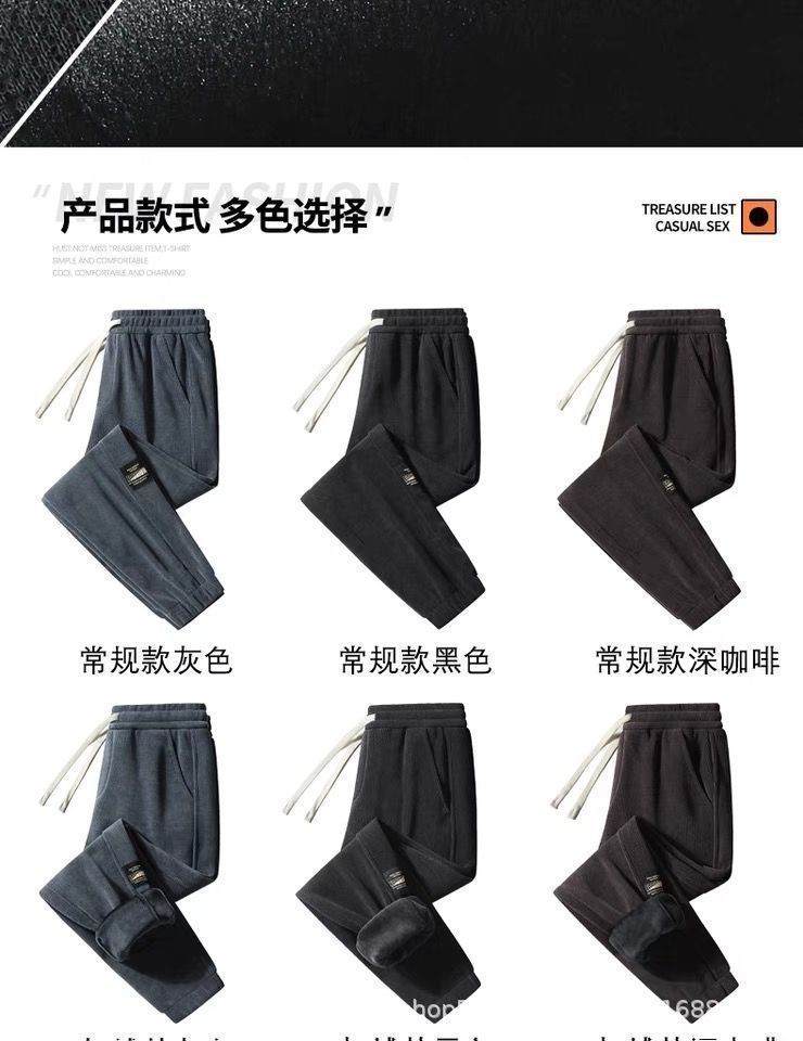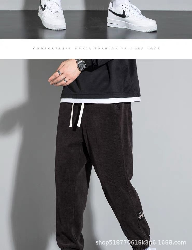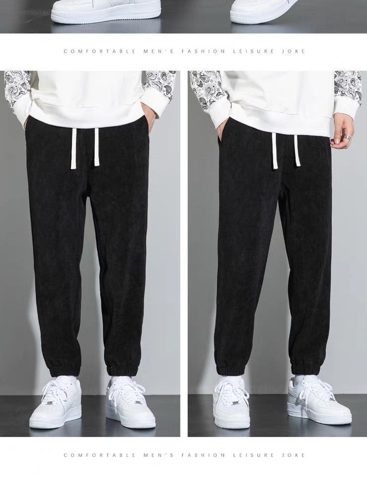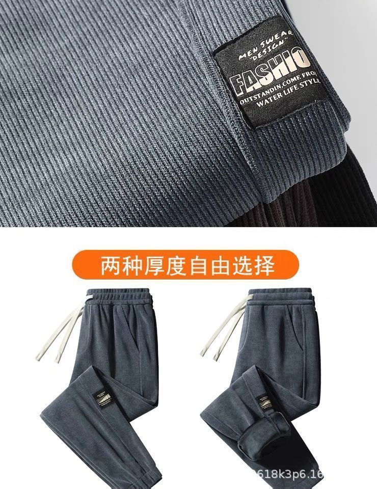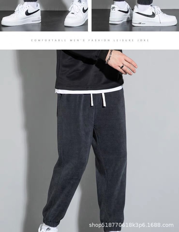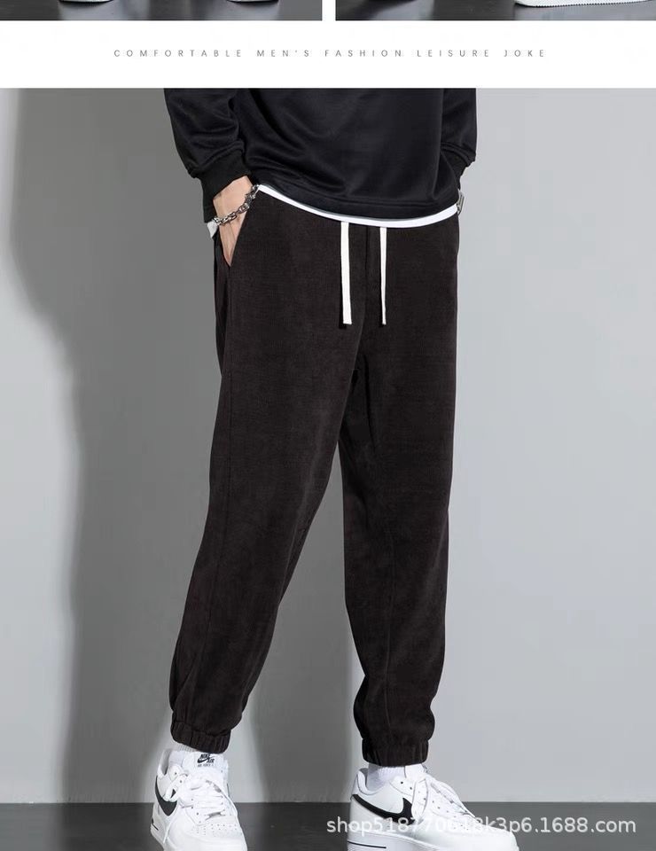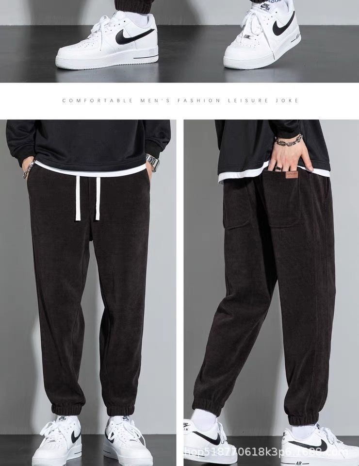 Pantalones deportivos de pana forrados de lana para hombres estudiantes de otoño e invierno Pantalones deportivos de estilo coreano pantalones sueltos atados al tobillo pantalones casuales versátiles para hombres
