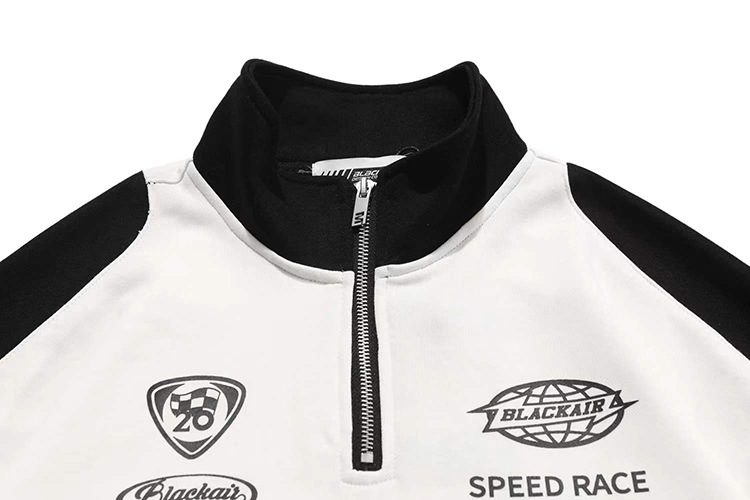 Original americano retro media cremallera color a juego ropa de carreras suéter para hombres y mujeres Primavera y otoño pareja marca de moda calle alta chaqueta de la motocicleta