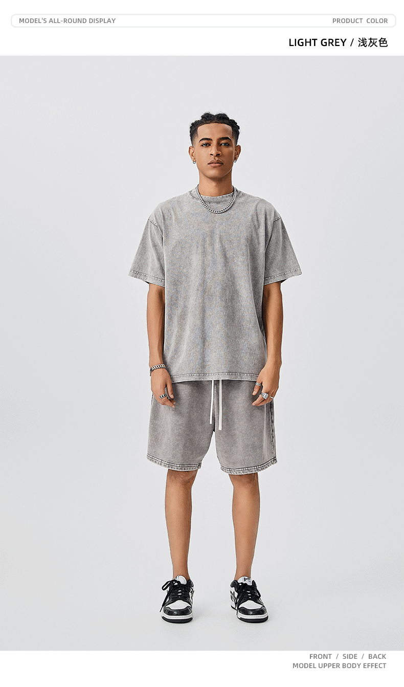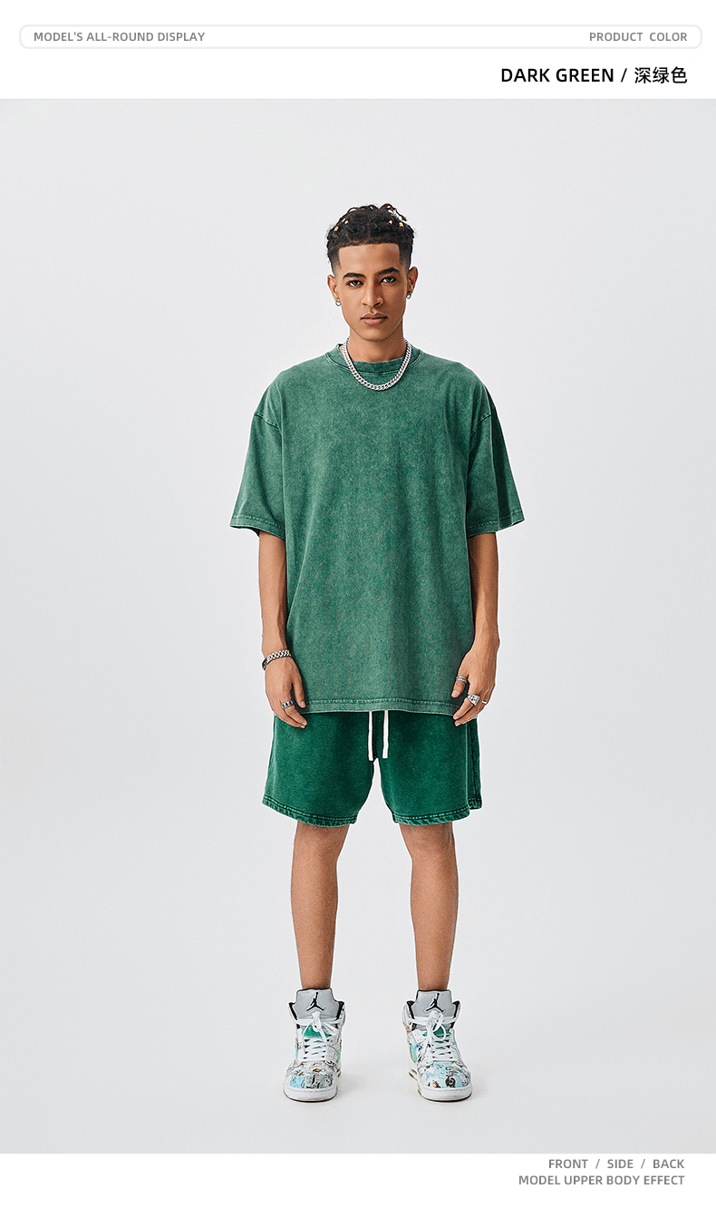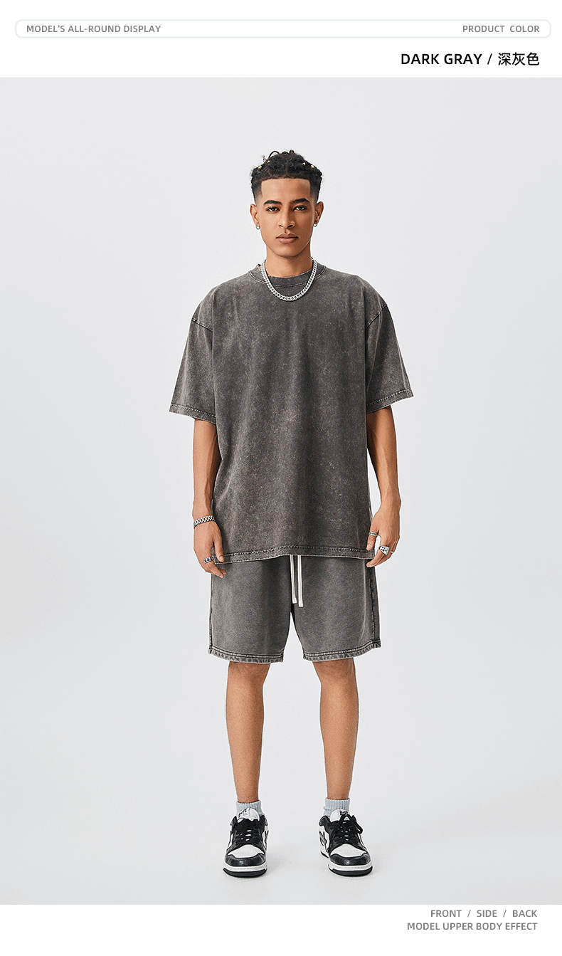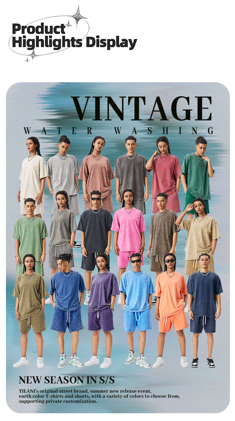 TILANI Summer Youth Trendy Brand Camiseta de manga corta para hombre Camiseta de manga corta de algodón lavado retro pesado para hombre