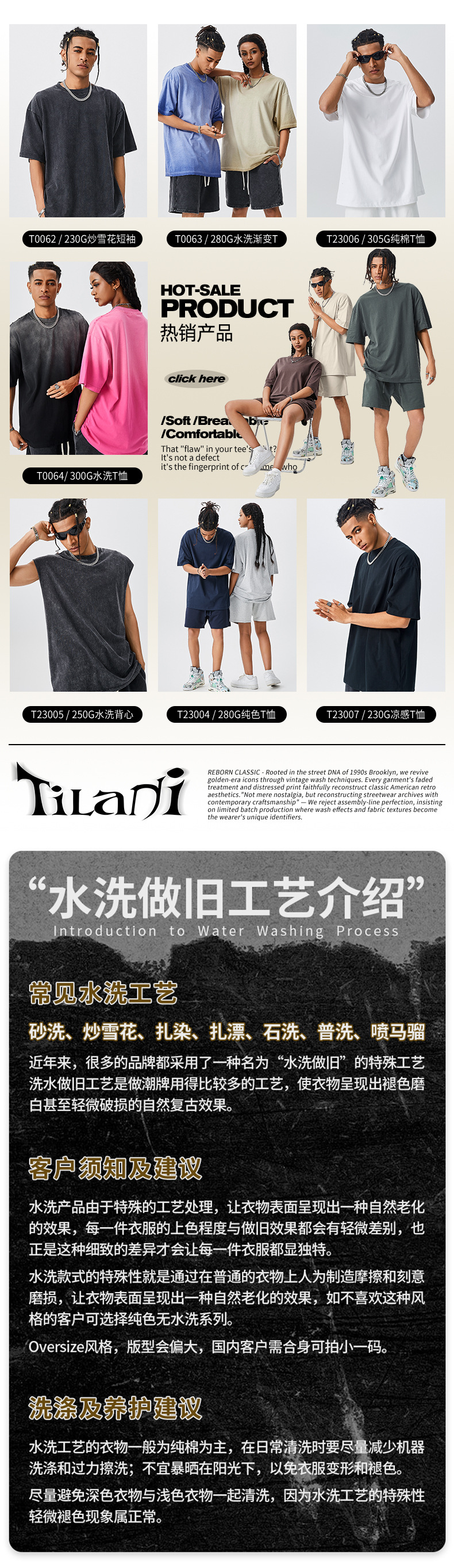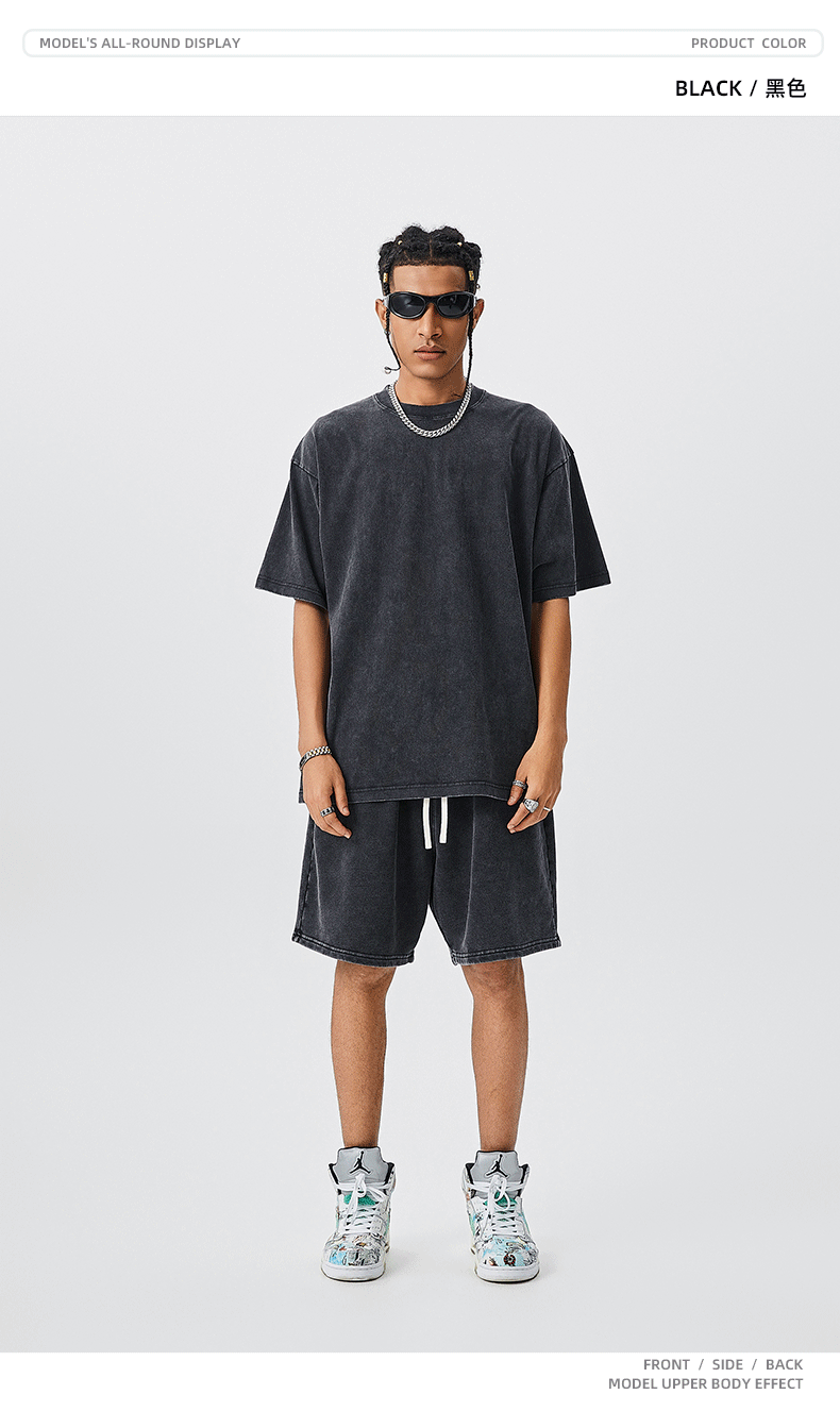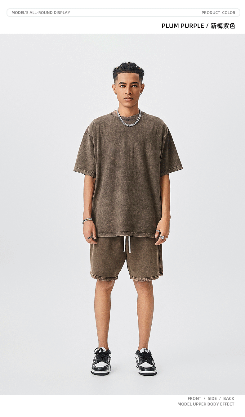 TILANI Summer Youth Trendy Brand Camiseta de manga corta para hombre Camiseta de manga corta de algodón lavado retro pesado para hombre