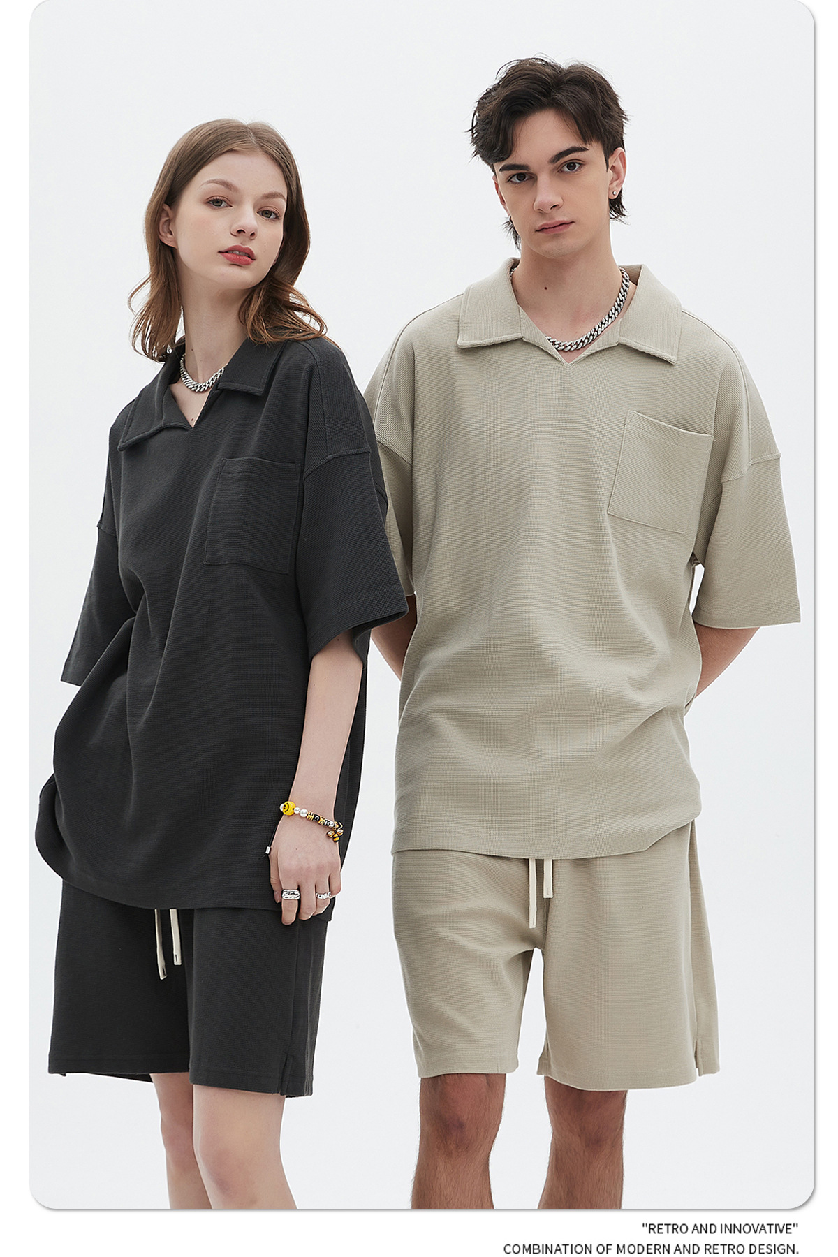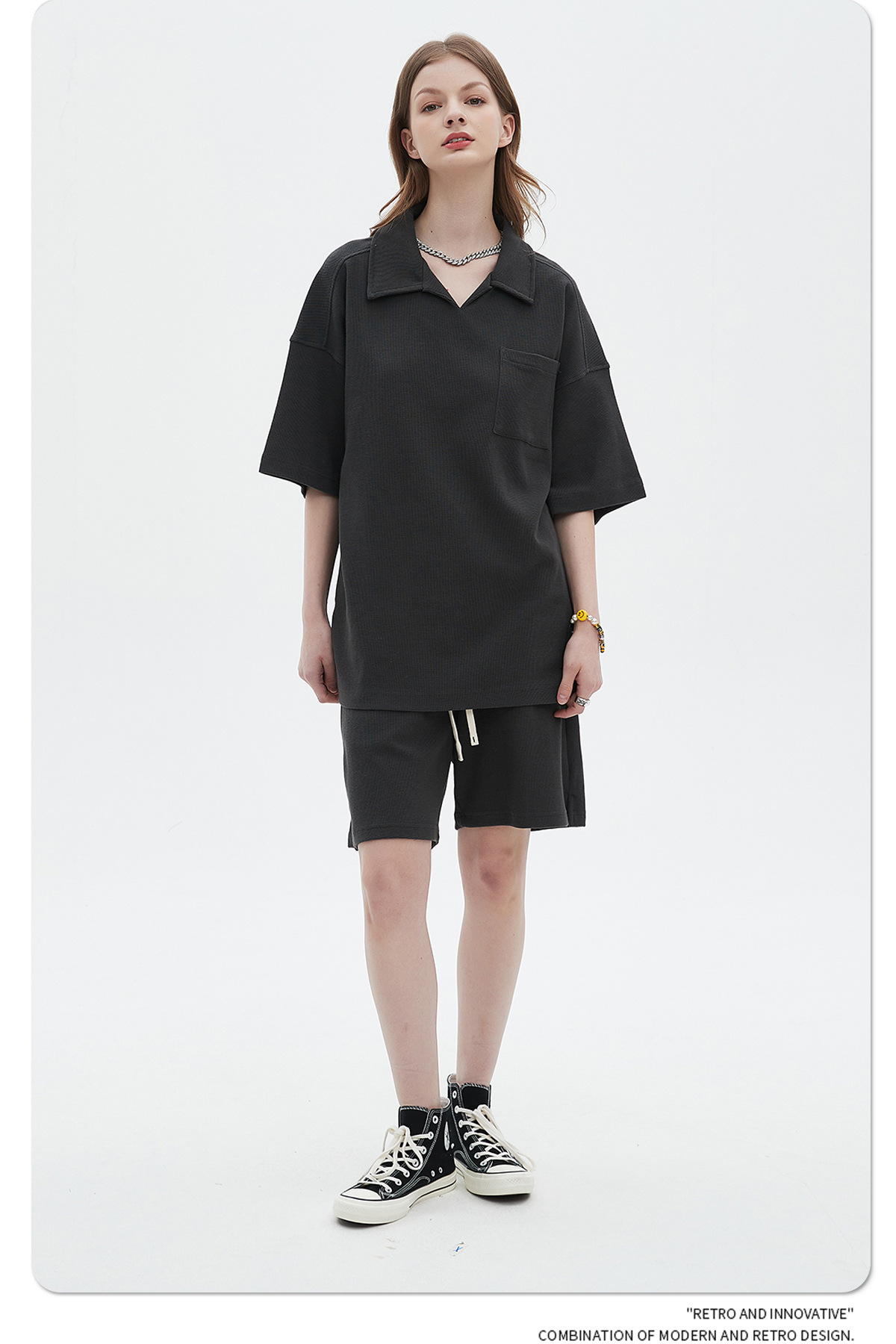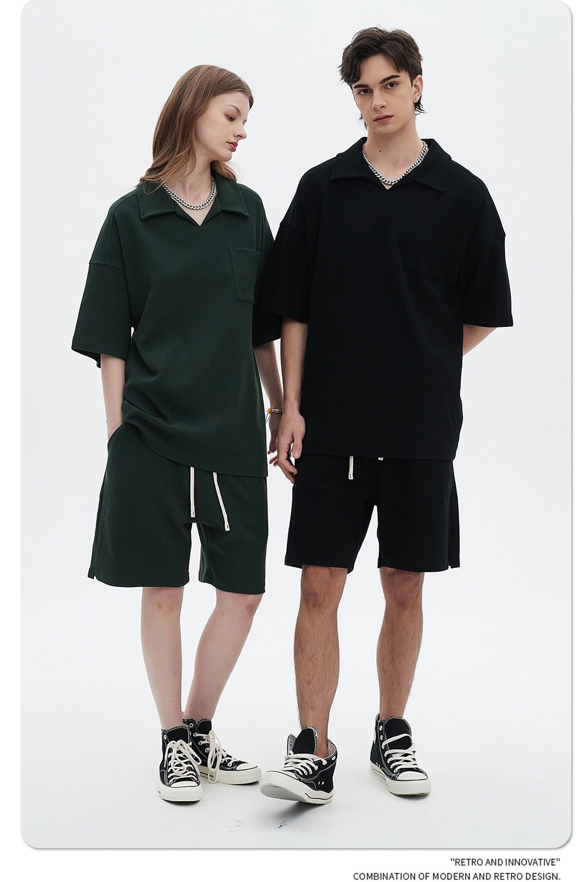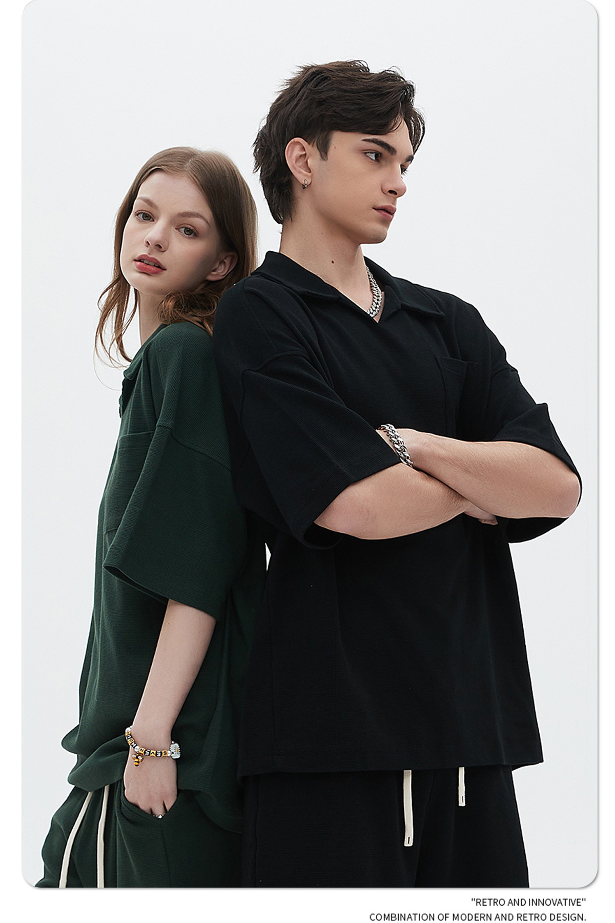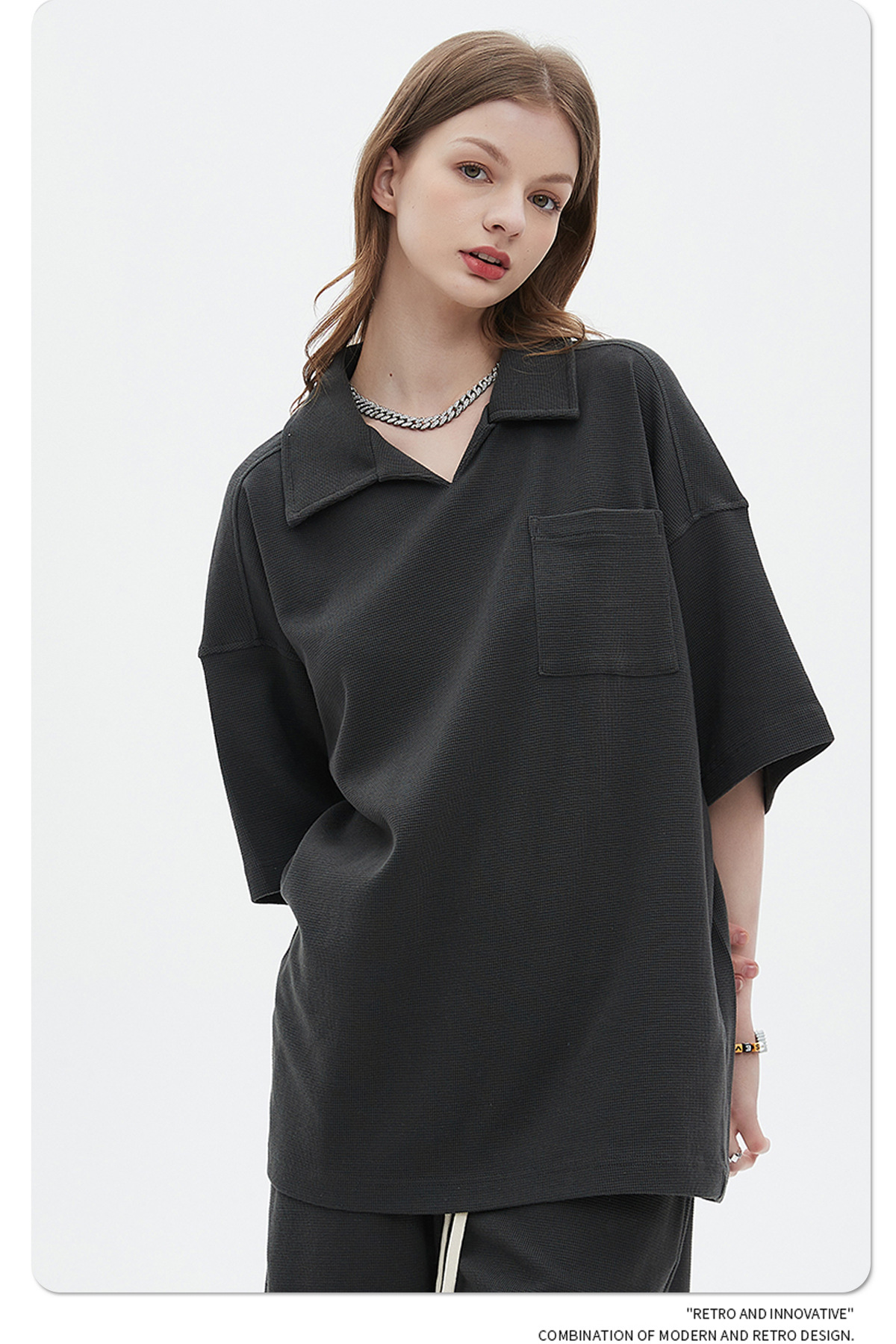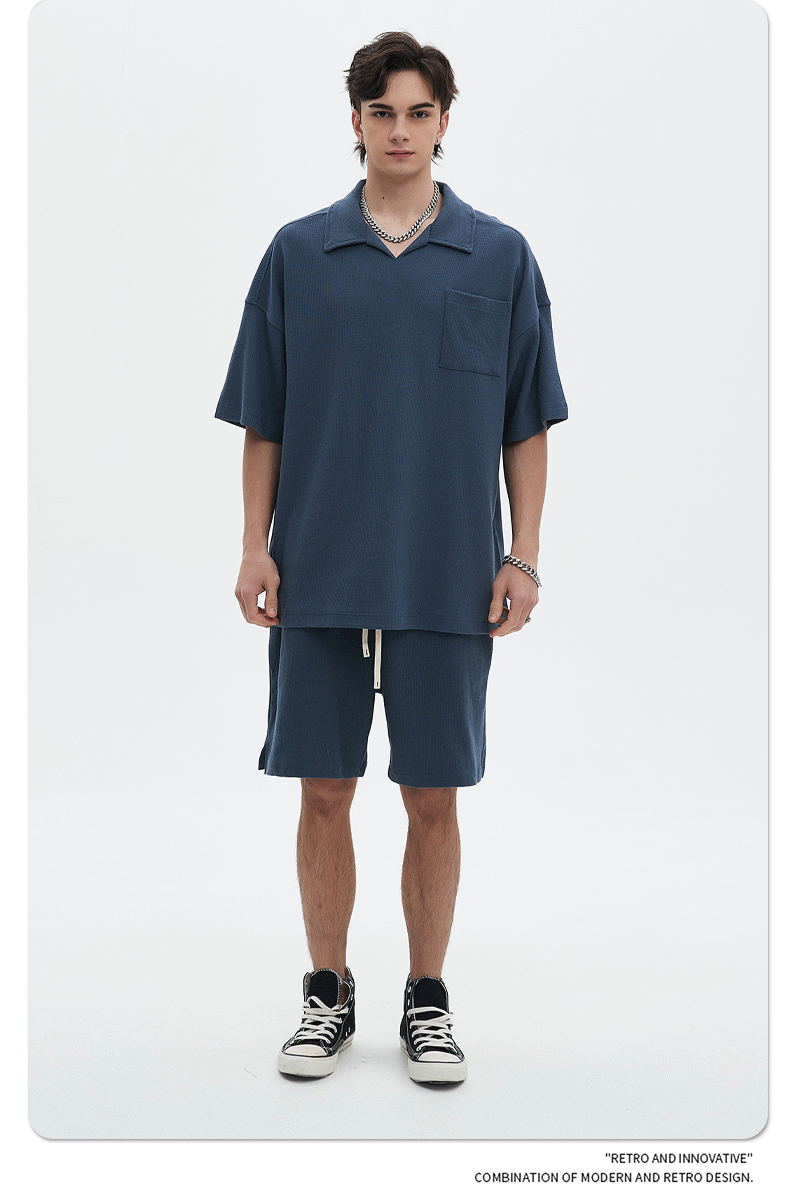 Camiseta de manga corta para hombre, estilo waffle transpirable, talla grande, estilo europeo y americano, holgada, con cuello tipo solapa, moda urbana 2025.