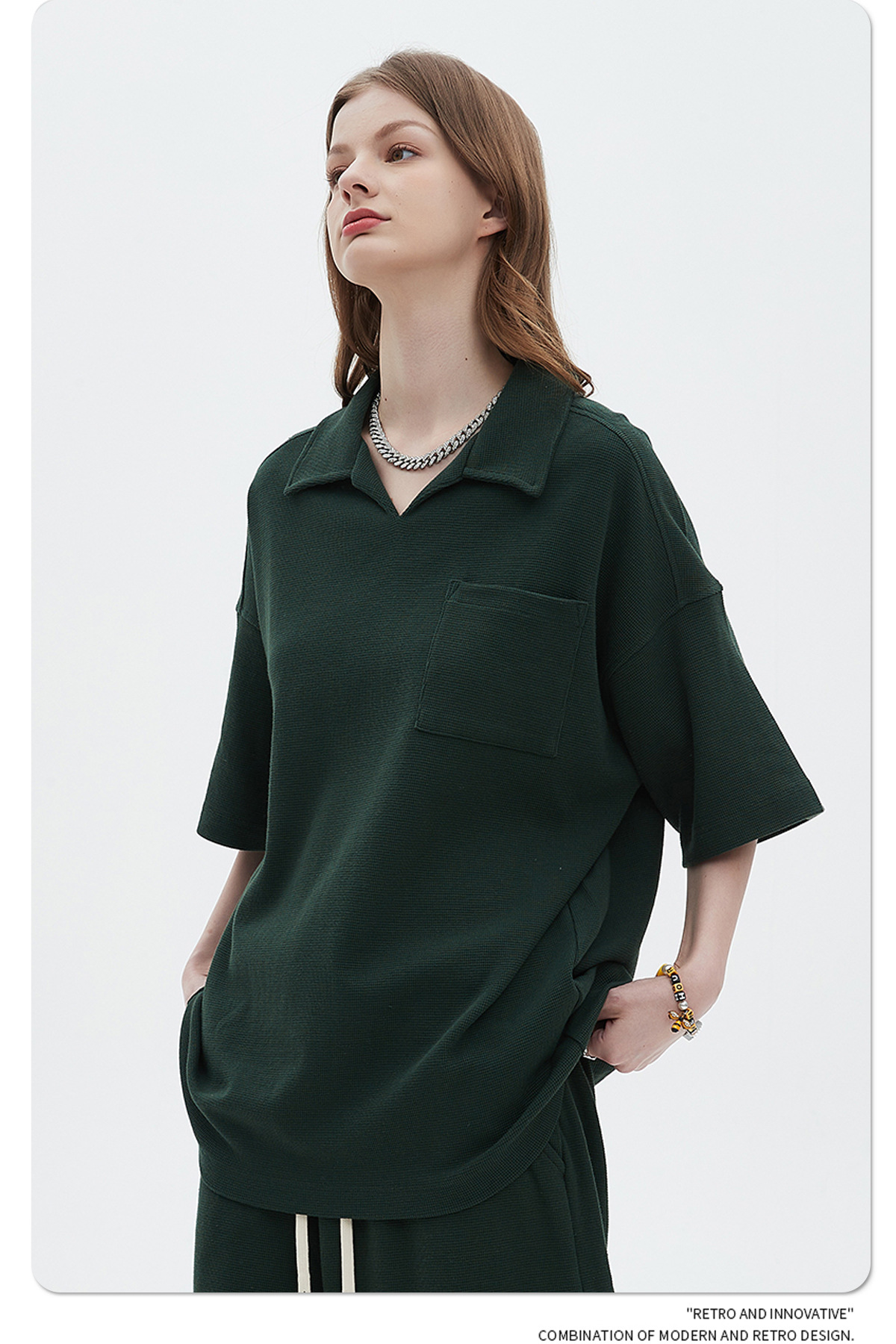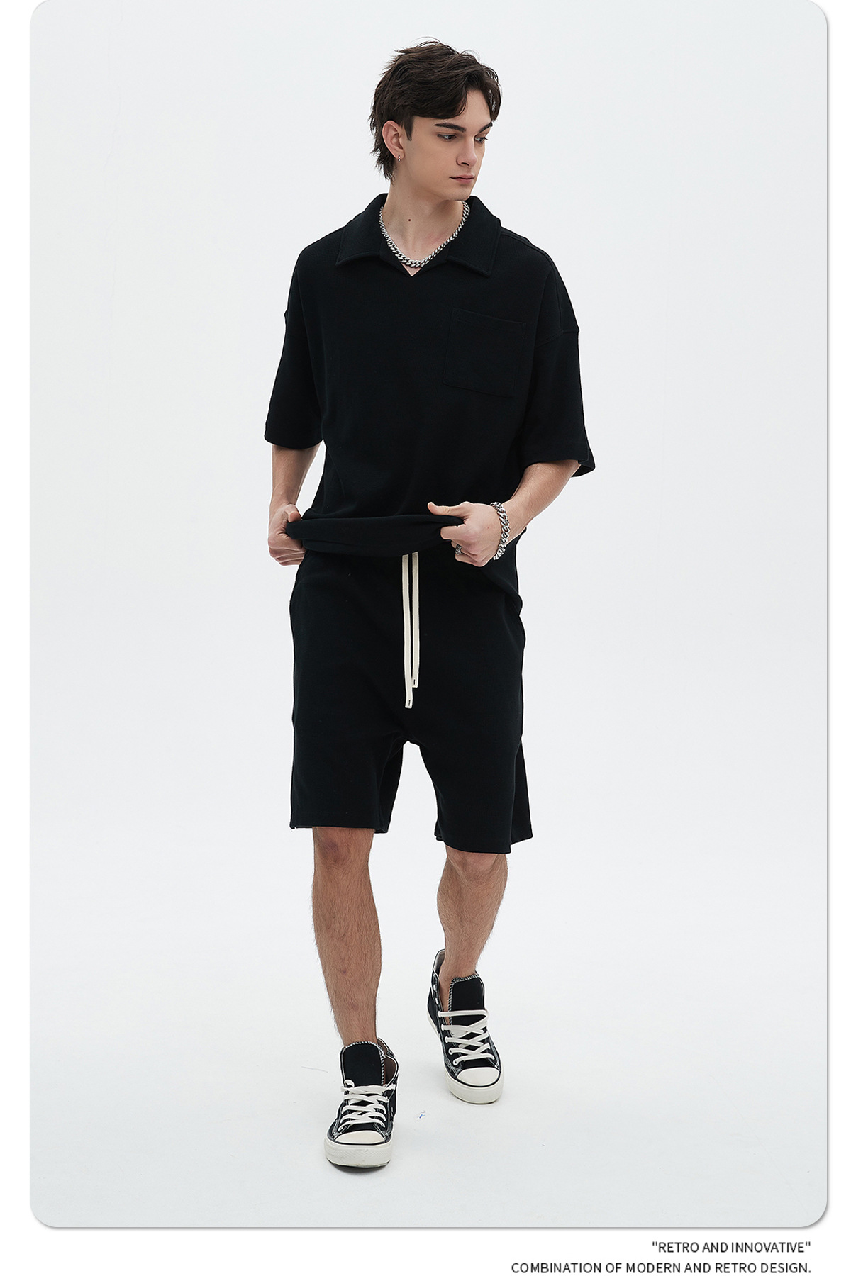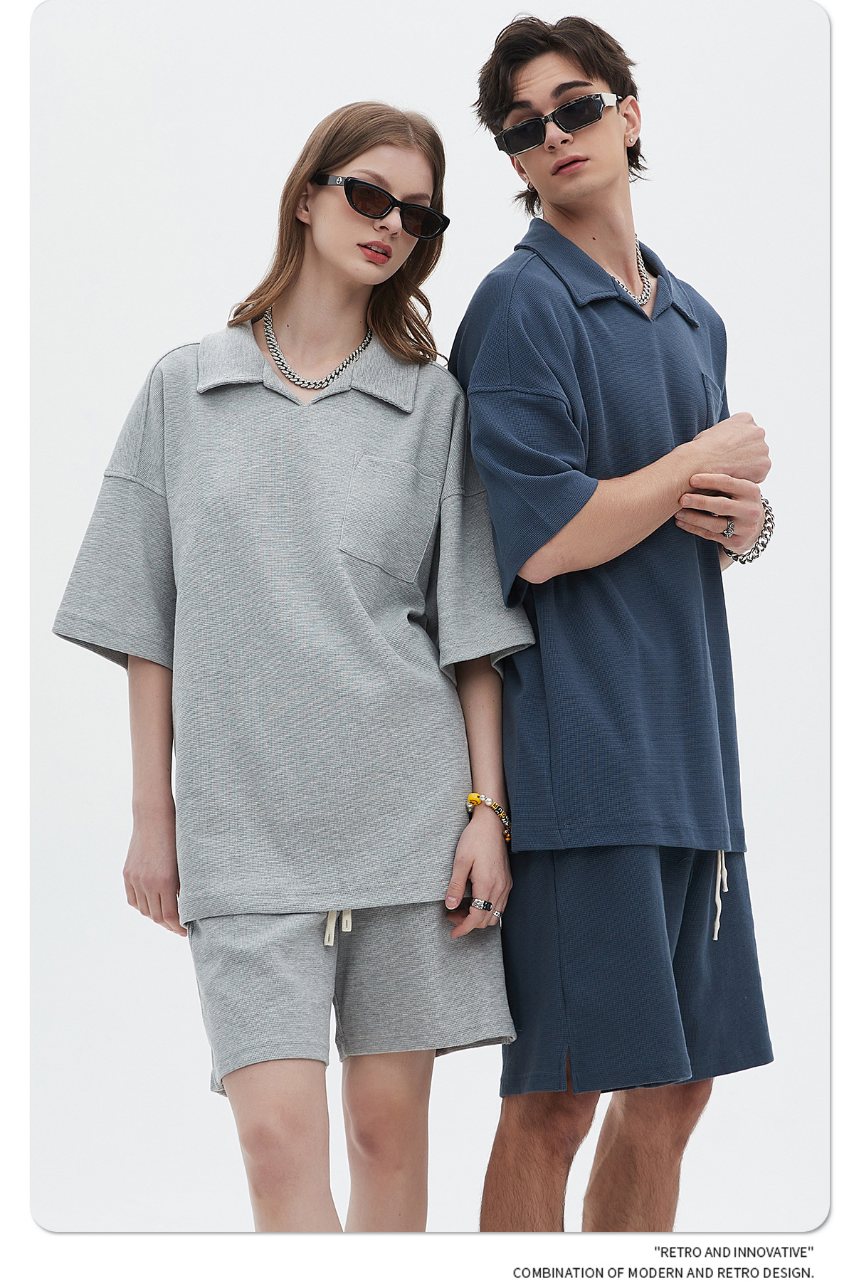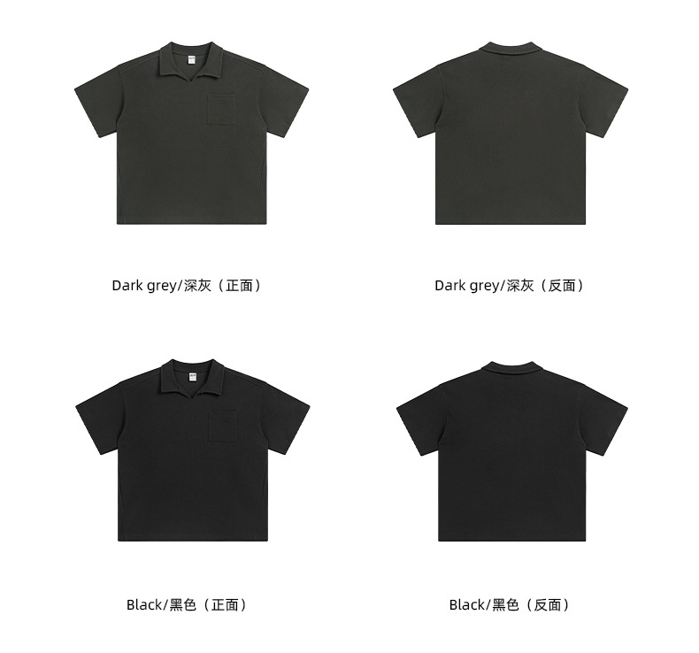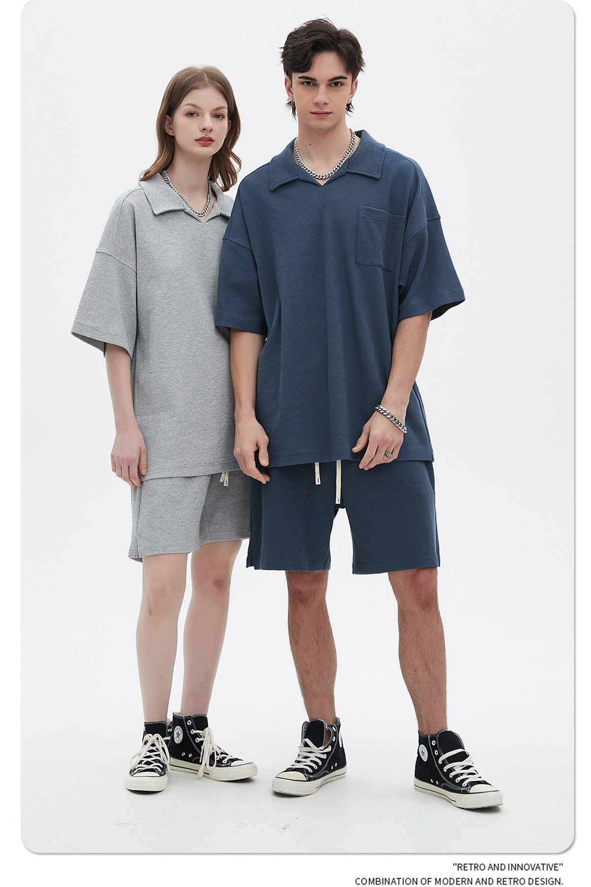 Camiseta de manga corta para hombre, estilo waffle transpirable, talla grande, estilo europeo y americano, holgada, con cuello tipo solapa, moda urbana 2025.
