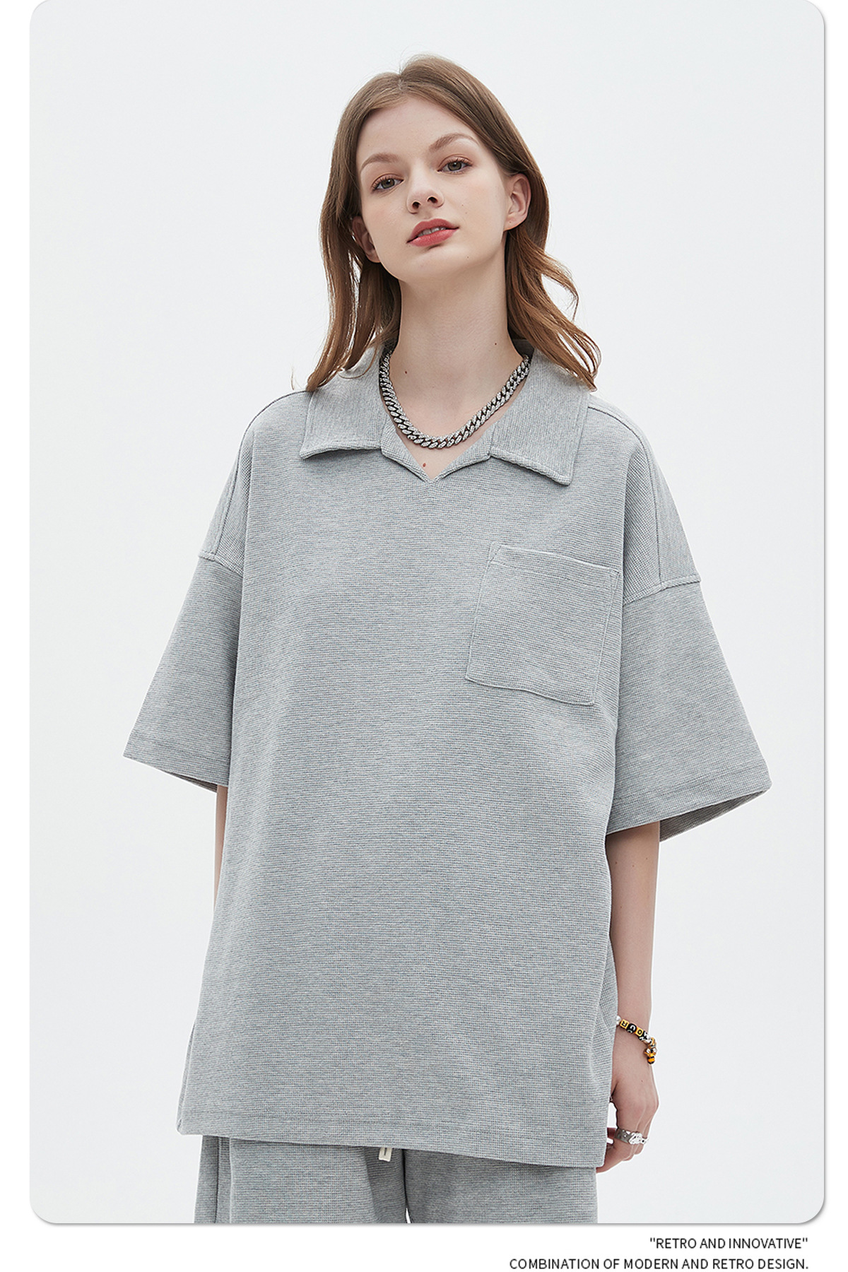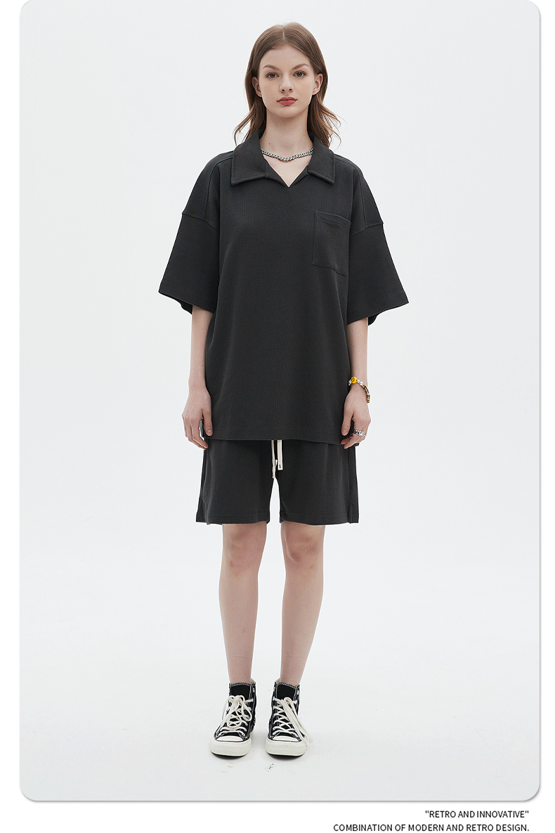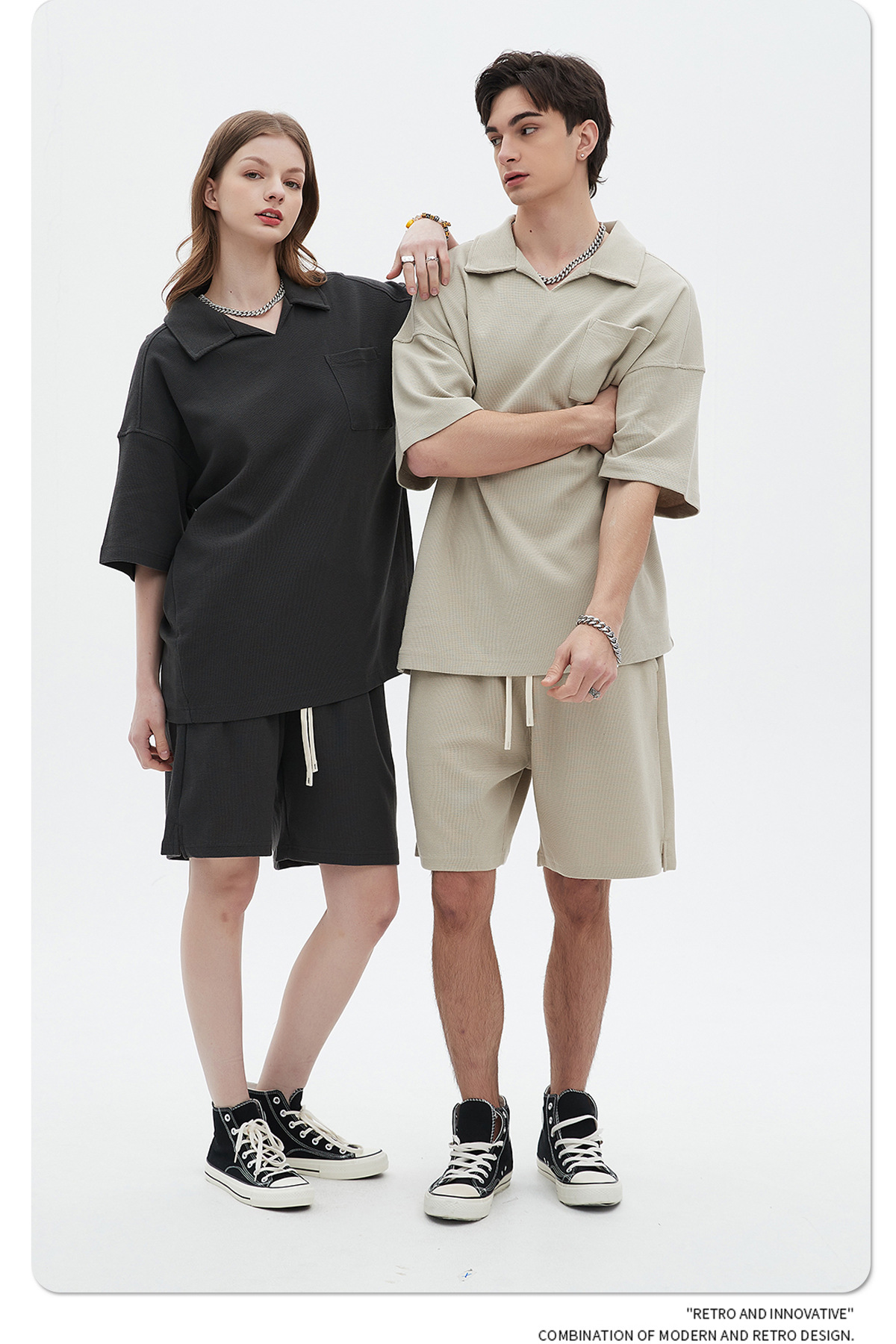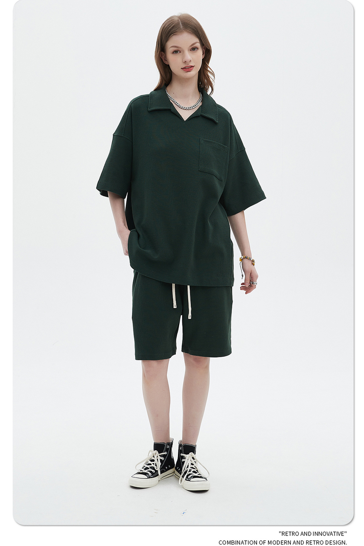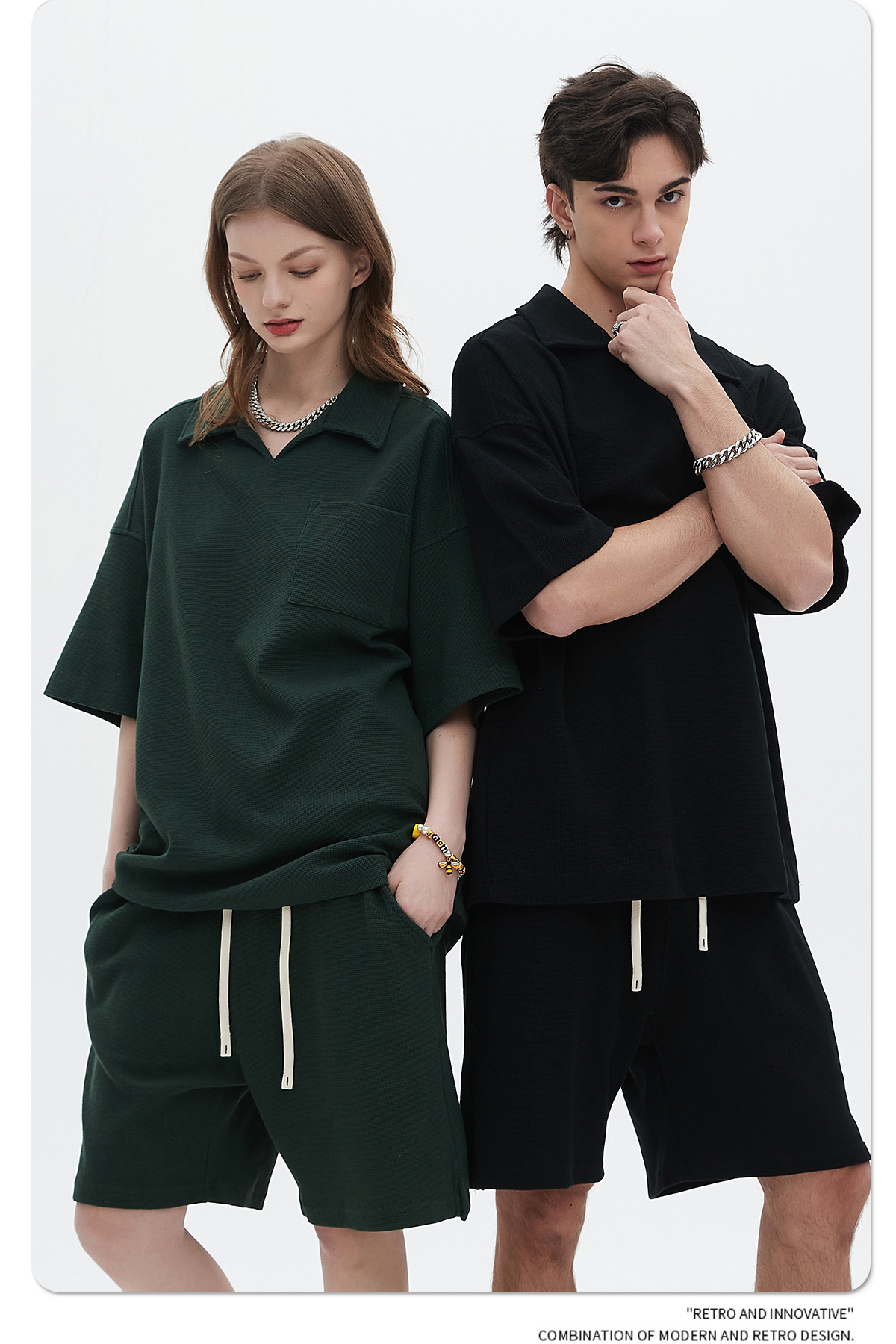 Camiseta de manga corta para hombre, estilo waffle transpirable, talla grande, estilo europeo y americano, holgada, con cuello tipo solapa, moda urbana 2025.