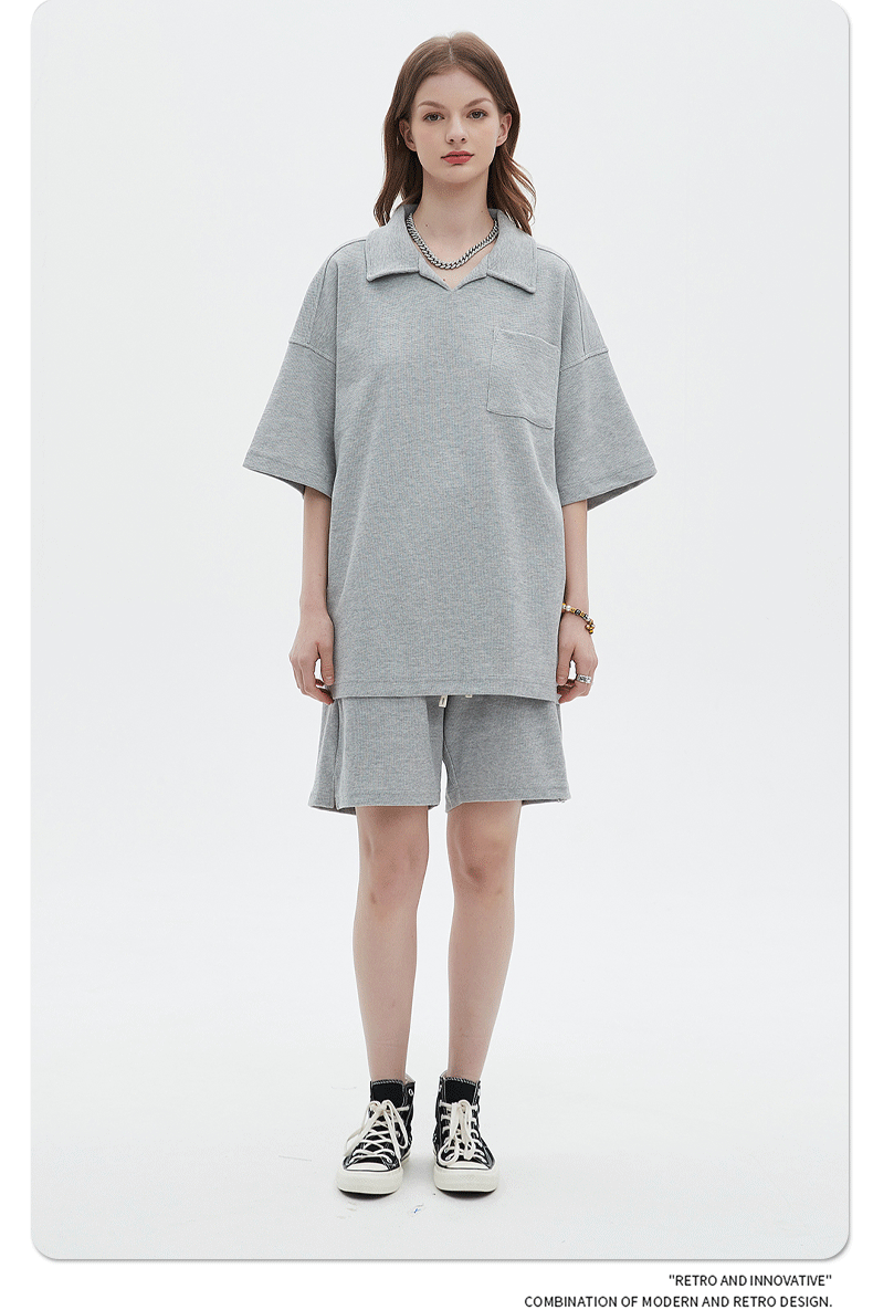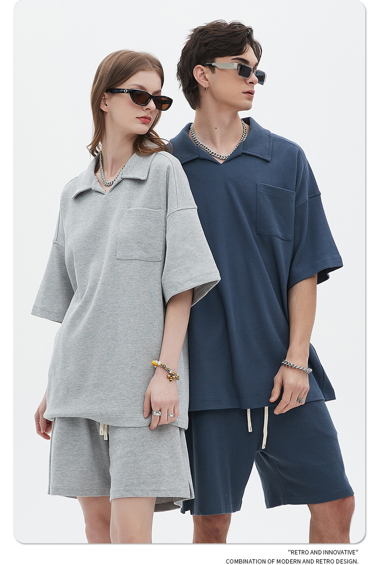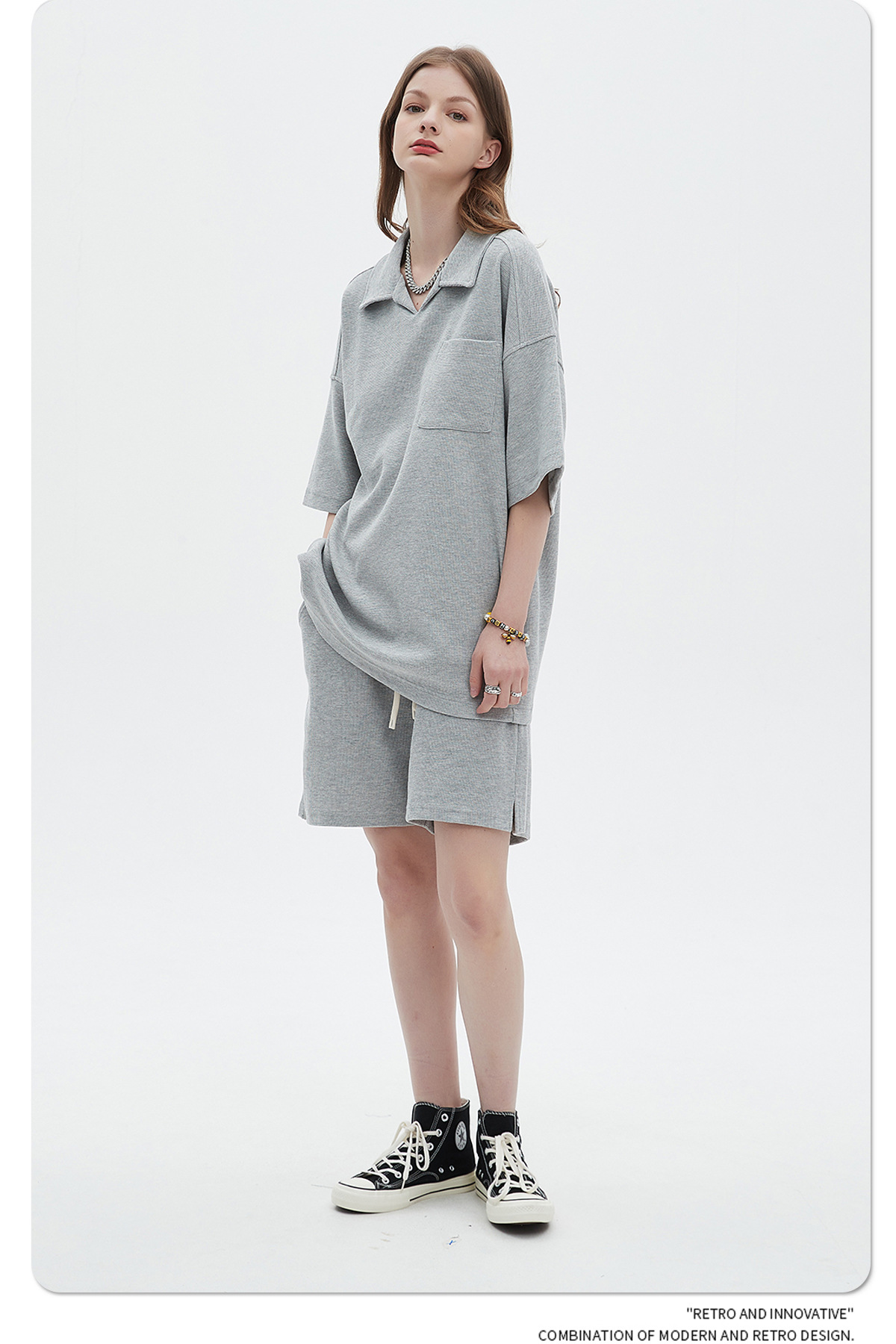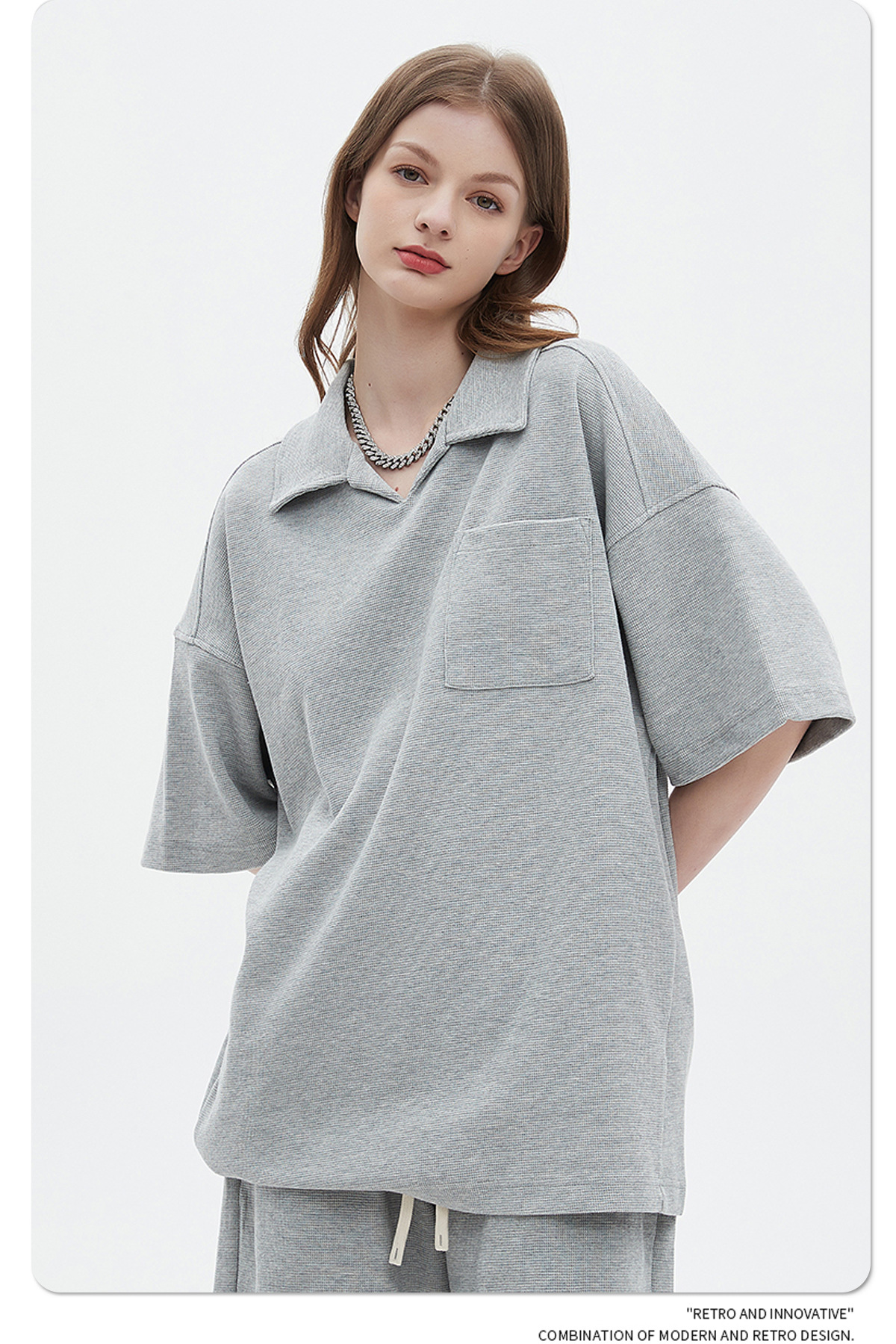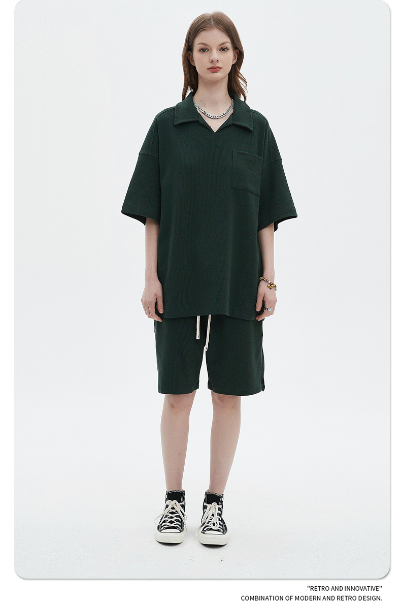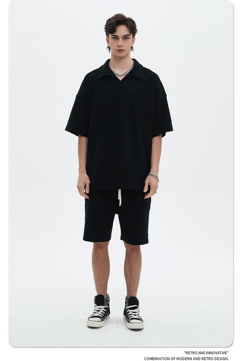 Camiseta de manga corta para hombre, estilo waffle transpirable, talla grande, estilo europeo y americano, holgada, con cuello tipo solapa, moda urbana 2025.