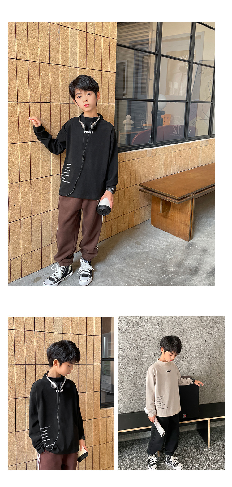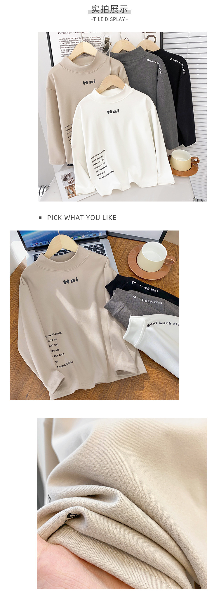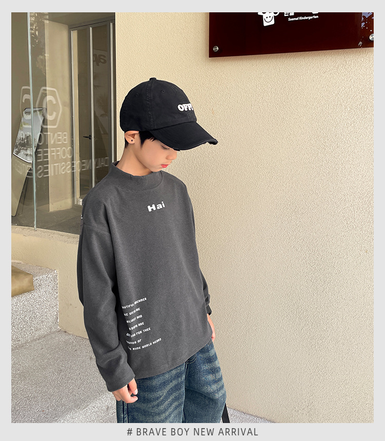 Camisa de fondo de estilo occidental para niños 2023 Otoño e Invierno nuevos niños estilo coreano Camiseta de manga larga para niños de terciopelo medio y niños grandes