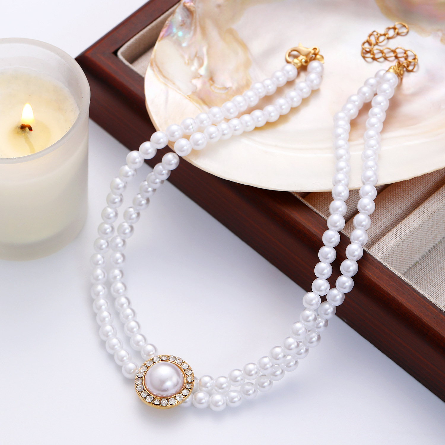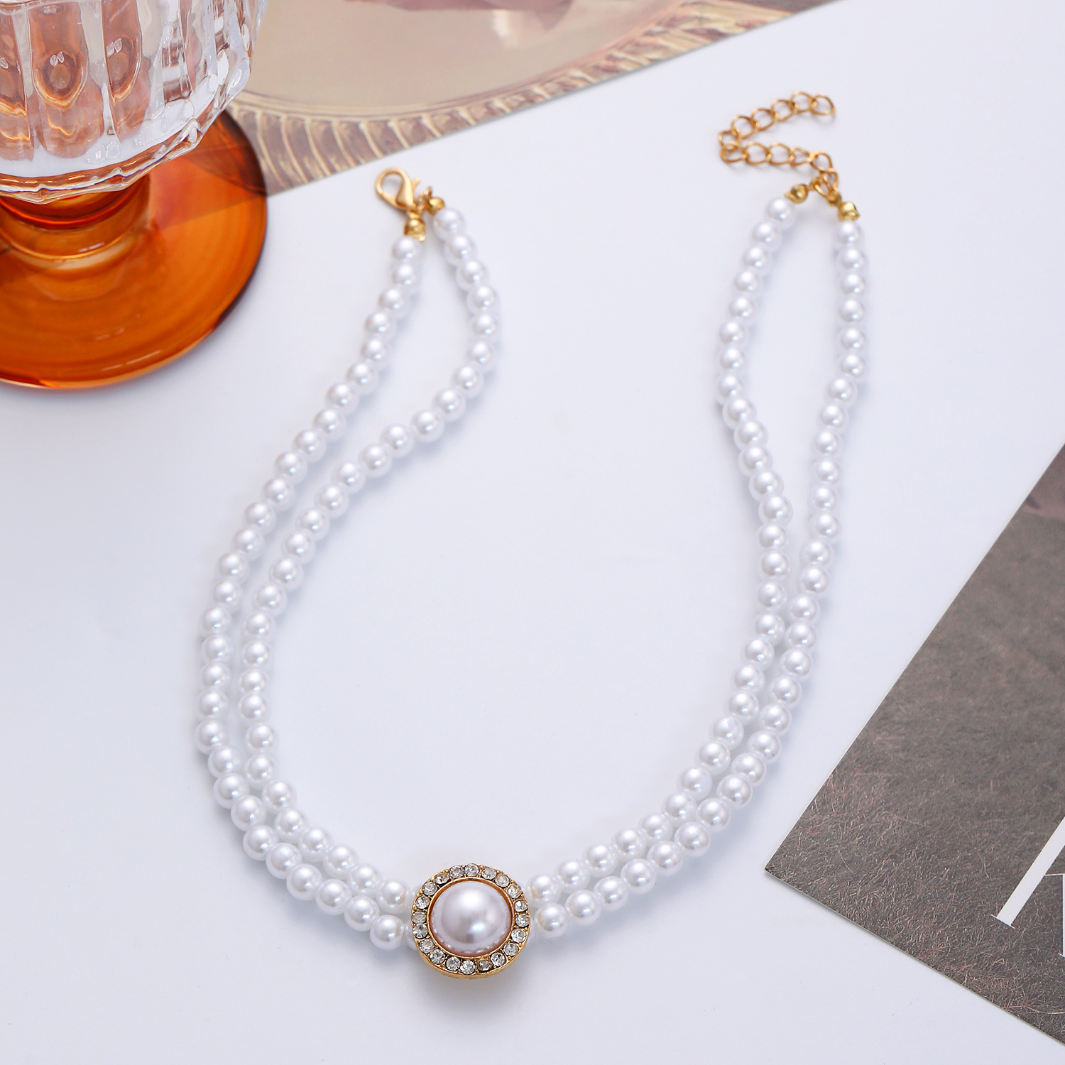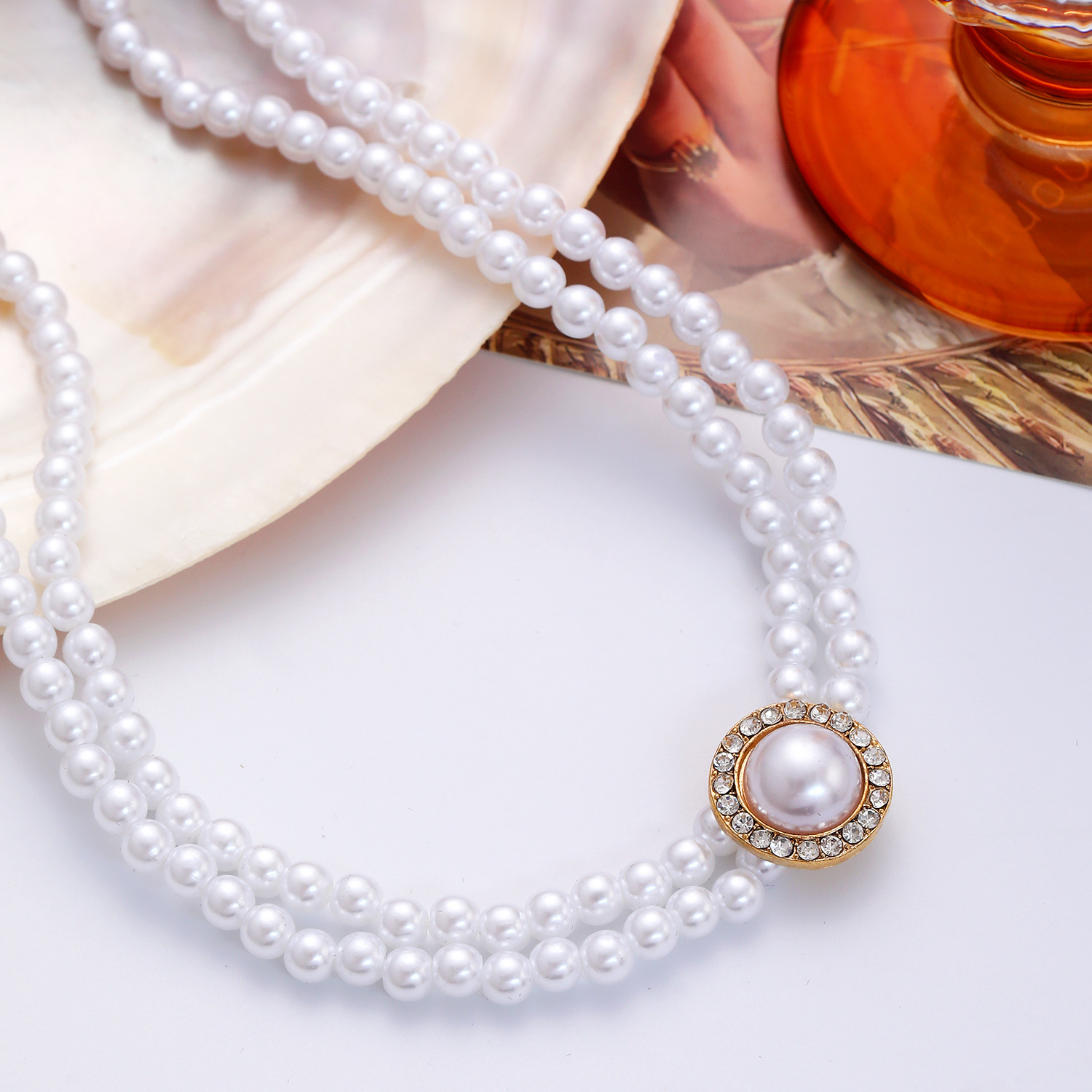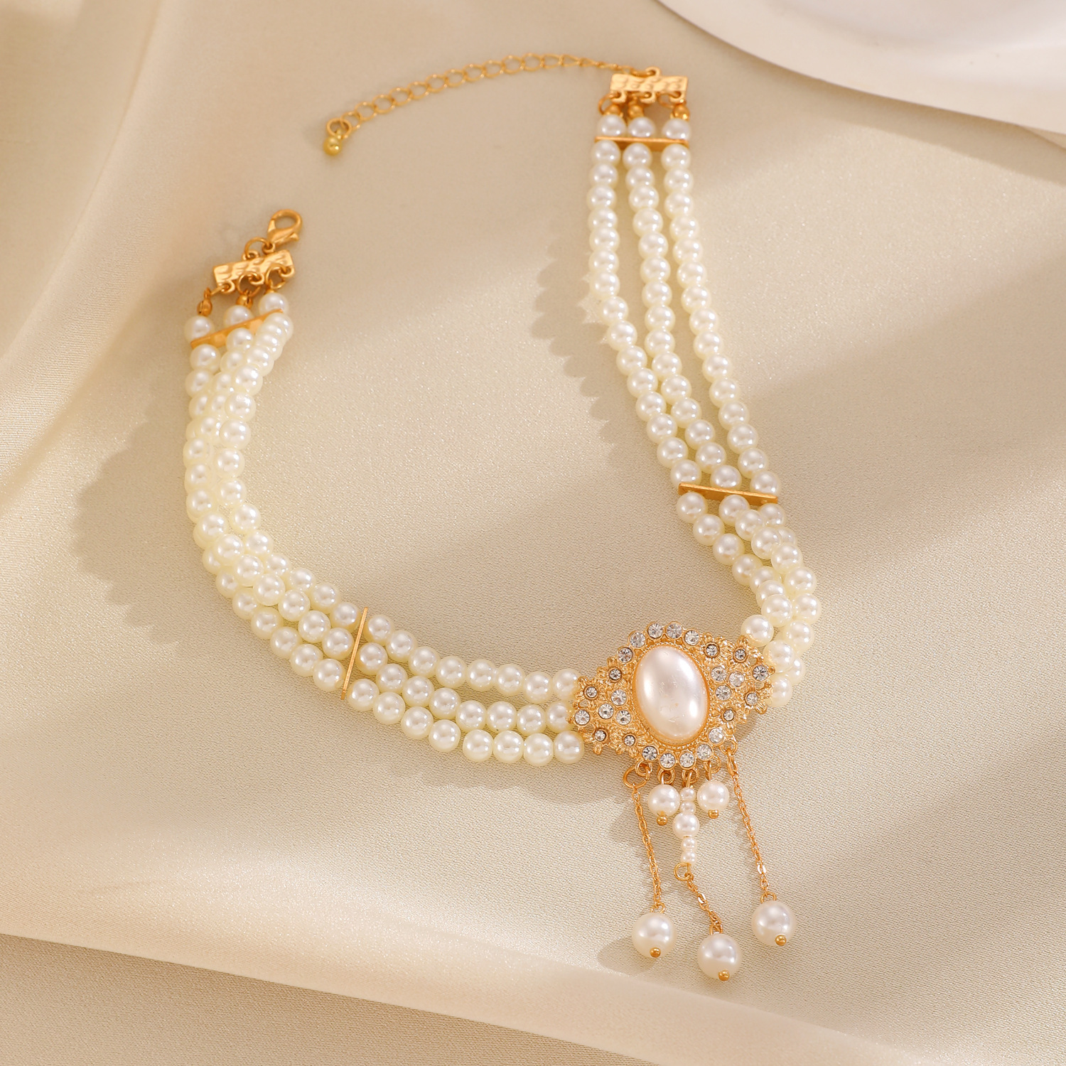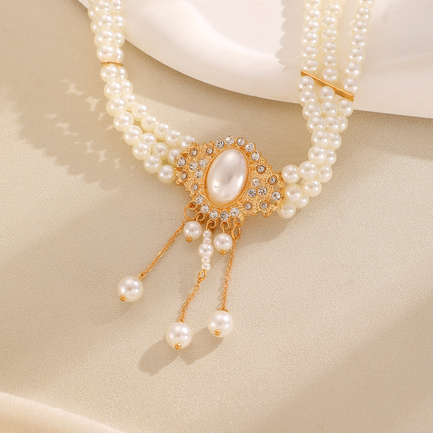 Cadena de clavícula geométrica de perlas multicapa de lujo ligero de nicho europeo y americano estilo palacio francés collar retro temperamento elegante