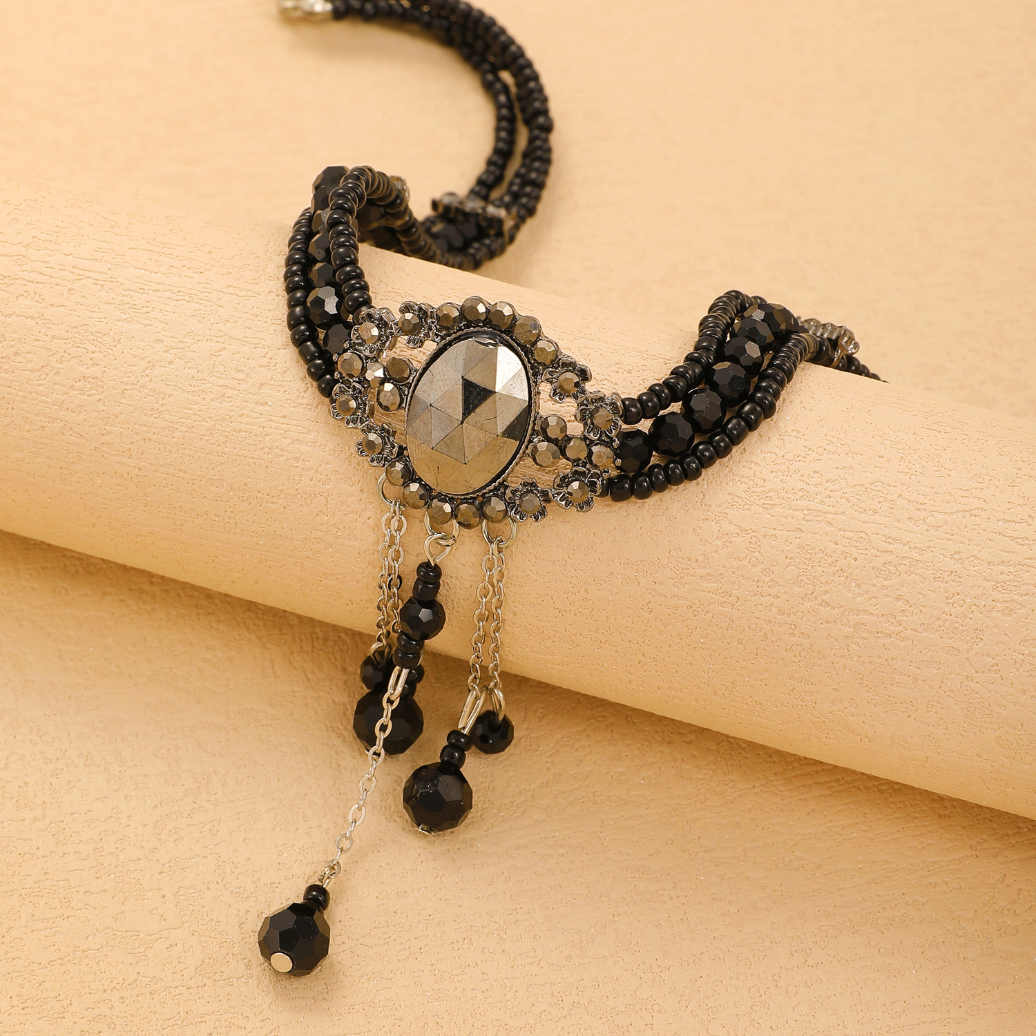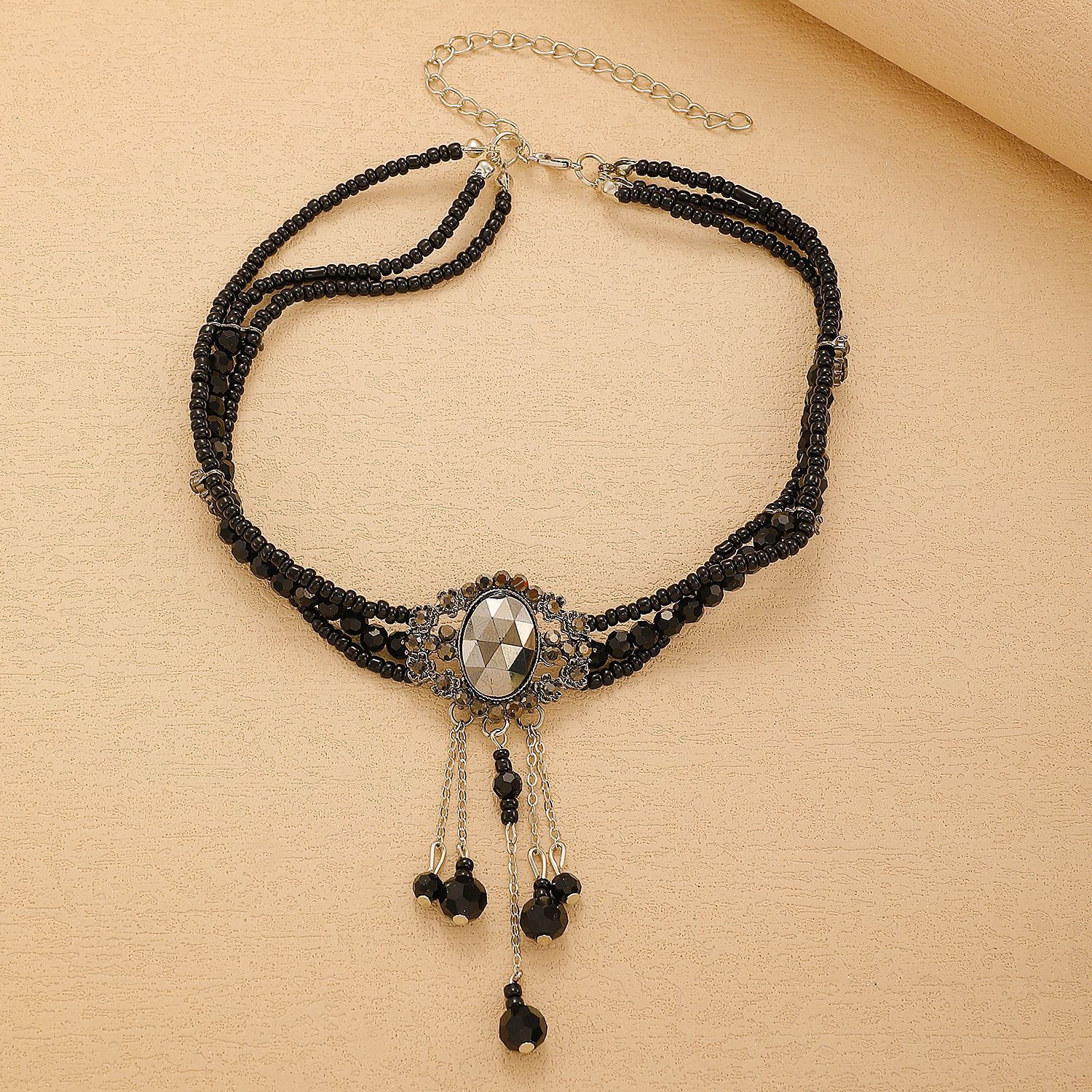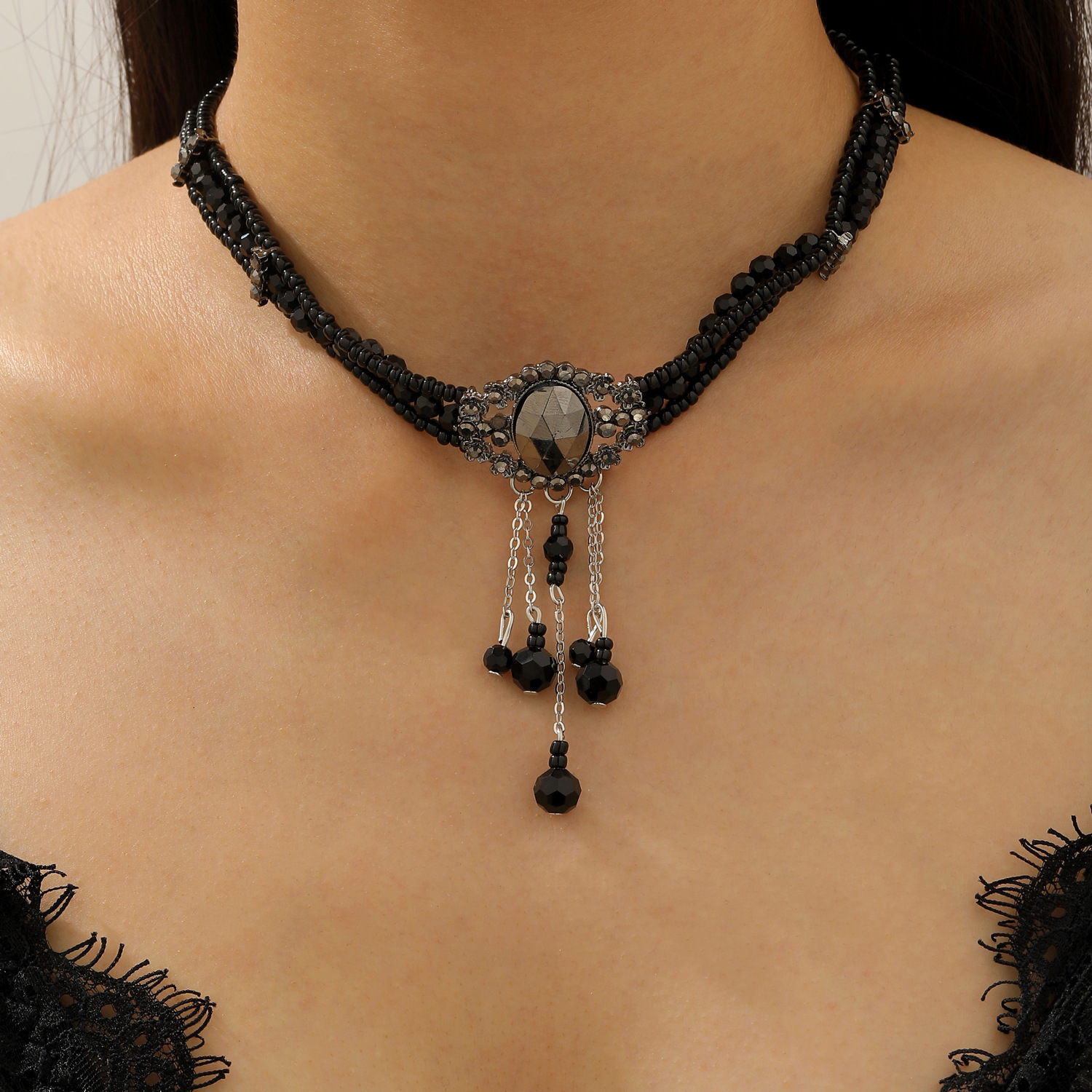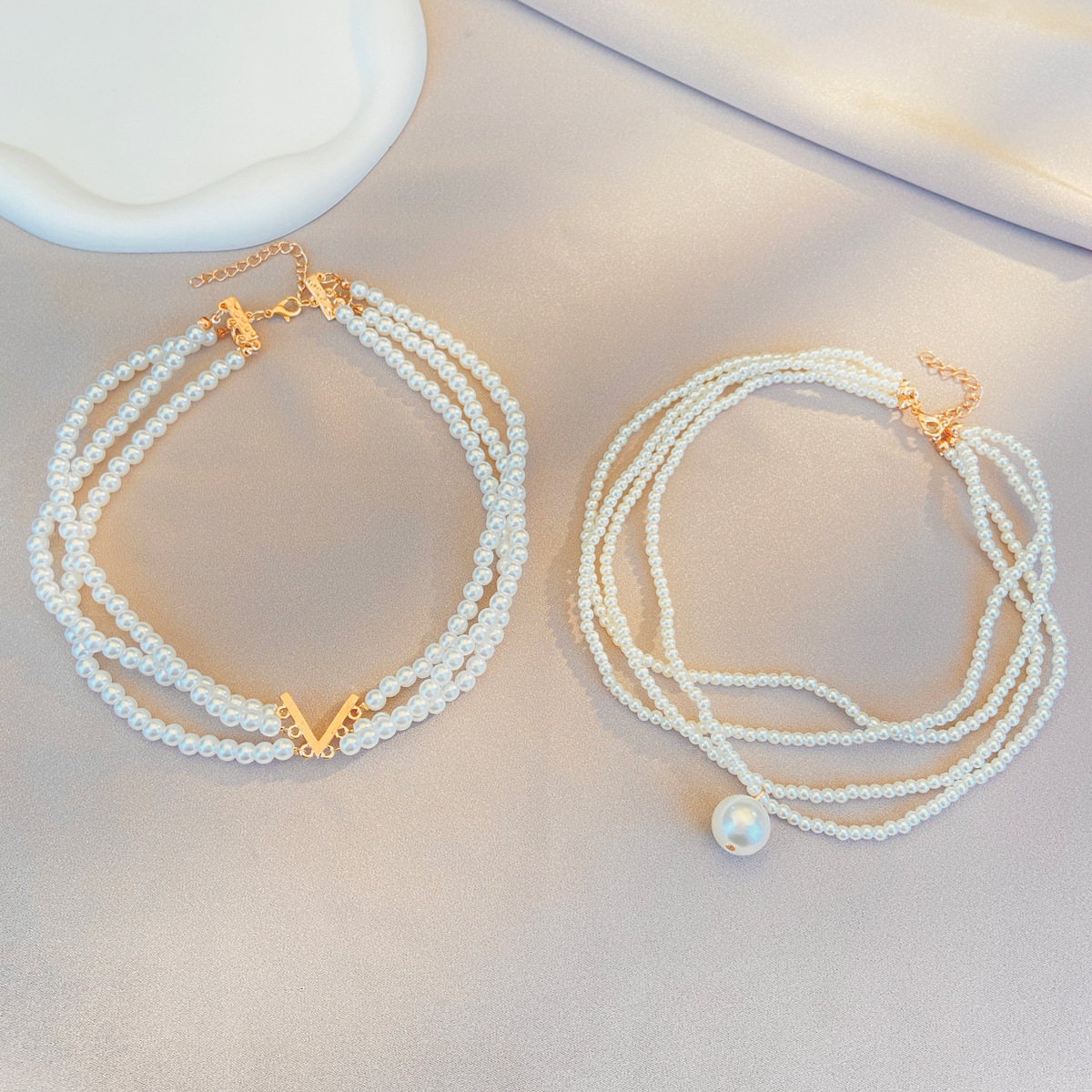 Cadena de clavícula geométrica de perlas multicapa de lujo ligero de nicho europeo y americano estilo palacio francés collar retro temperamento elegante