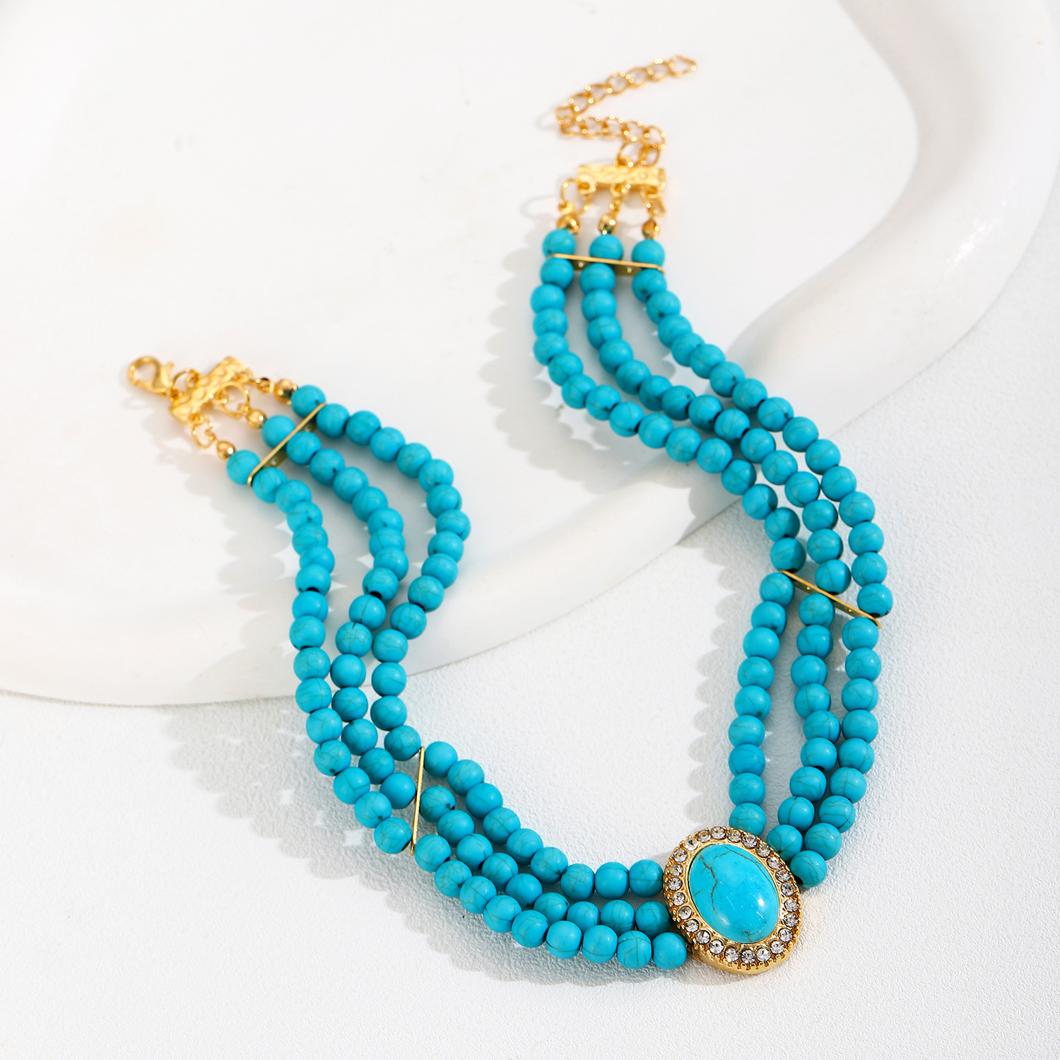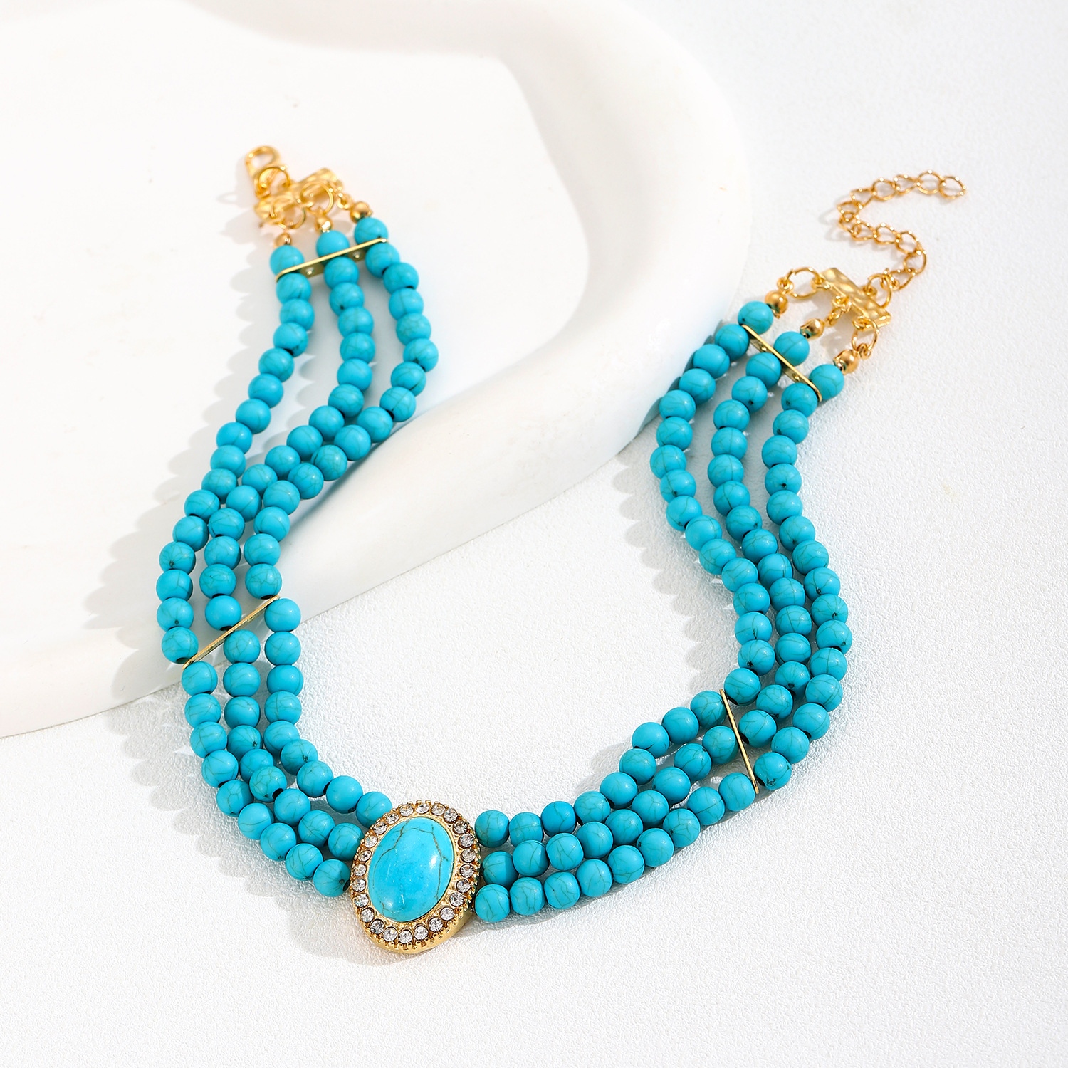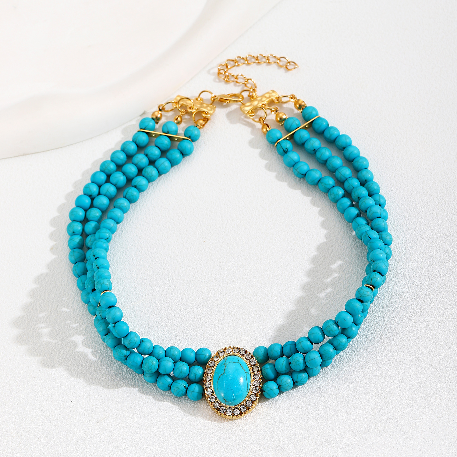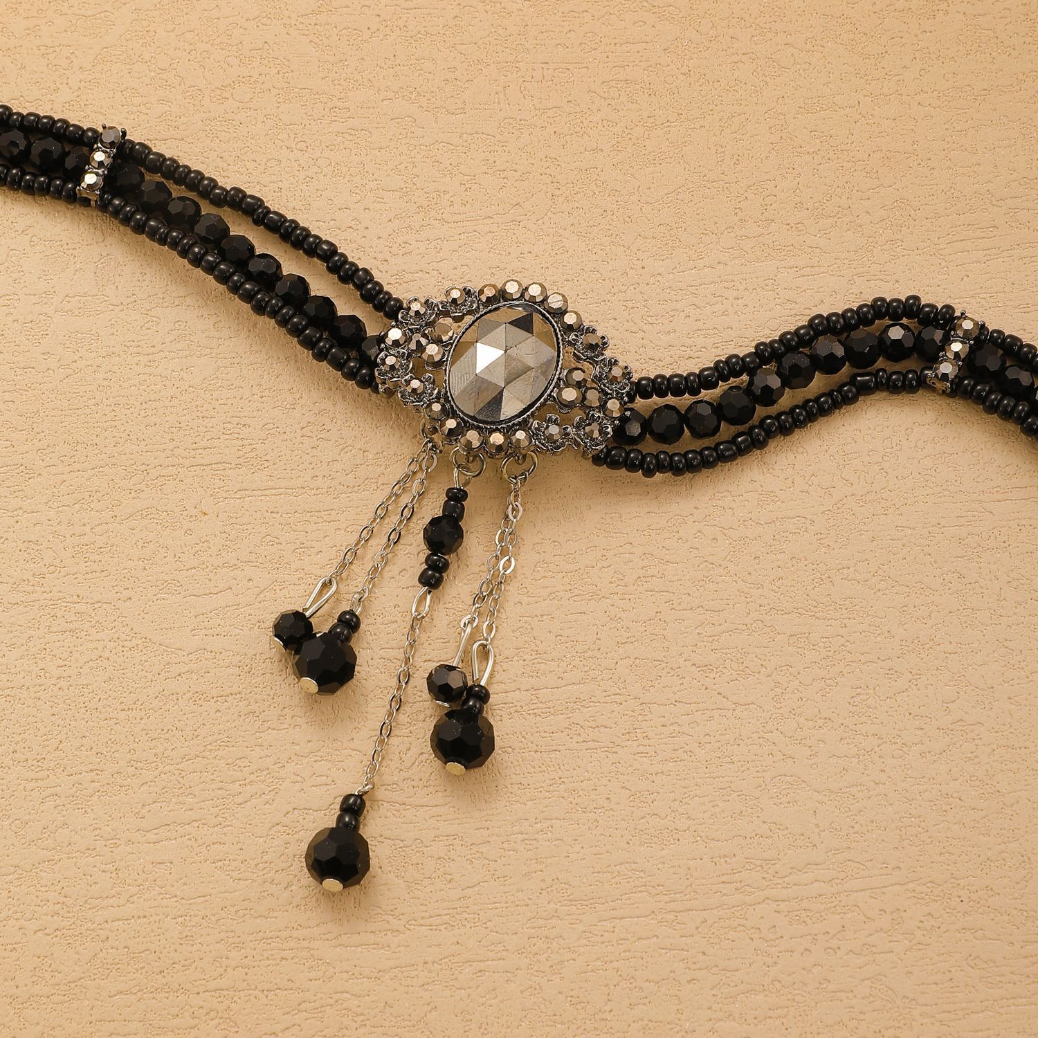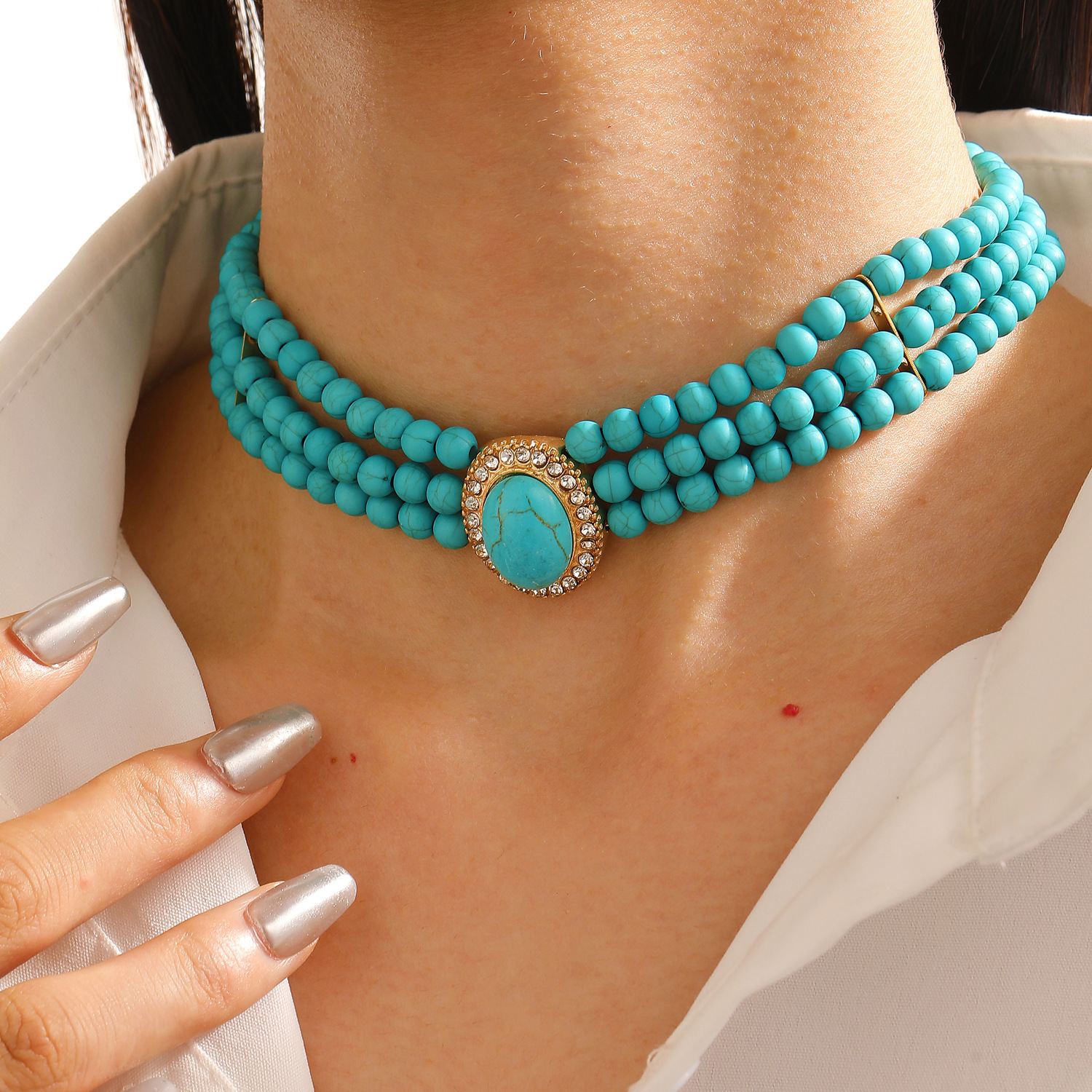 Cadena de clavícula geométrica de perlas multicapa de lujo ligero de nicho europeo y americano estilo palacio francés collar retro temperamento elegante