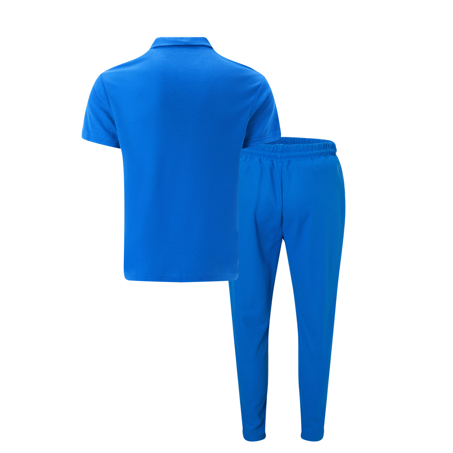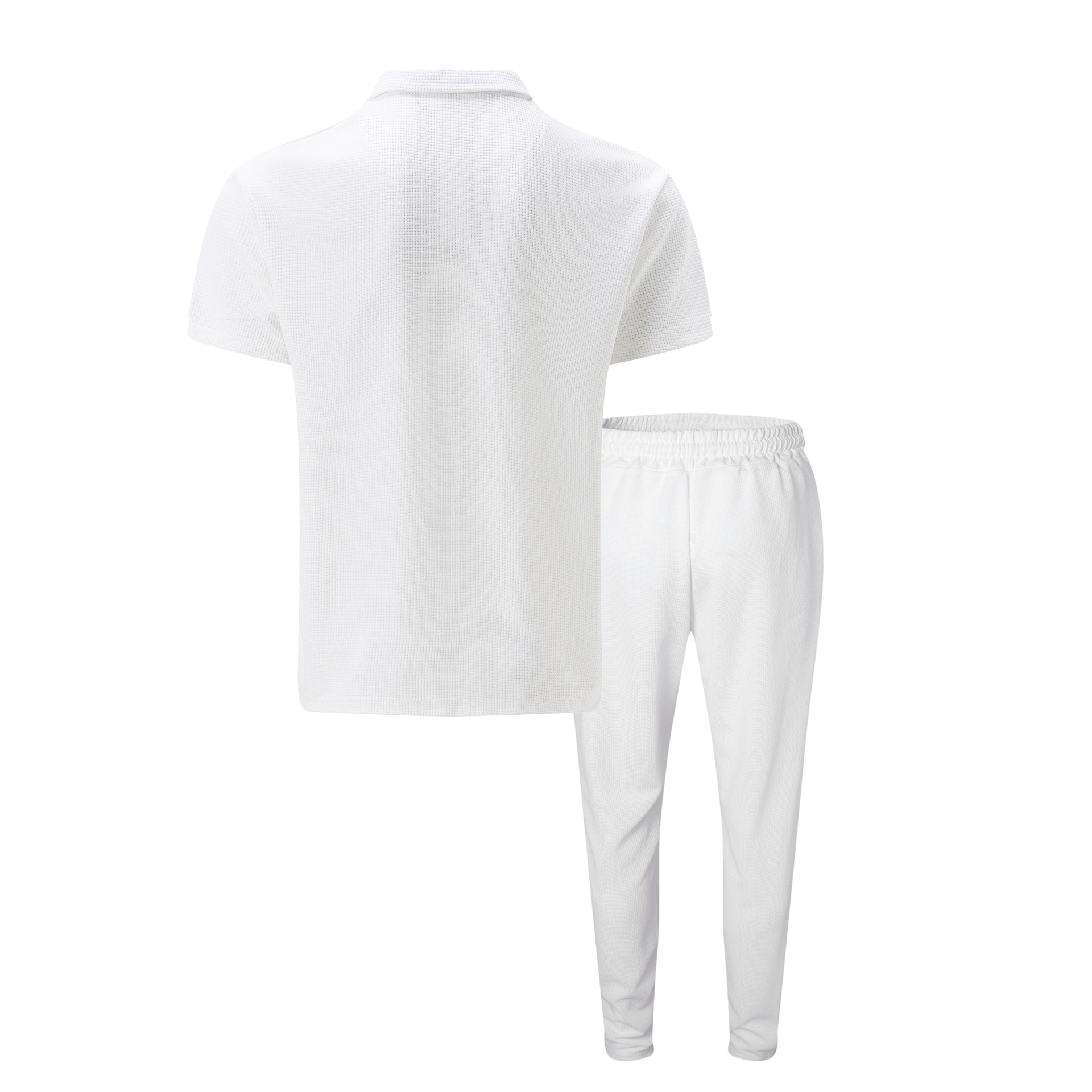 Otoño 2023 nuevo europeo y americano de comercio exterior de los hombres de color sólido traje waffle solapa manga corta cremallera pantalones traje