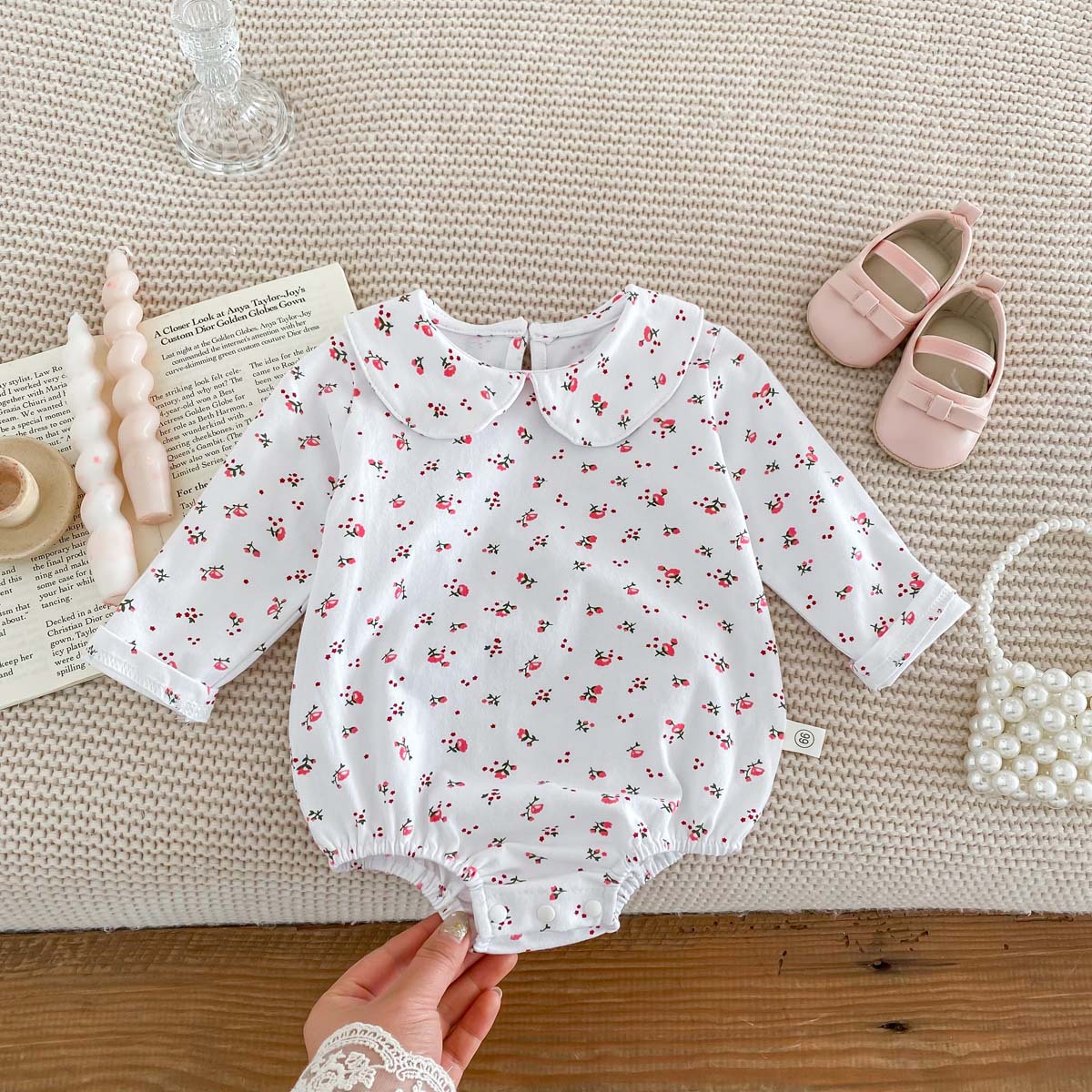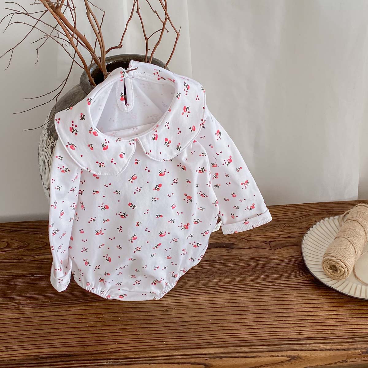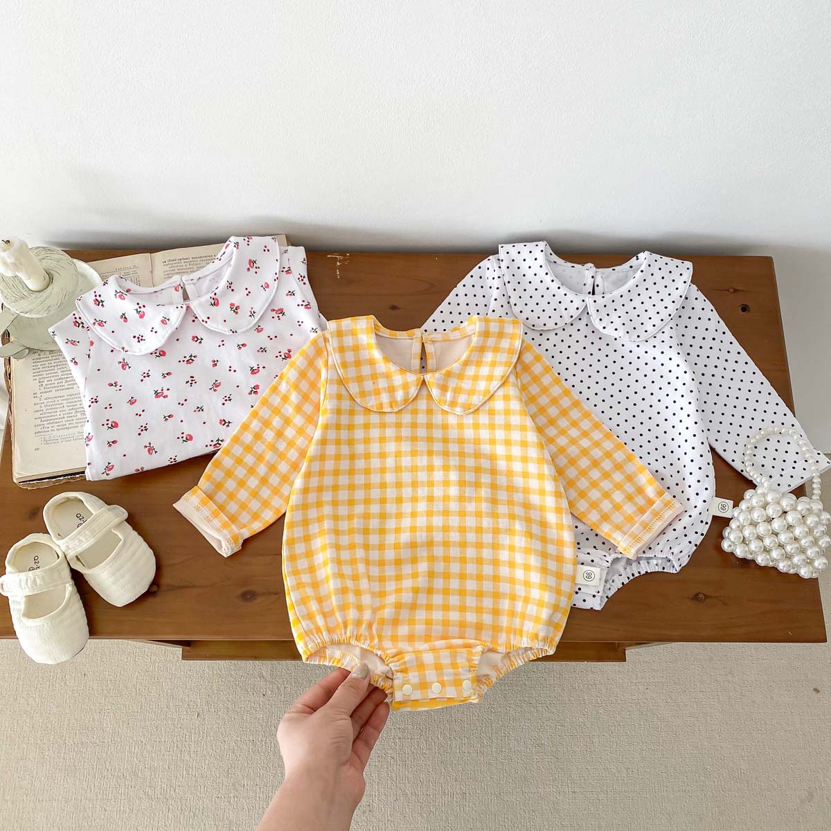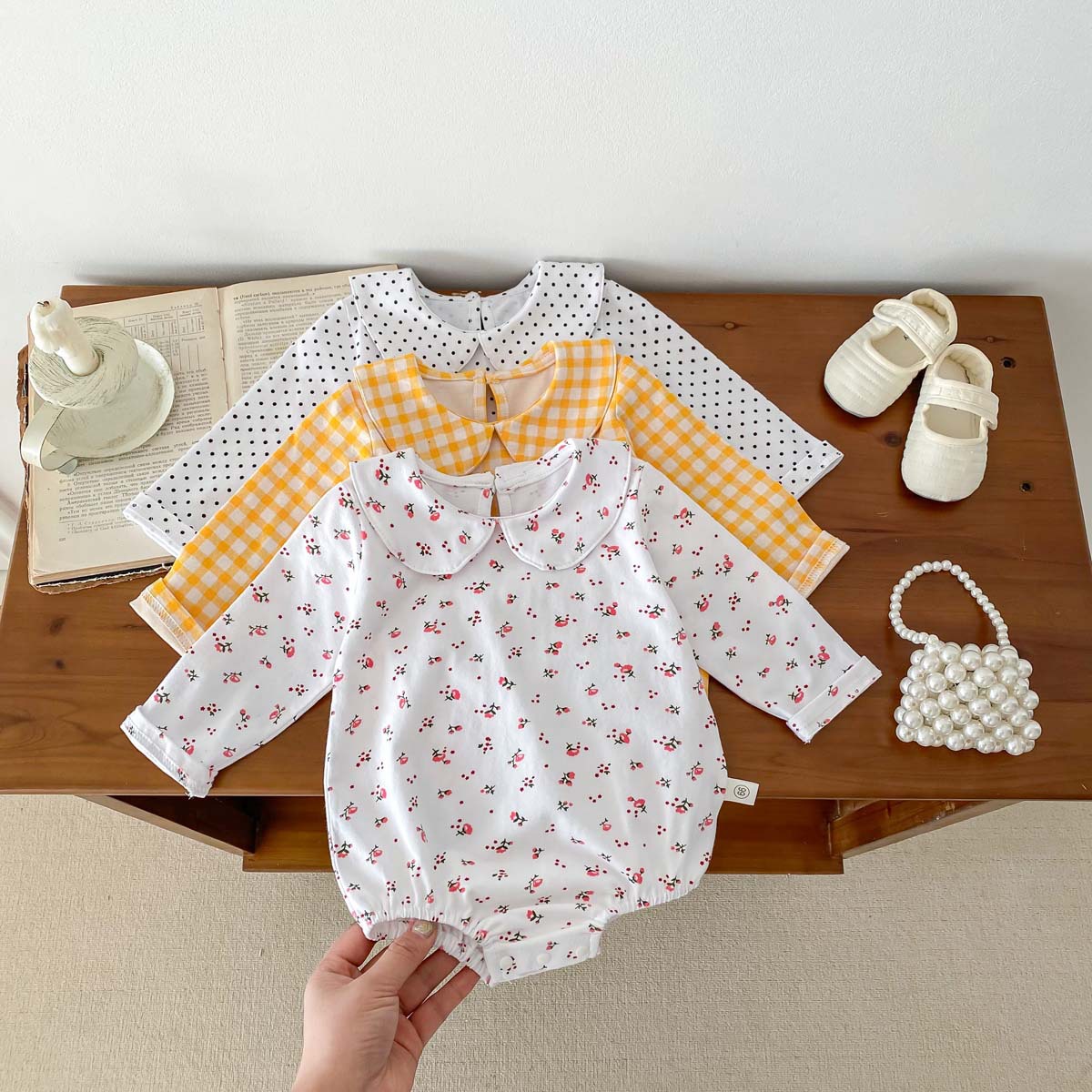 Bebé niños primavera y otoño muñeca collar triángulo bolsa pedo mameluco bebé niña manga larga tocar fondo desgaste exterior de una pieza mameluco