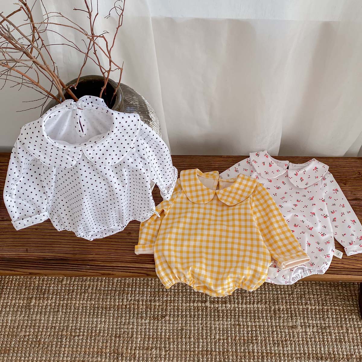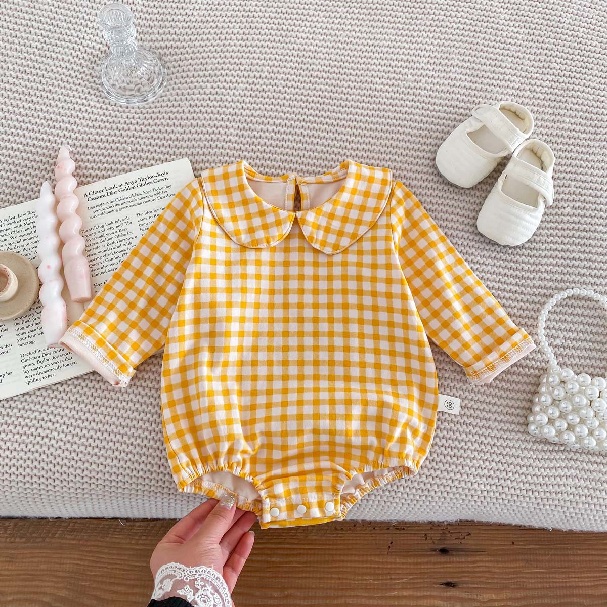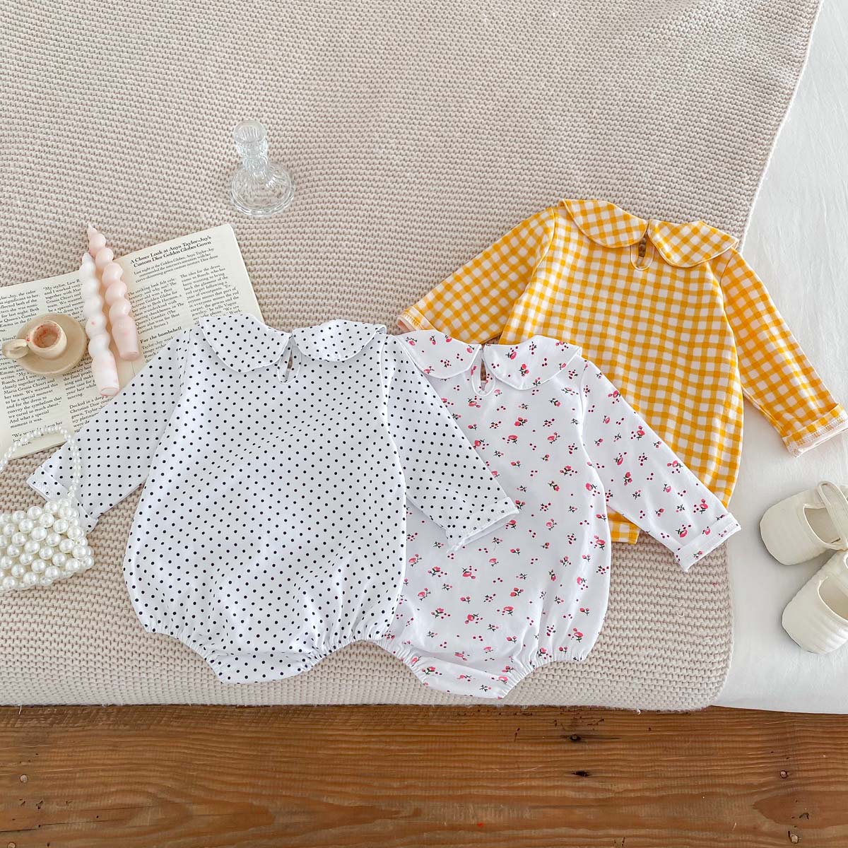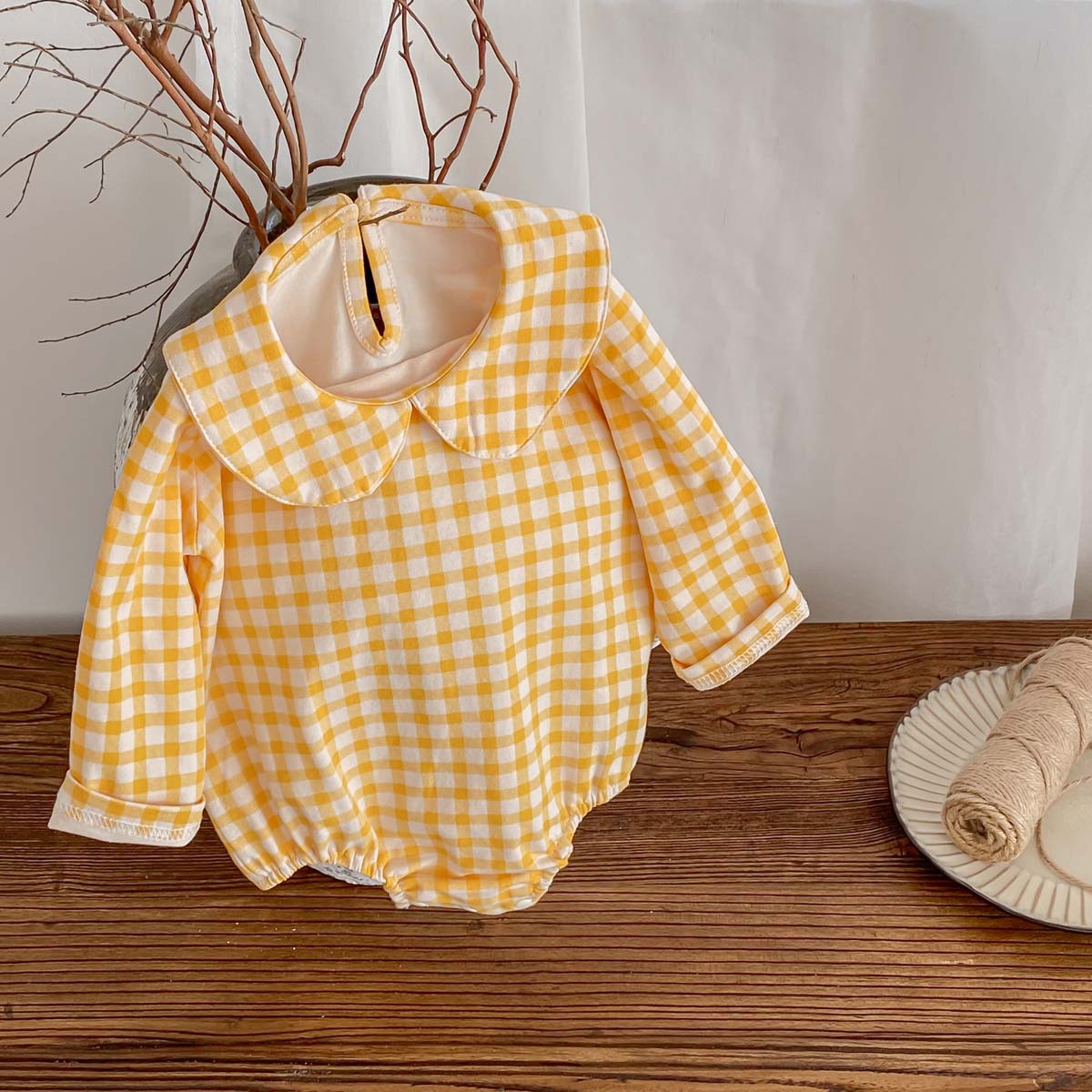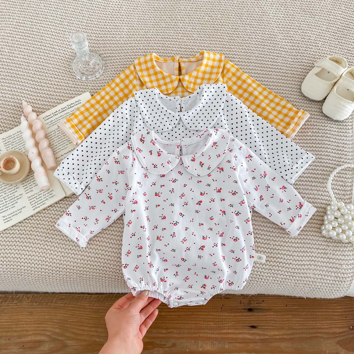Bebé niños primavera y otoño muñeca collar triángulo bolsa pedo mameluco bebé niña manga larga tocar fondo desgaste exterior de una pieza mameluco