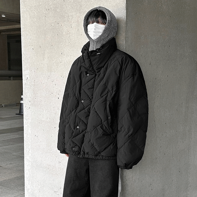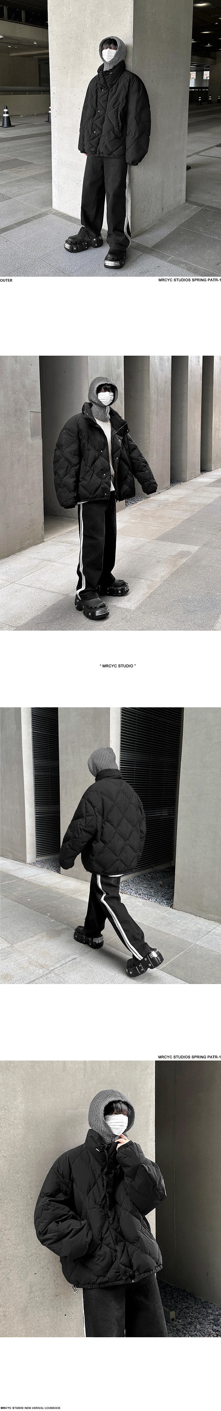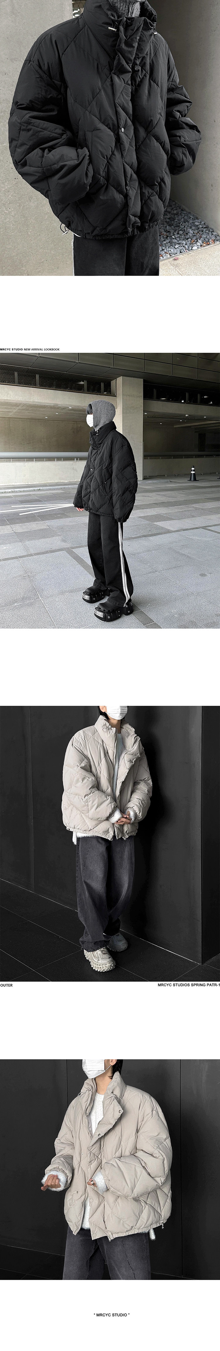 MYQ rombo de alto grado collar de pie de algodón acolchado de los hombres de invierno engrosada capa de estilo coreano nicho flojo diseño de algodón acolchado abrigo