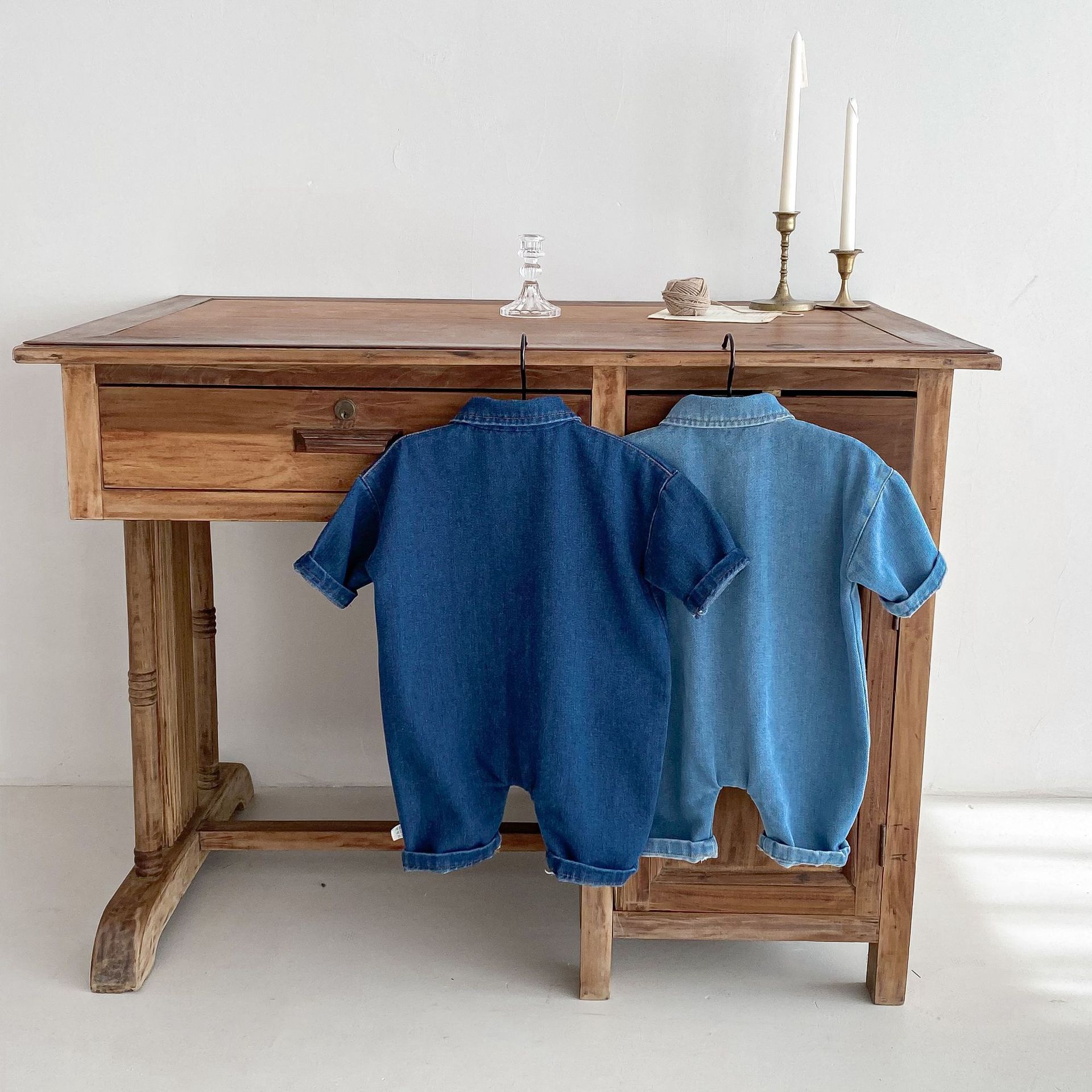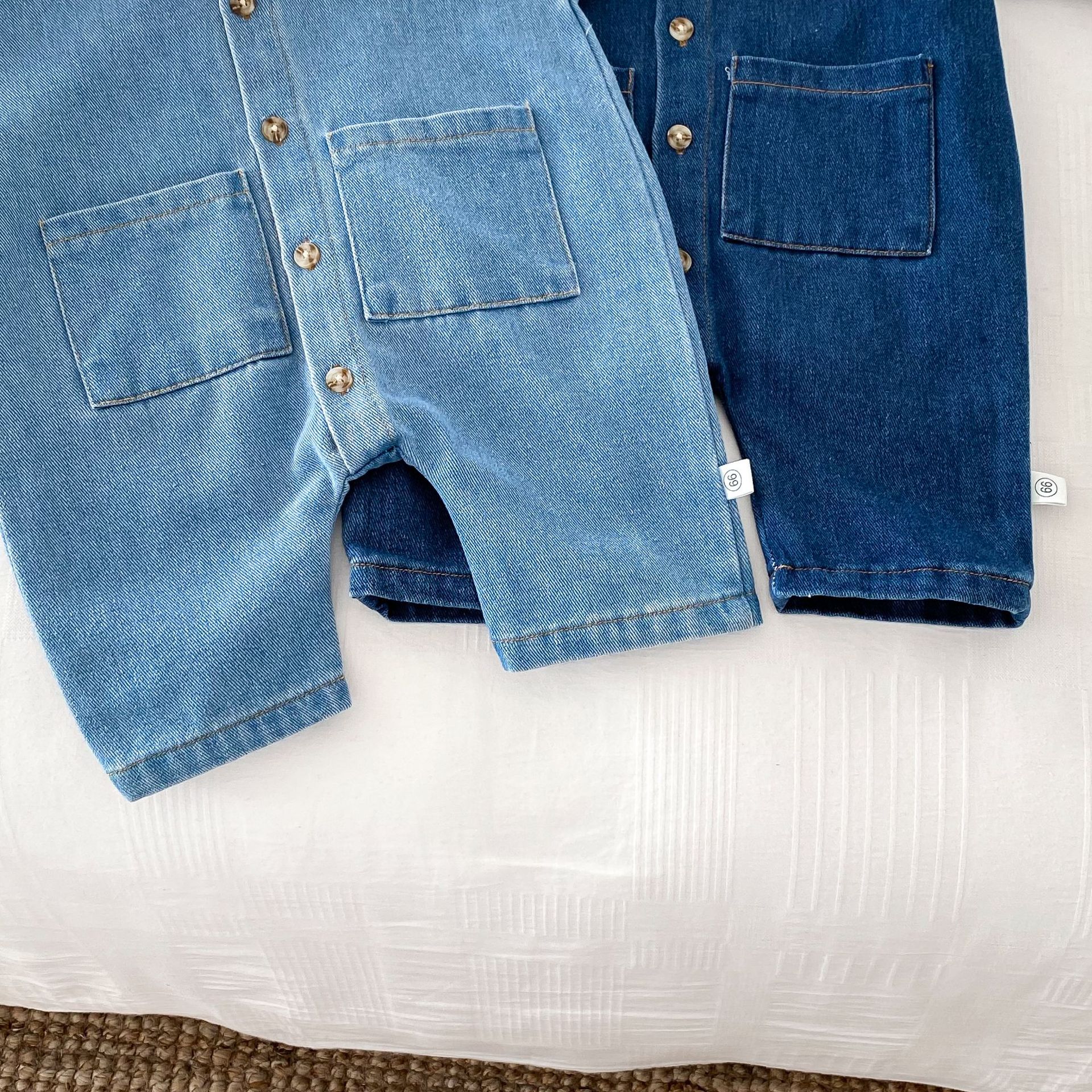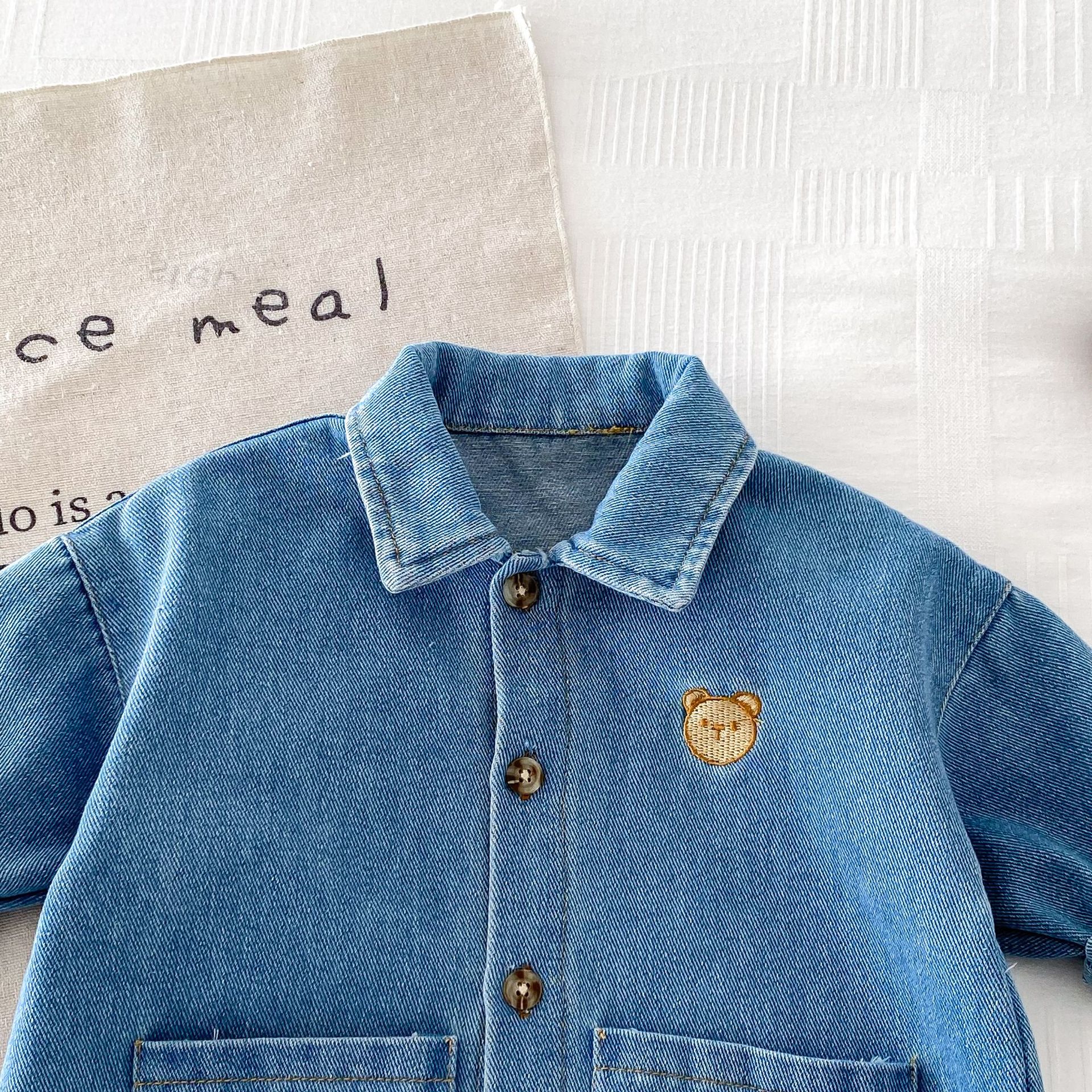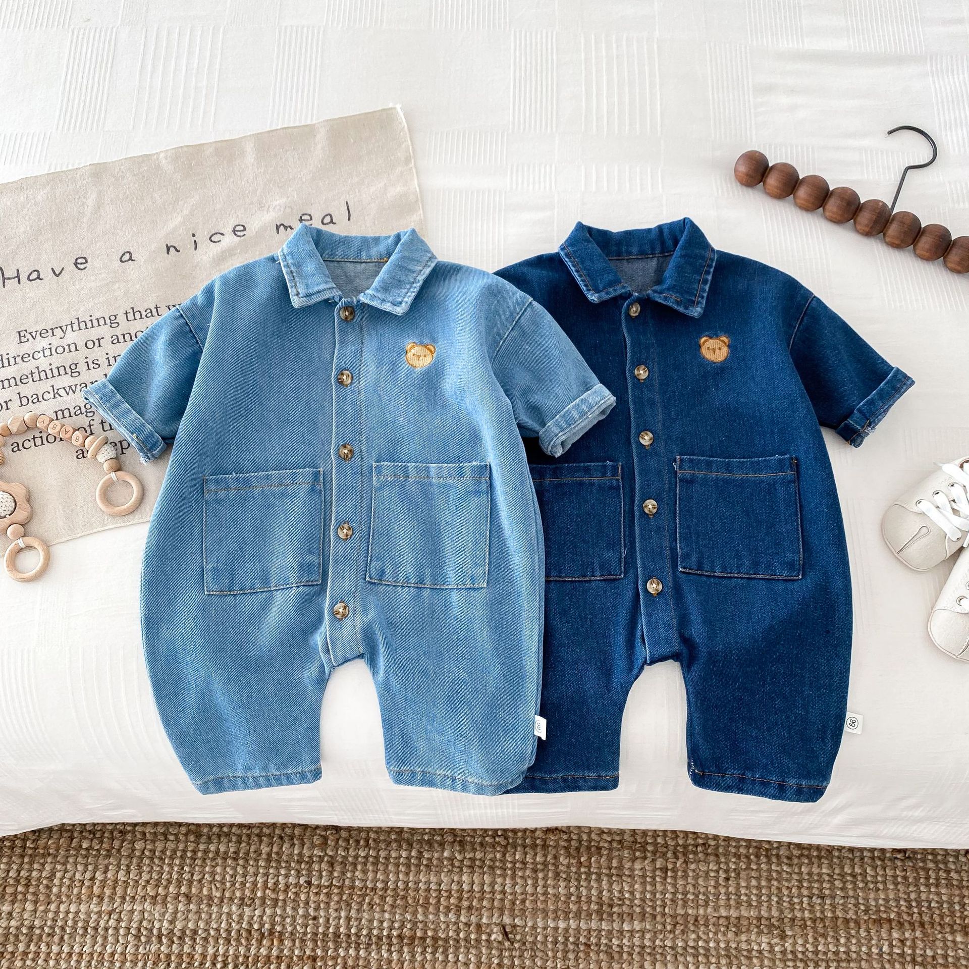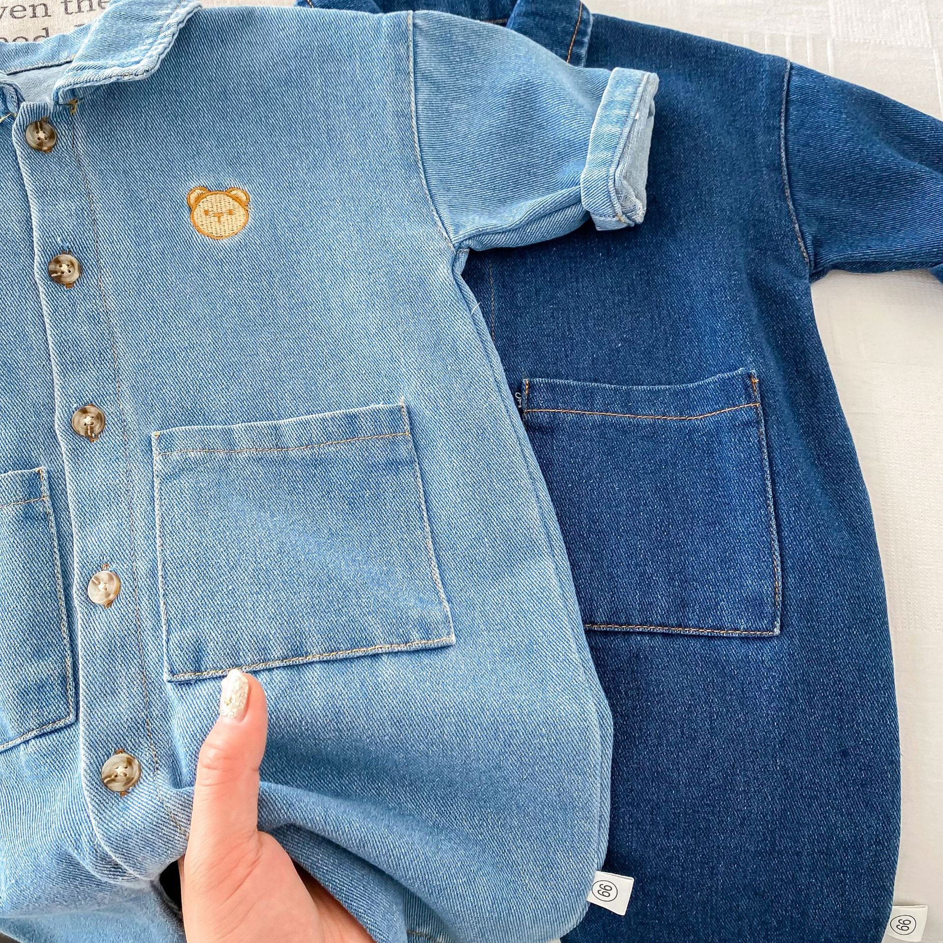 Ropa de vaina de bebé 0-1 años de edad bebé suave Denim Correa primavera y otoño temporada niños y niñas bebé oso ropa mono