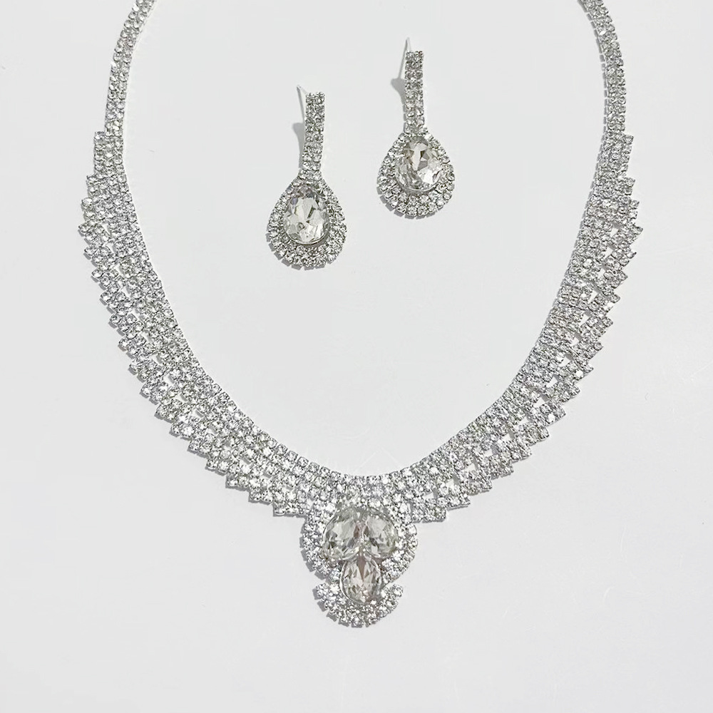 Lujo estilo coreano todo fósforo circón joyería nupcial accesorios de la boda vestido de boda pendientes collar traje accesorios de banquete