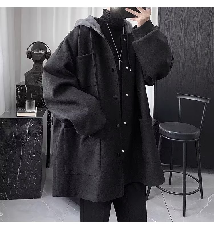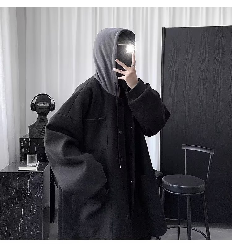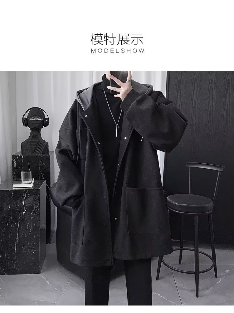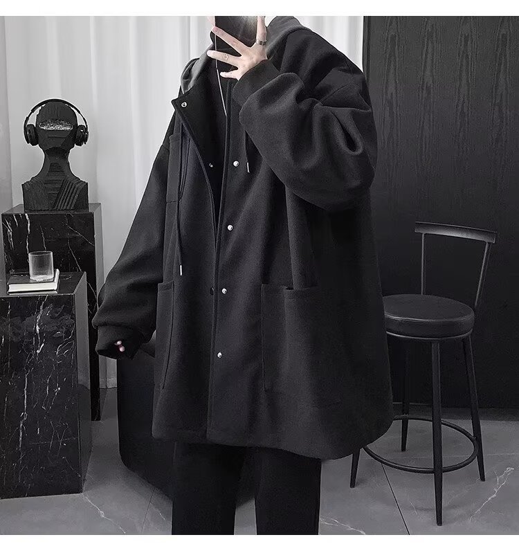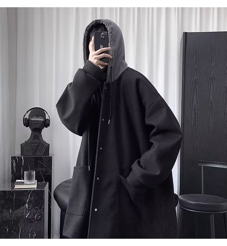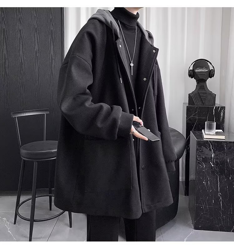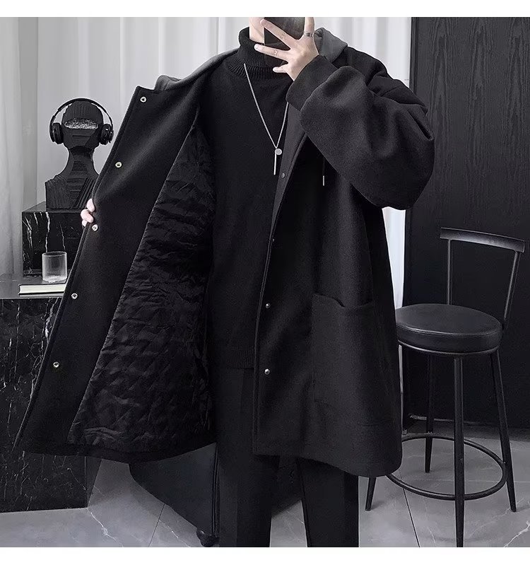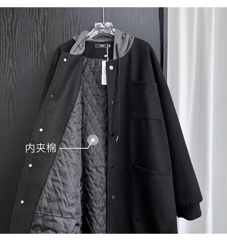 Abrigo de lana de dos piezas falso abrigo de lana de invierno para hombre de longitud media sobre la rodilla abrigo de lana estilo británico algodón y engrosamiento Abrigo con capucha