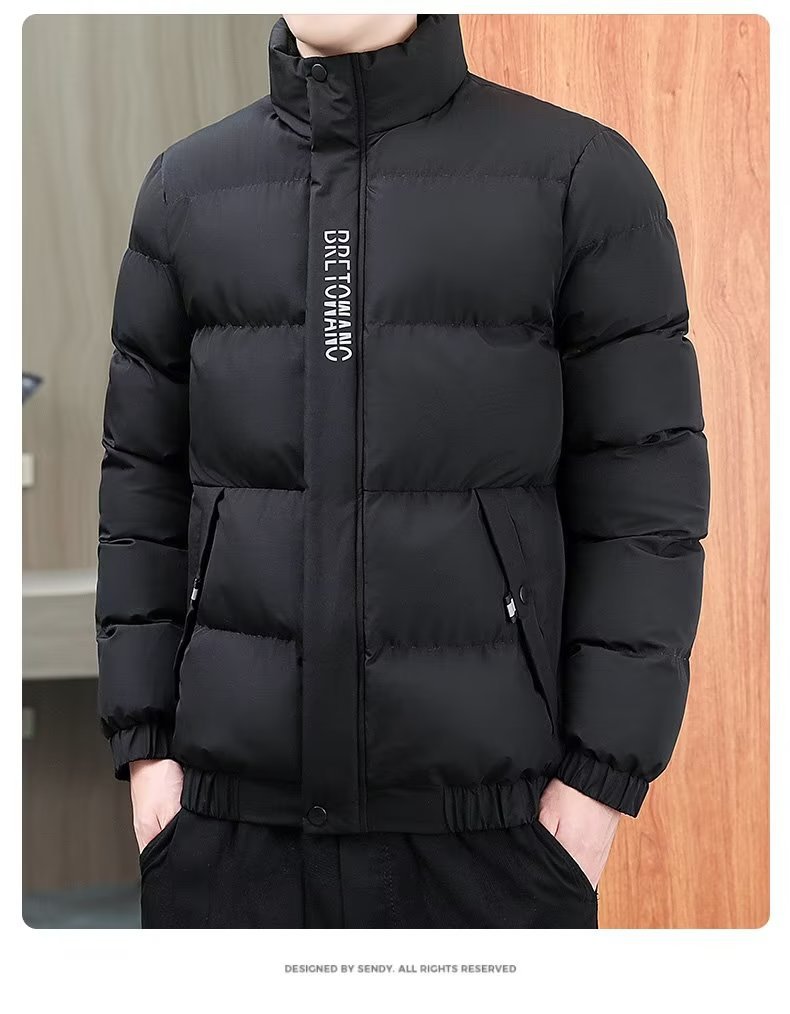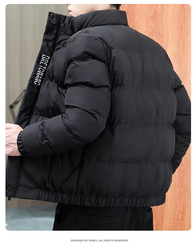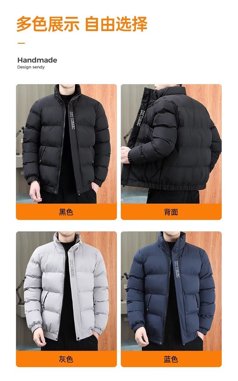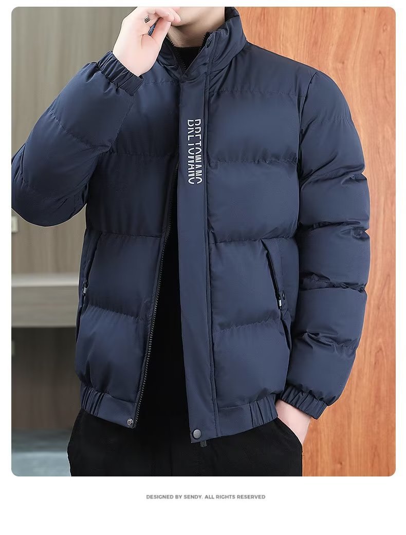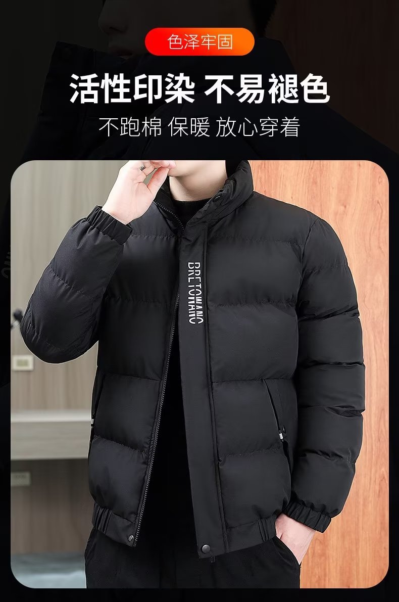 Chaqueta acolchada de algodón para hombre Otoño e Invierno forrada de lana engrosada a prueba de viento caliente resistente al frío Moda carta bordada collar de pie más tamaño ropa casual