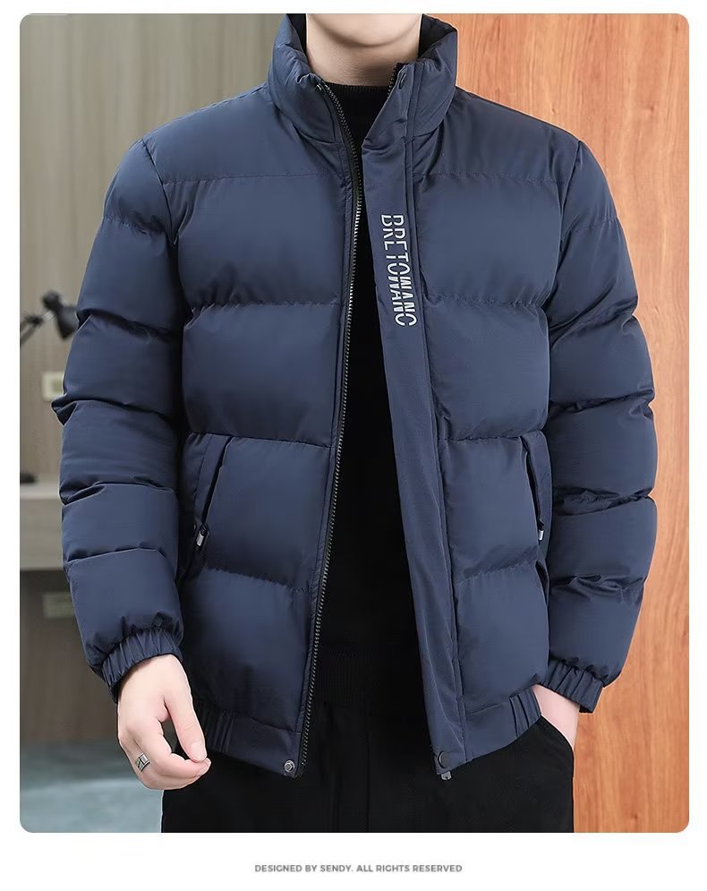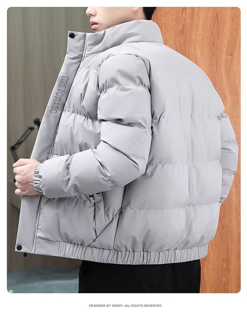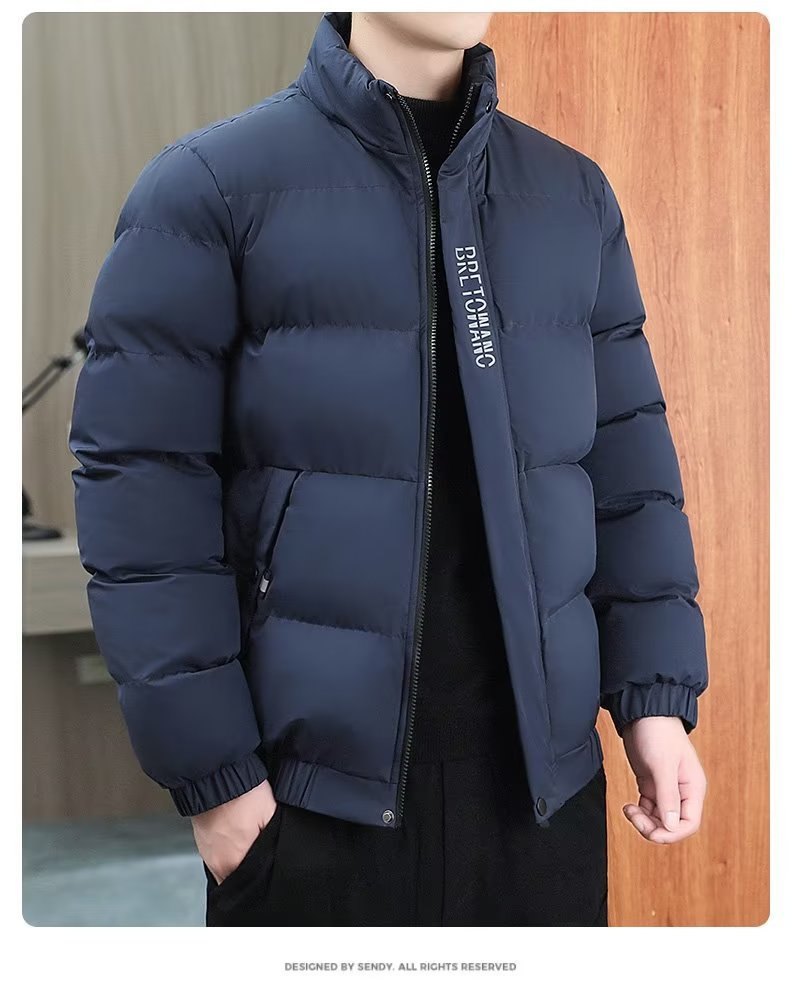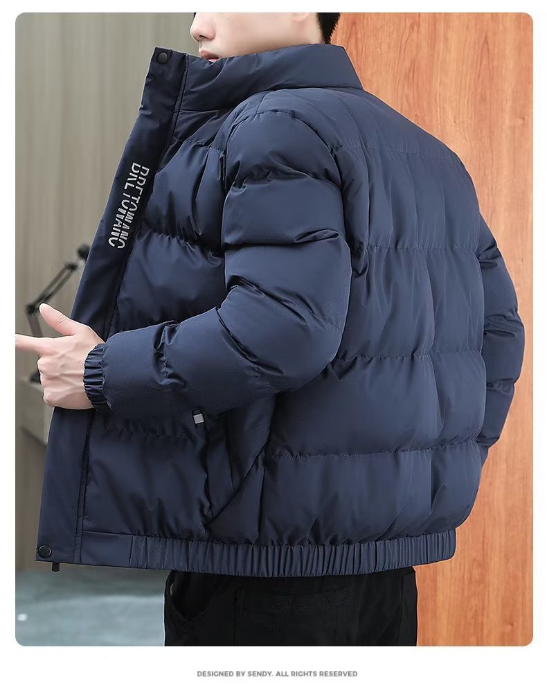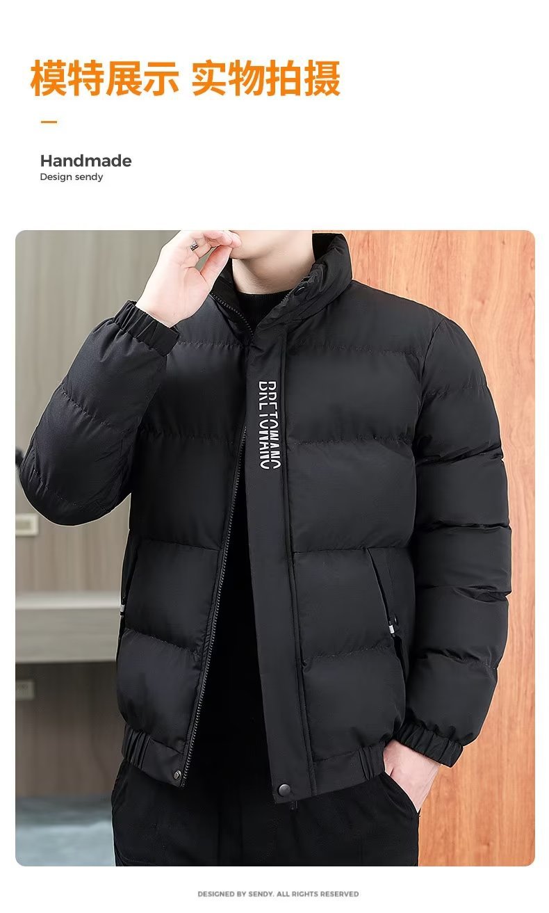 Chaqueta acolchada de algodón para hombre Otoño e Invierno forrada de lana engrosada a prueba de viento caliente resistente al frío Moda carta bordada collar de pie más tamaño ropa casual
