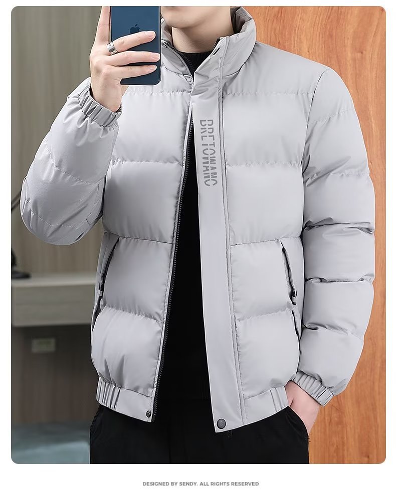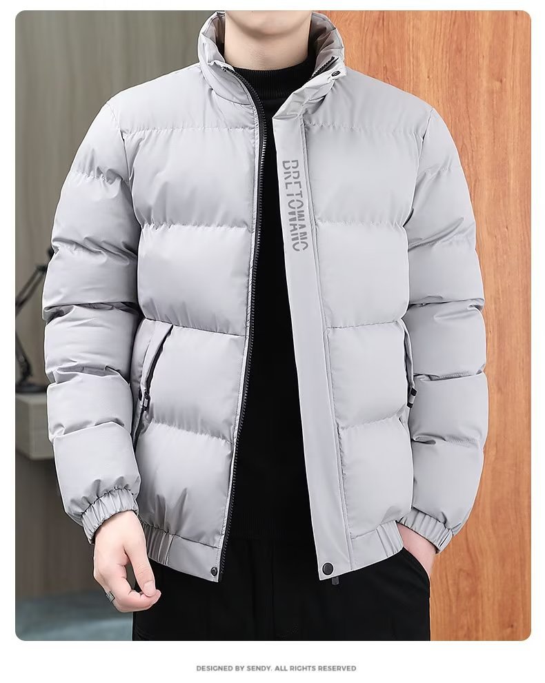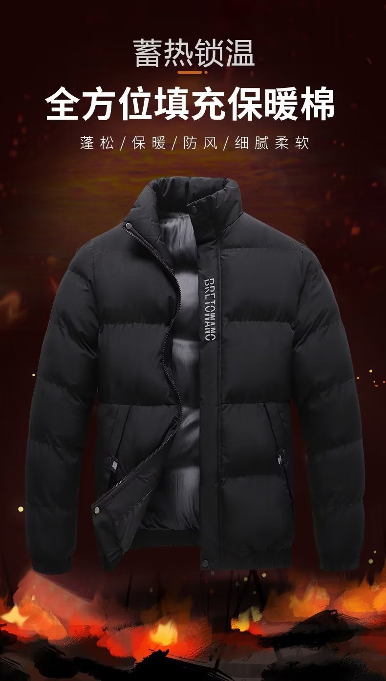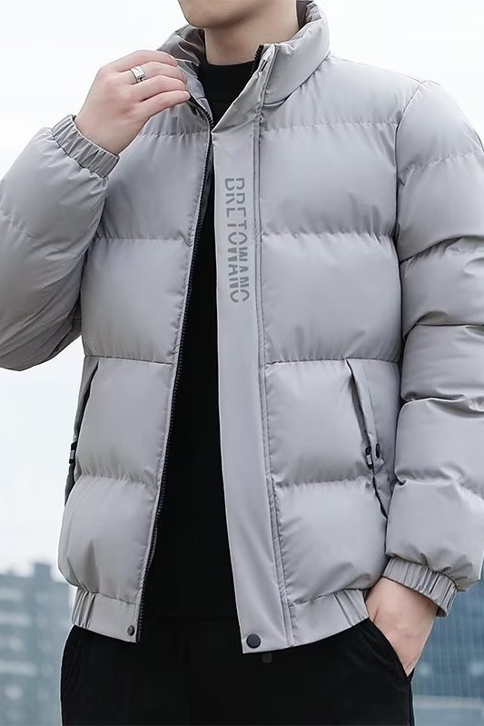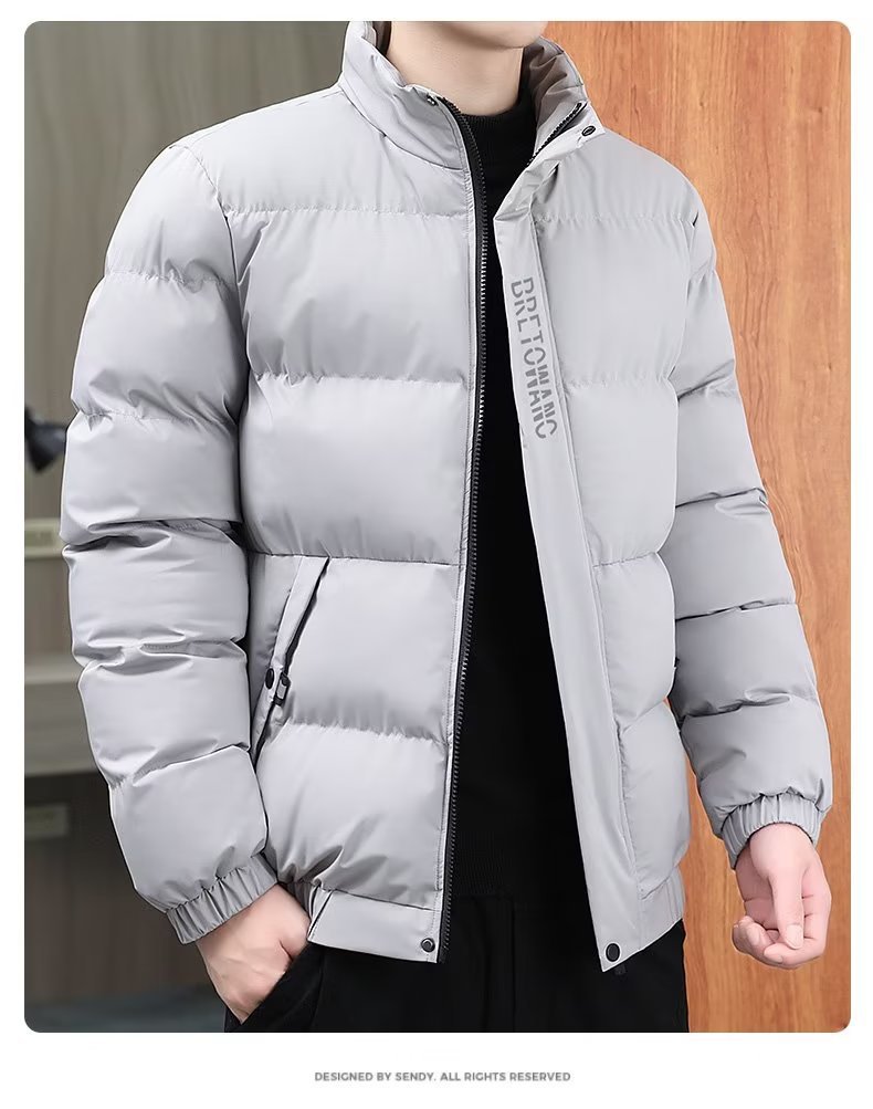 Chaqueta acolchada de algodón para hombre Otoño e Invierno forrada de lana engrosada a prueba de viento caliente resistente al frío Moda carta bordada collar de pie más tamaño ropa casual