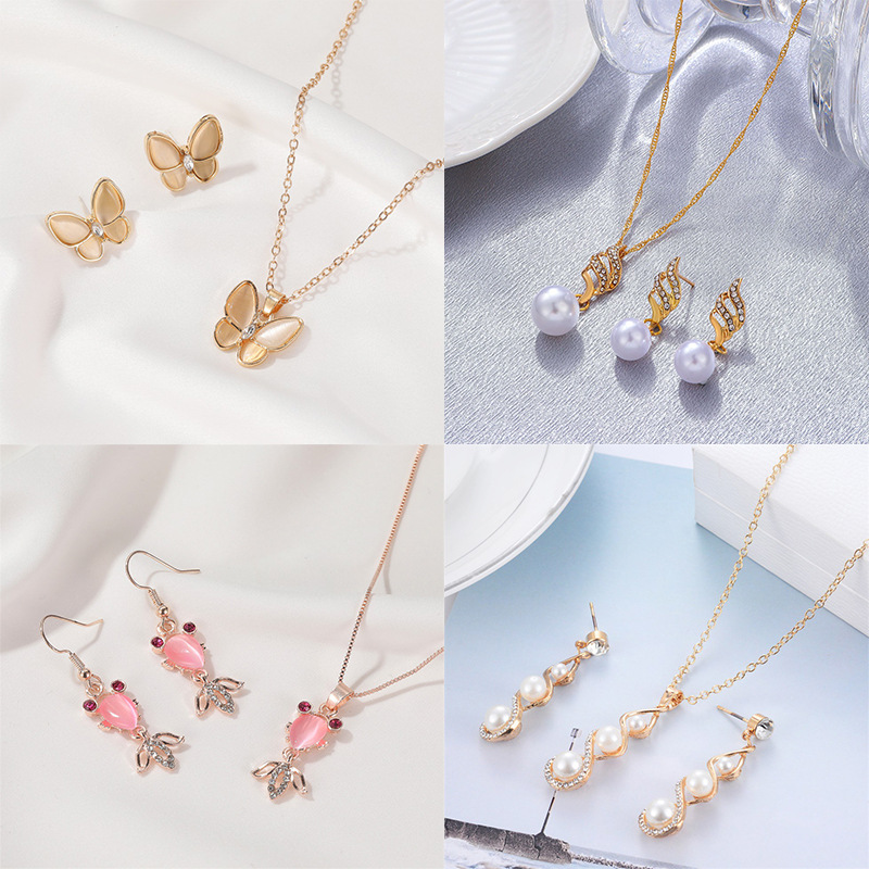 Traje de joyería de perlas de diamantes de Venta caliente transfronteriza temperamento de moda de mujer flor geométrica gota de agua collar pendientes traje