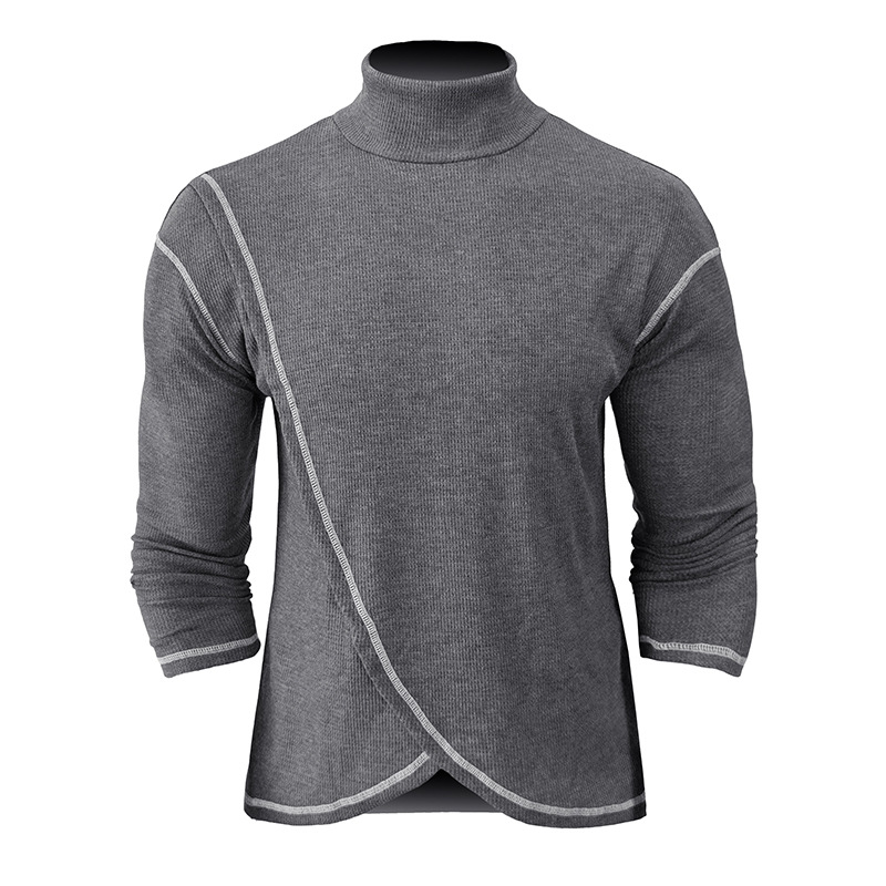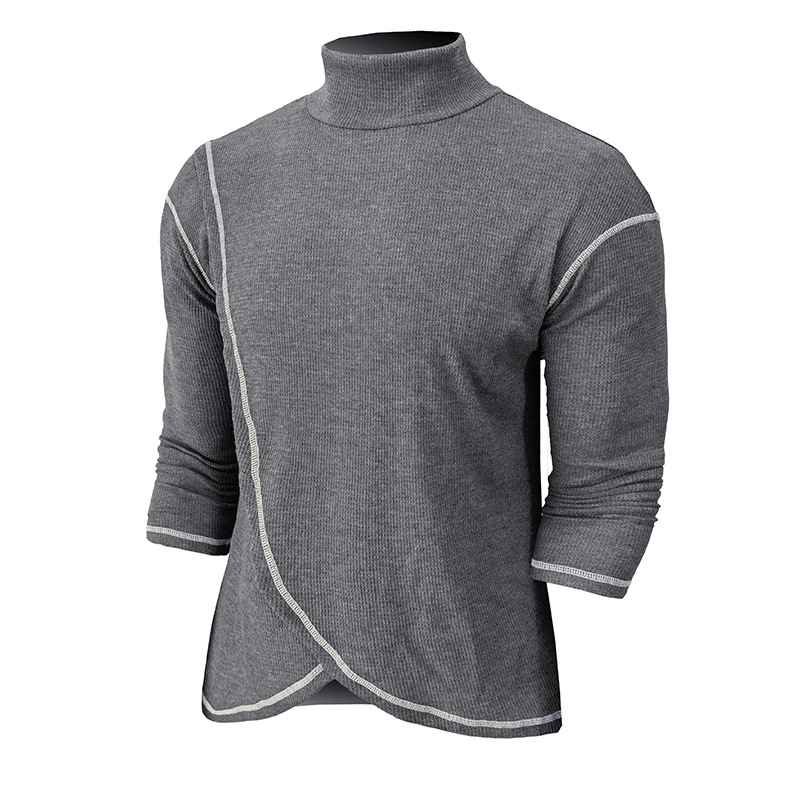El Comercio exterior transfronterizo Otoño e Invierno de los hombres Nuevos hombres europeos y americanos de cuello alto de manga larga Camiseta waffle bottoming camisa Drop-shoulder top