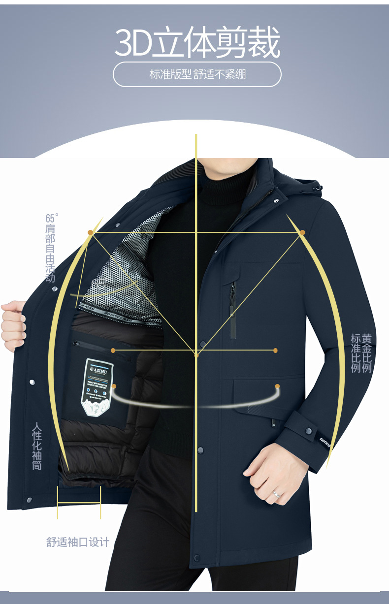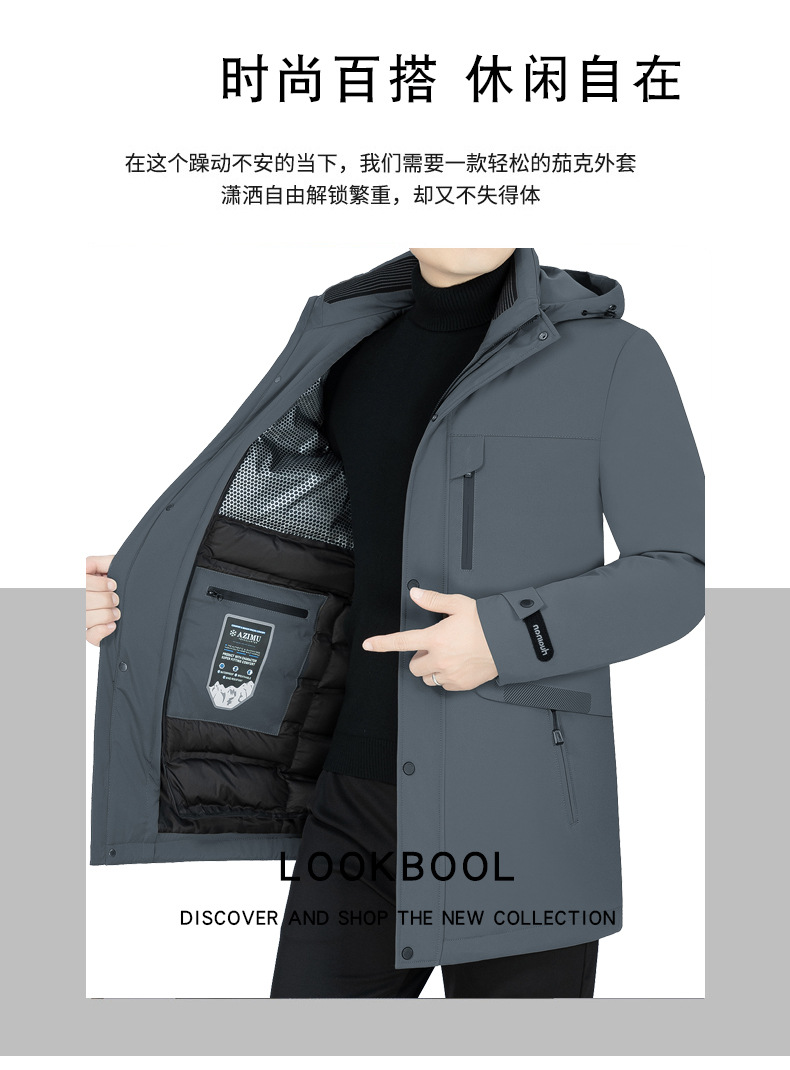 2024 chaqueta de plumón de ganso blanco de invierno gruesa y cálida chaqueta de longitud media con forro extraíble informal para hombres de mediana edad