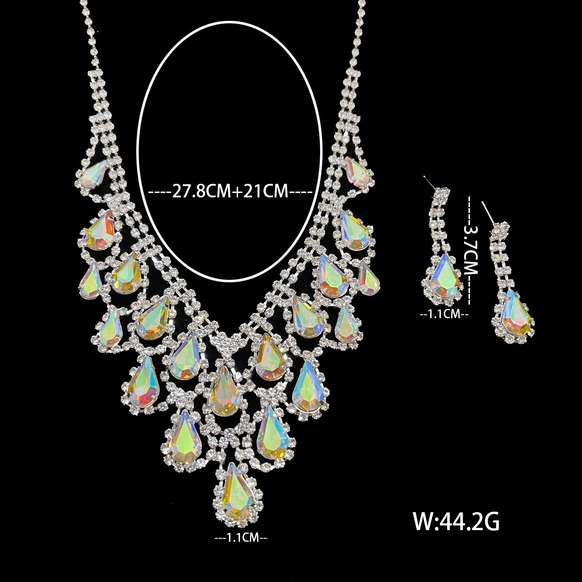 Venta al por mayor de moda cristal diamante collar pendientes de dos piezas vestido de noche accesorios noche fiesta joyería nupcial joyería femenina