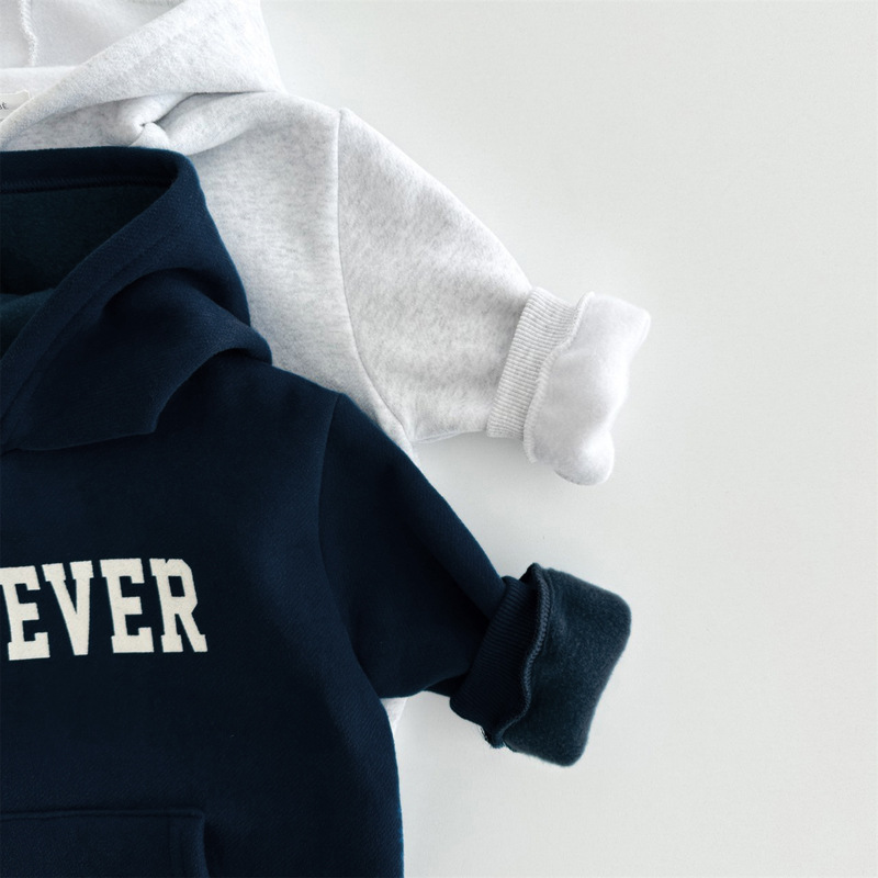 Estilo coreano ins moda invierno nuevo padre-niño desgaste casual carta suelta gran bolsillo de lana suéter con capucha familia desgaste