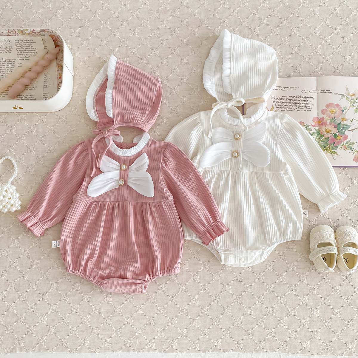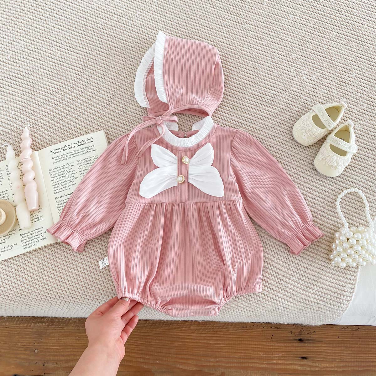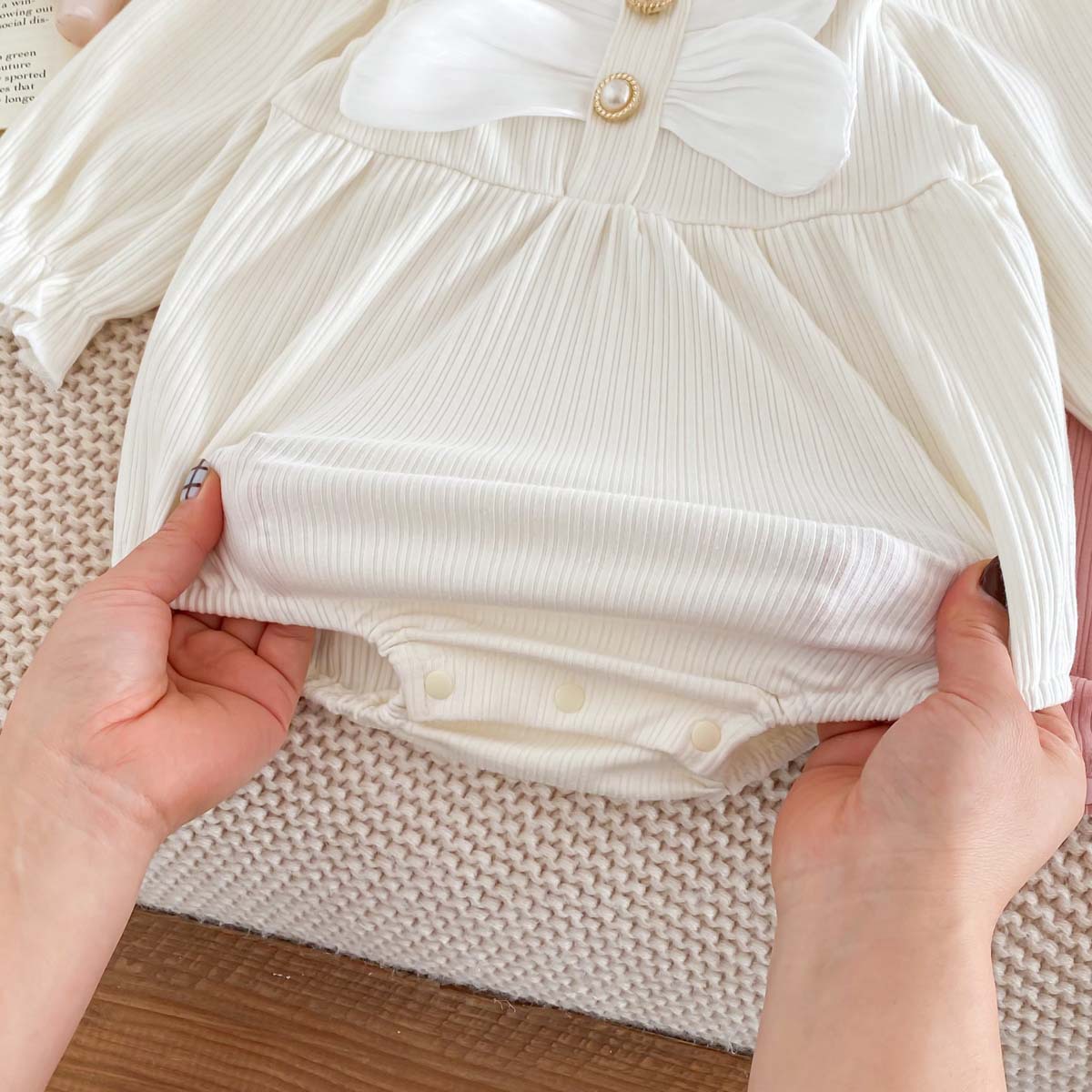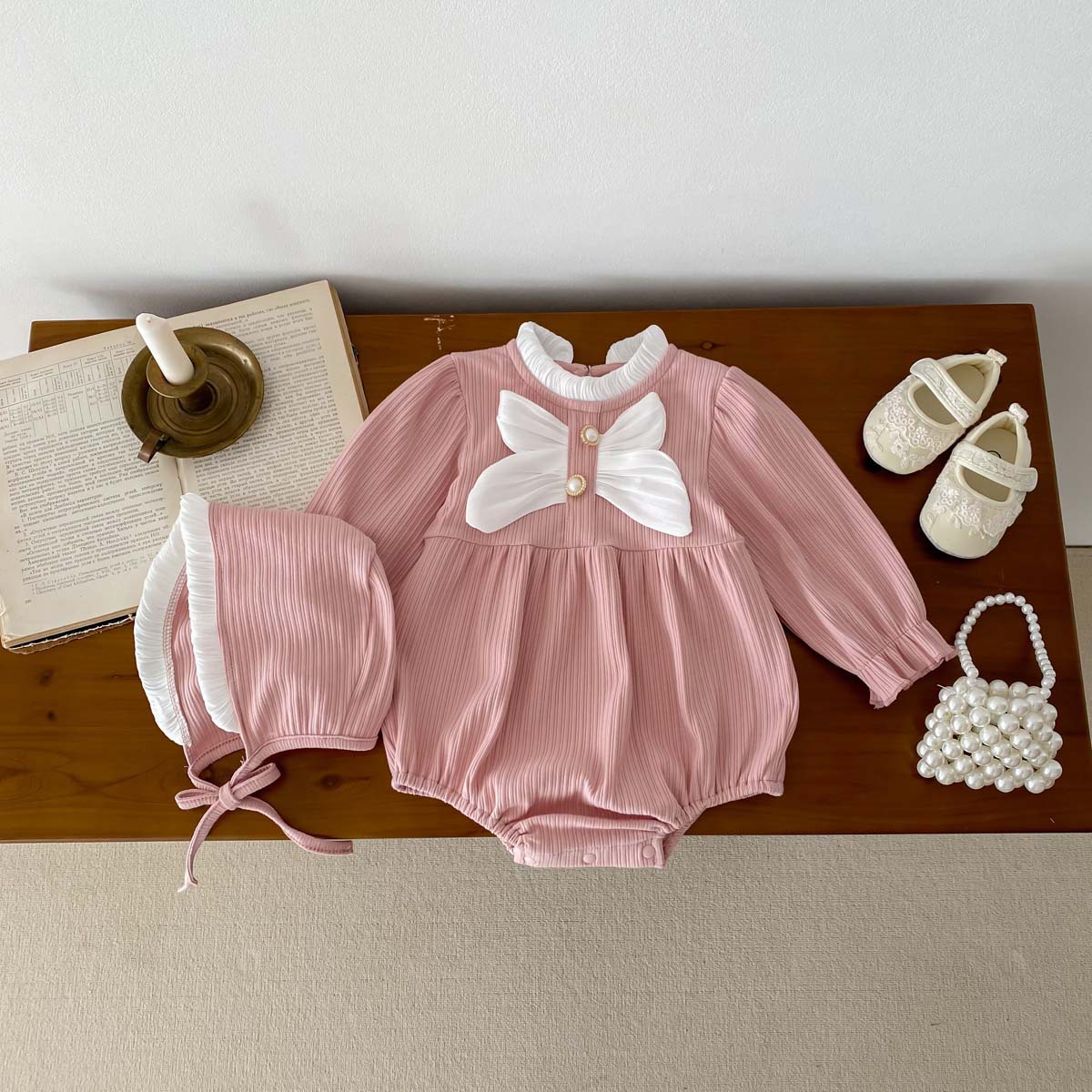 Bebé primavera y otoño vaina niña dulce arco de manga larga mono recién nacido cien días princesa ropa
