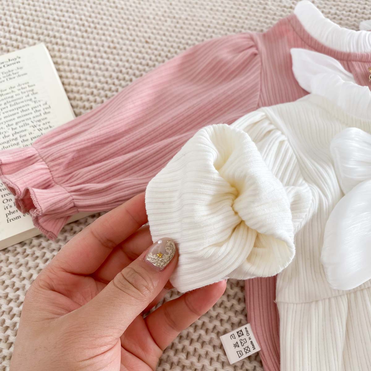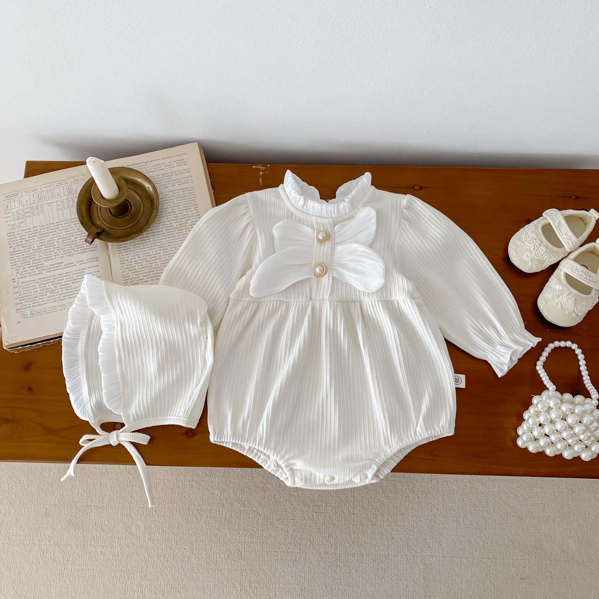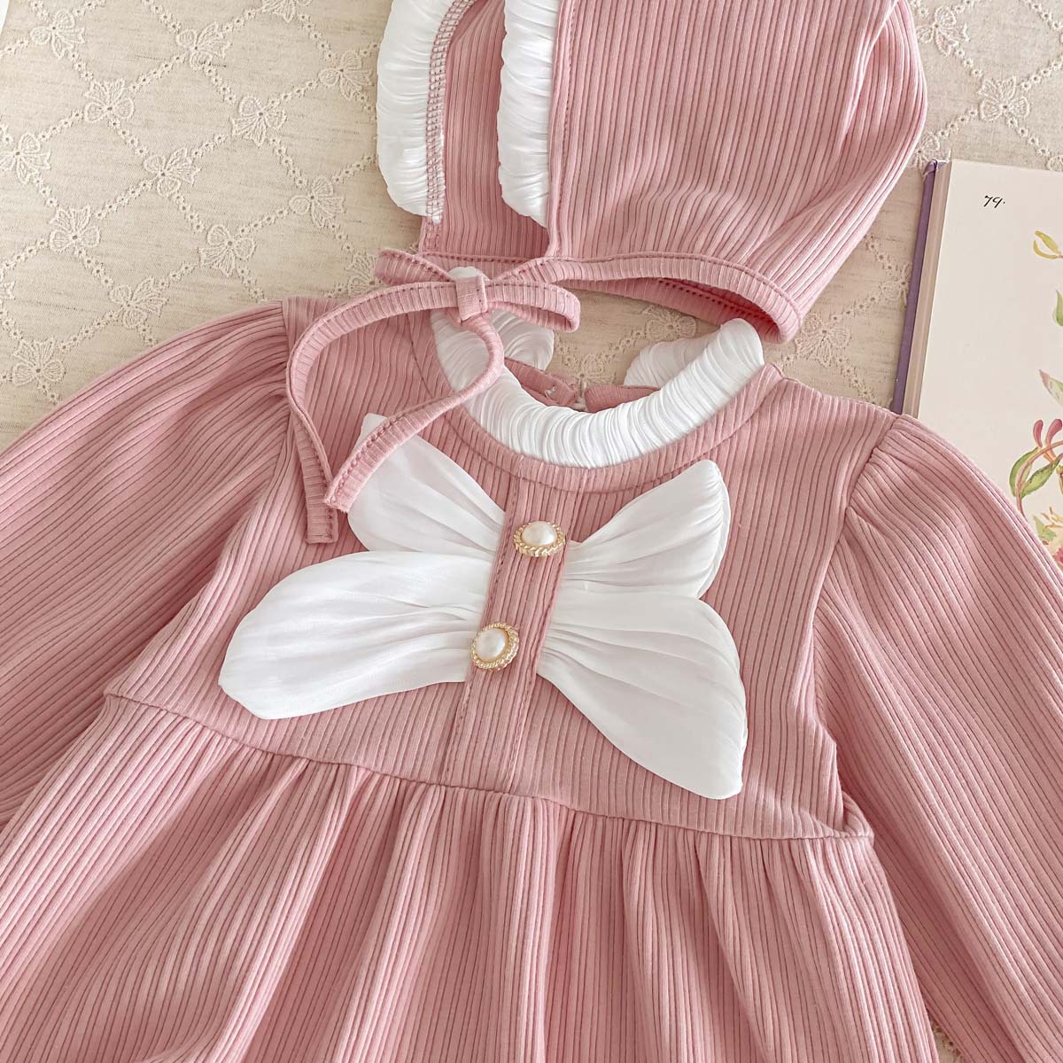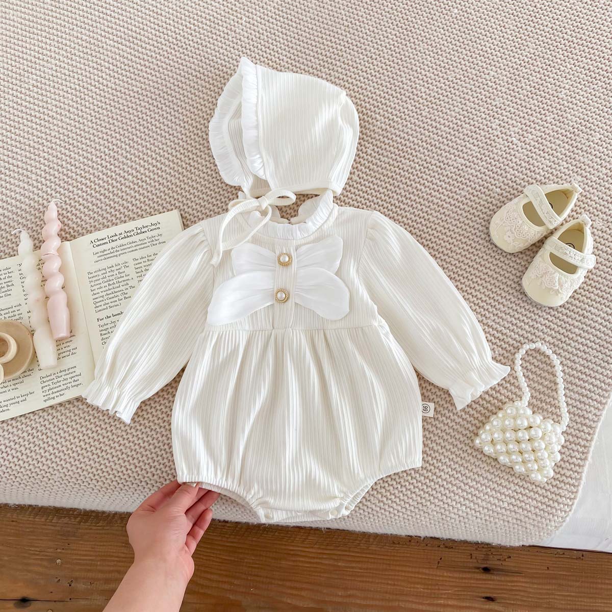 Bebé primavera y otoño vaina niña dulce arco de manga larga mono recién nacido cien días princesa ropa