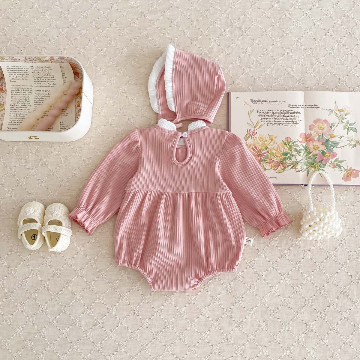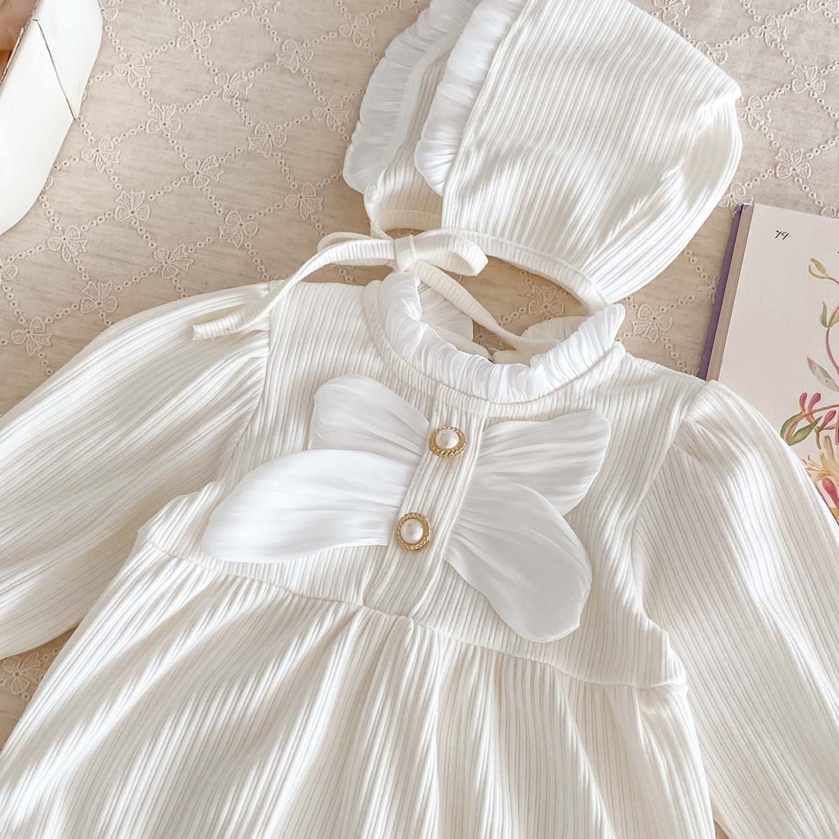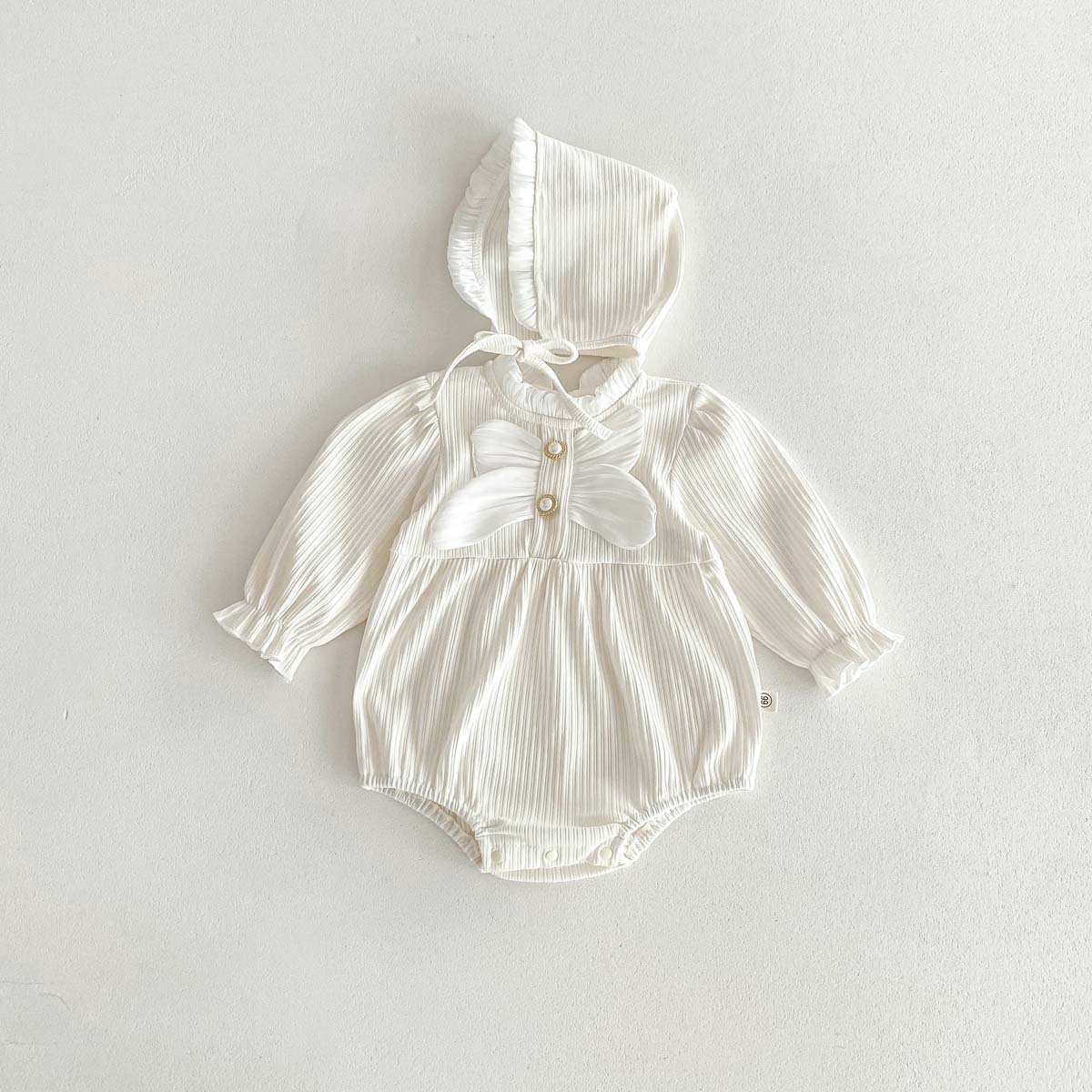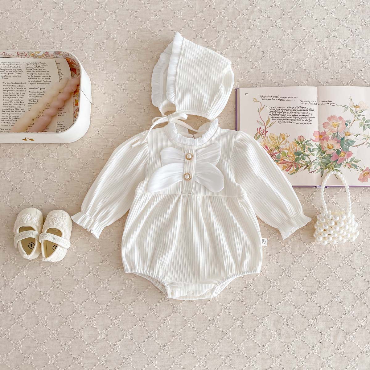 Bebé primavera y otoño vaina niña dulce arco de manga larga mono recién nacido cien días princesa ropa