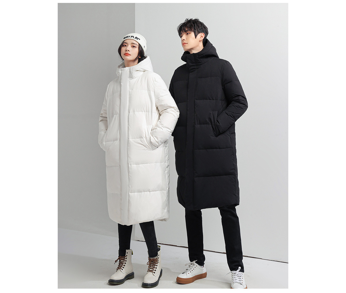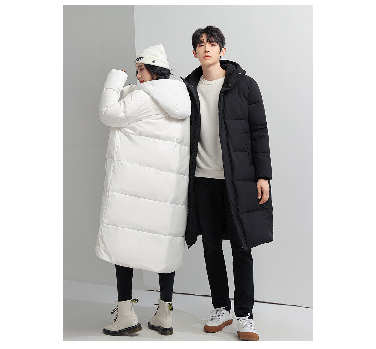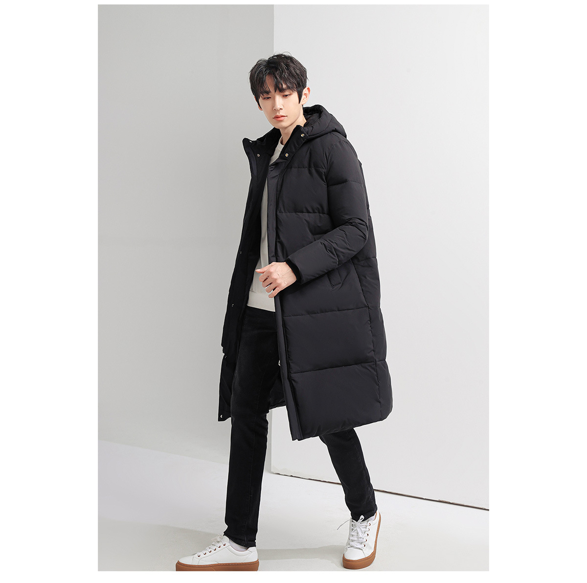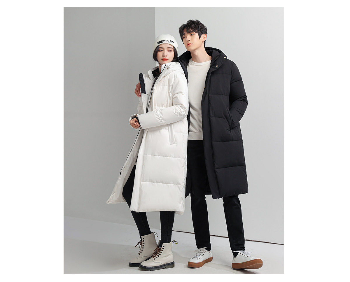 Chaqueta de los hombres abajo largo sobre la rodilla nueva pareja desgaste invierno a prueba de frío blanco cálido pato abajo [inspección de calidad]