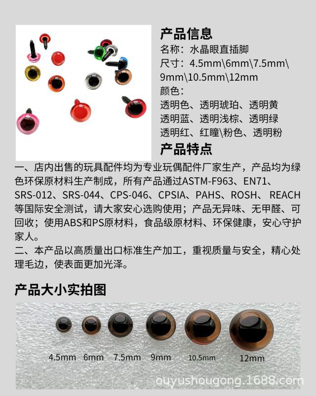 Ojo de cristal transparente Ojo de pie recto poke fieltro de lana Twist stick DIY accesorios de muñeca hechos a mano
