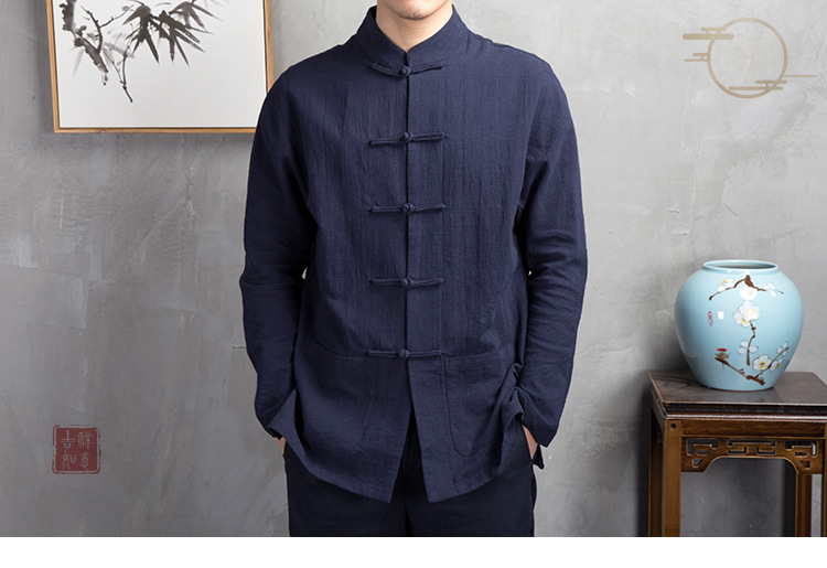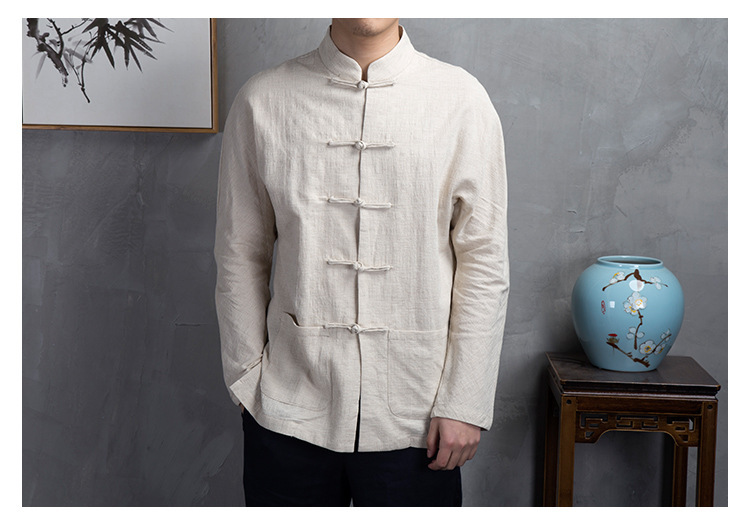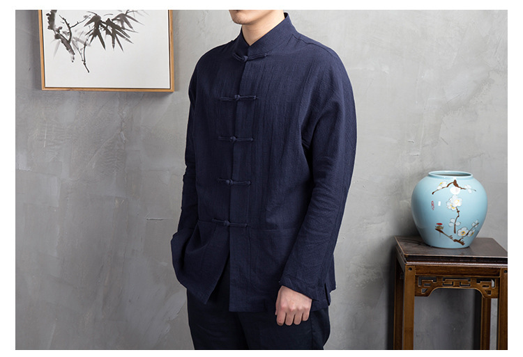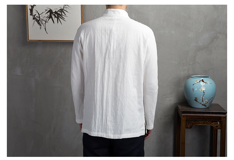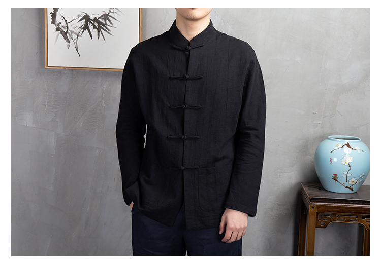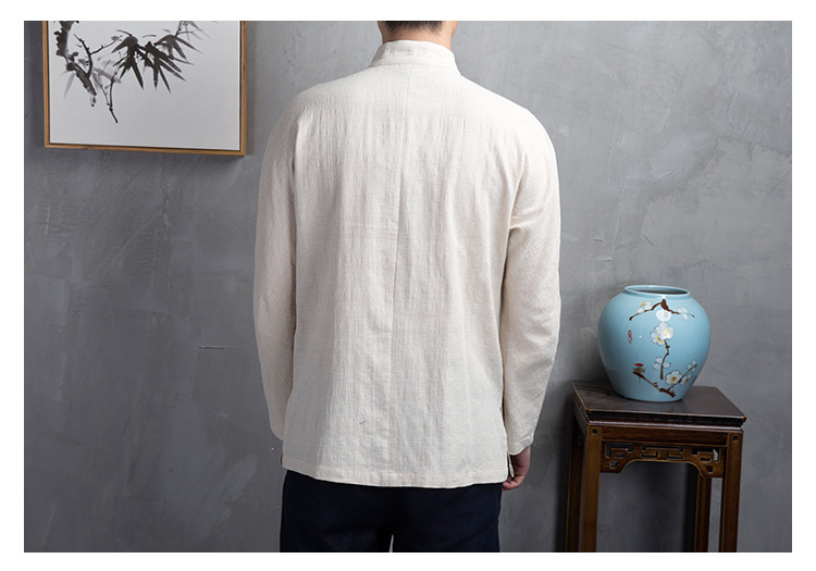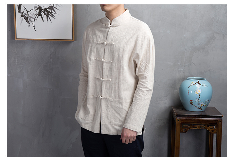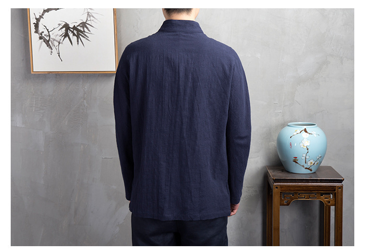 Otoño estilo chino hebilla camisa de lino hombres sueltos Camisa de algodón y lino camisa de manga larga de estilo retro de los hombres chinos