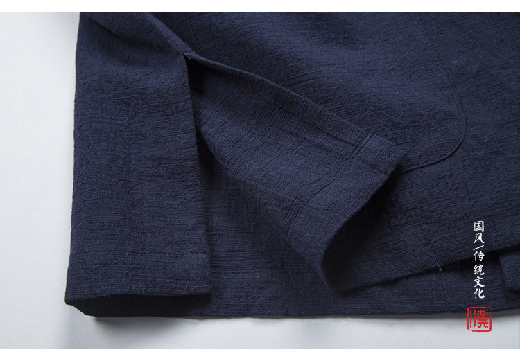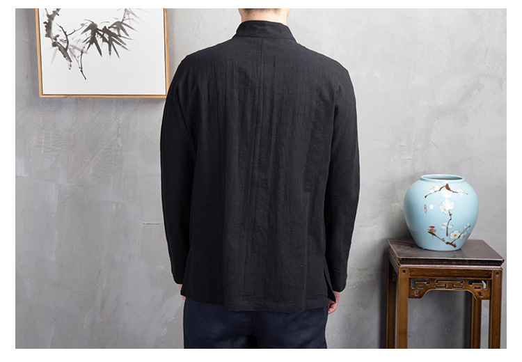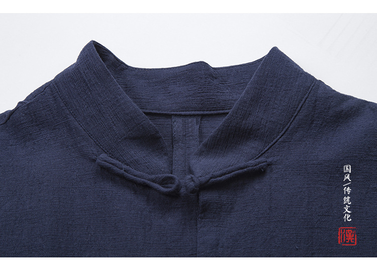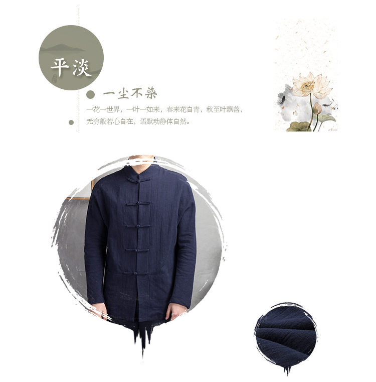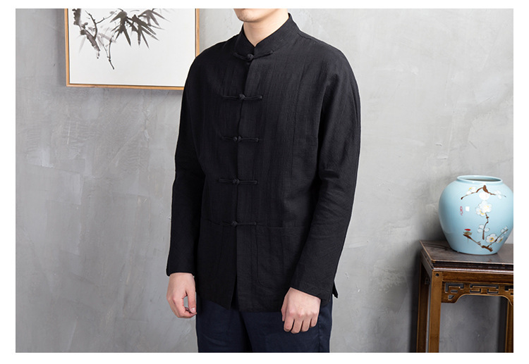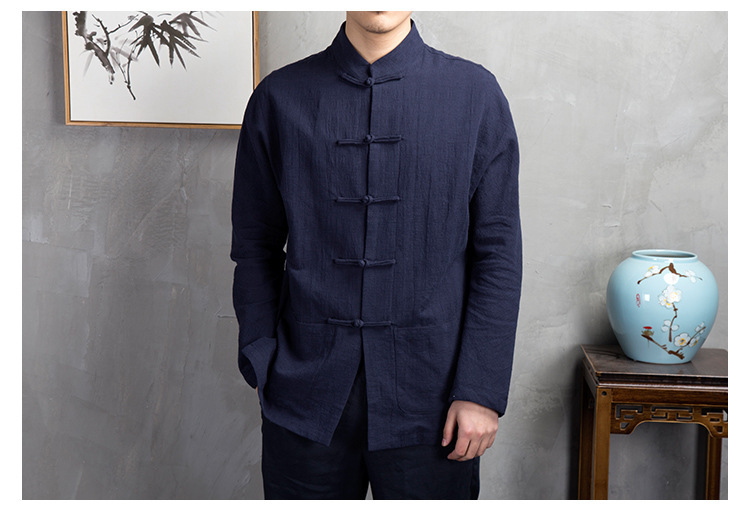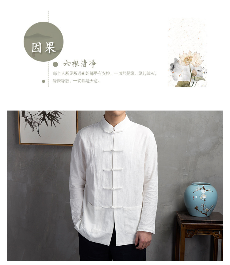 Otoño estilo chino hebilla camisa de lino hombres sueltos Camisa de algodón y lino camisa de manga larga de estilo retro de los hombres chinos