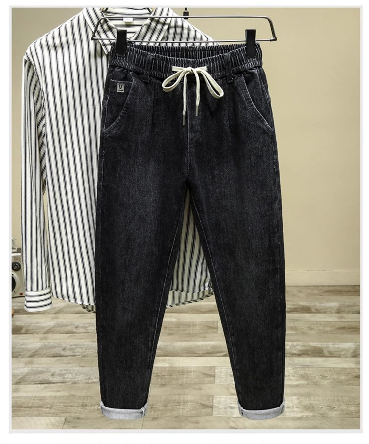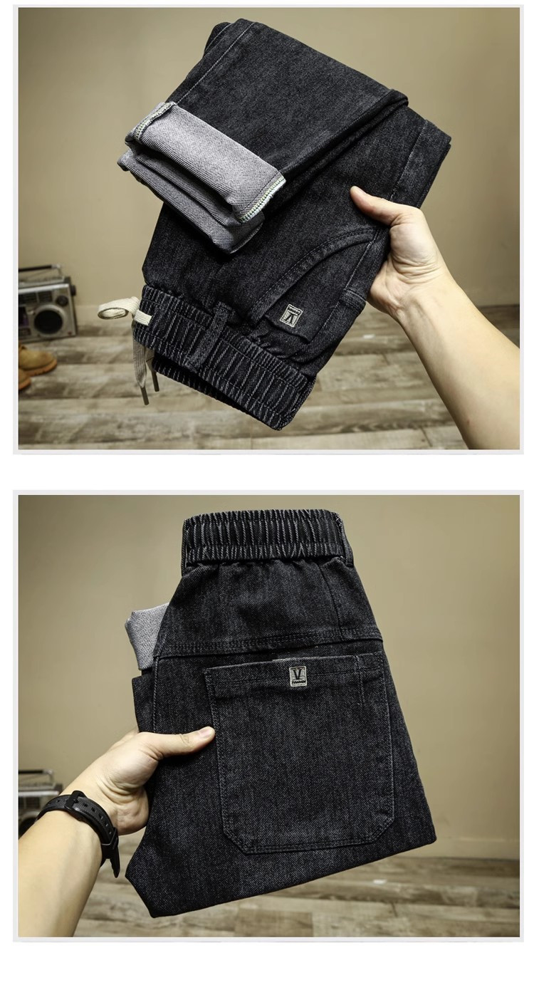Otoño e Invierno de gama alta suelta estiramiento skinny jeans hombres de moda marca elástico cinturón de hierro-libre casual todo partido harén Pantalones