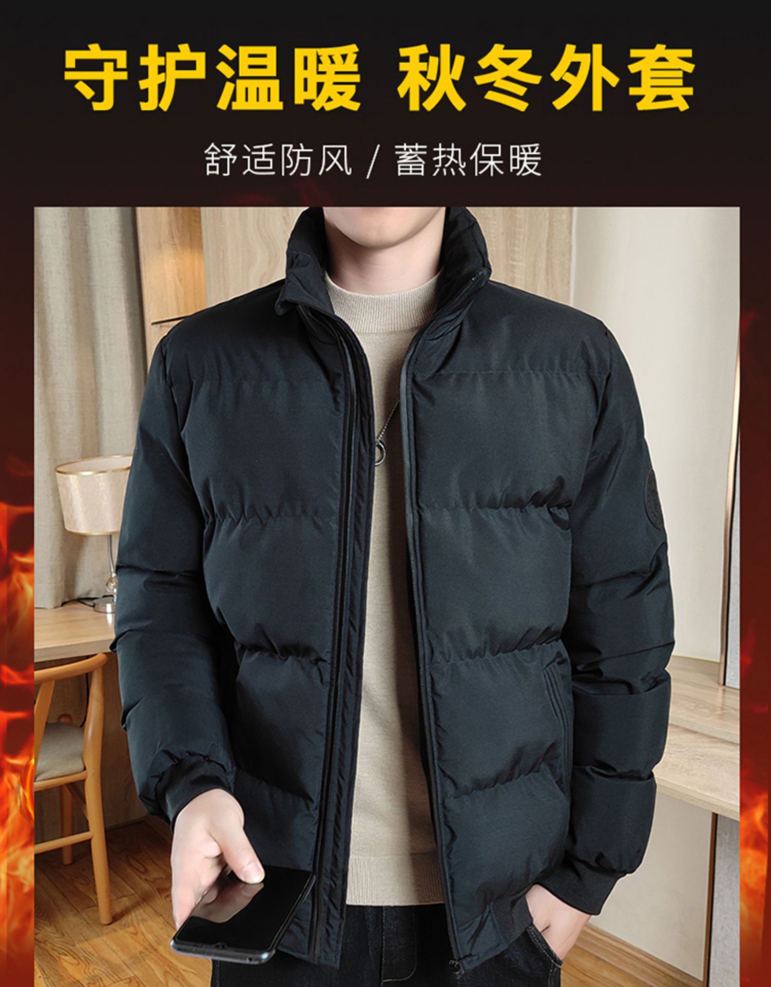 Marca de despacho de los hombres de la pluma de algodón acolchado abrigo Otoño e Invierno engrosado caliente casual soporte collar SLIM-fit a prueba de frío de algodón acolchado abrigo moda