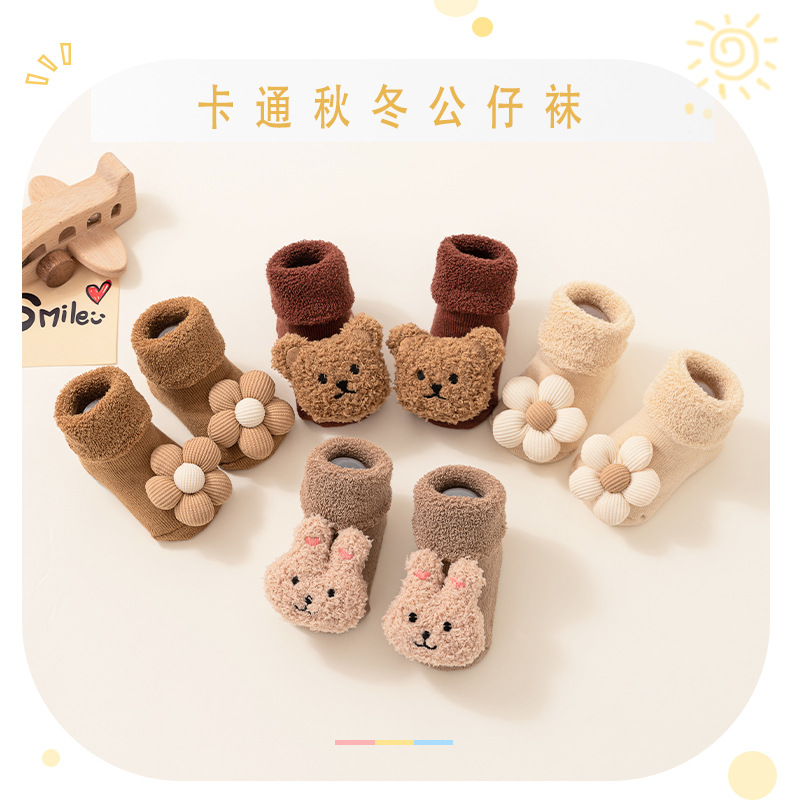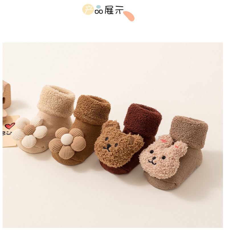 23 calcetines de bebé recién nacido bebé Terry Otoño e Invierno forrado de lana engrosada cálido antideslizante calcetines de piso para niños al por mayor